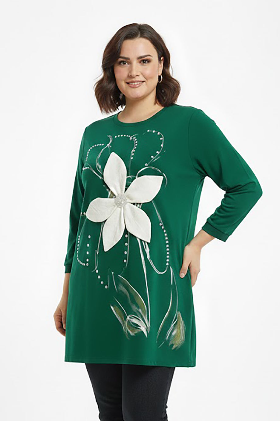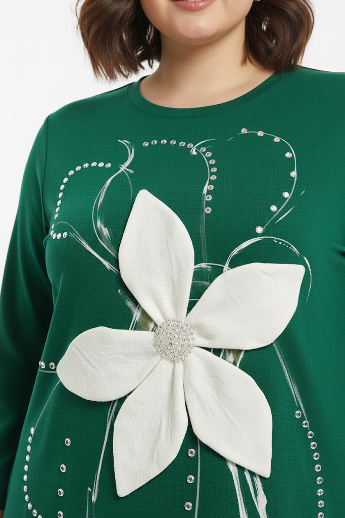 Petalia Büyük Beden Ön Çiçek Detay Bluz Yeşil