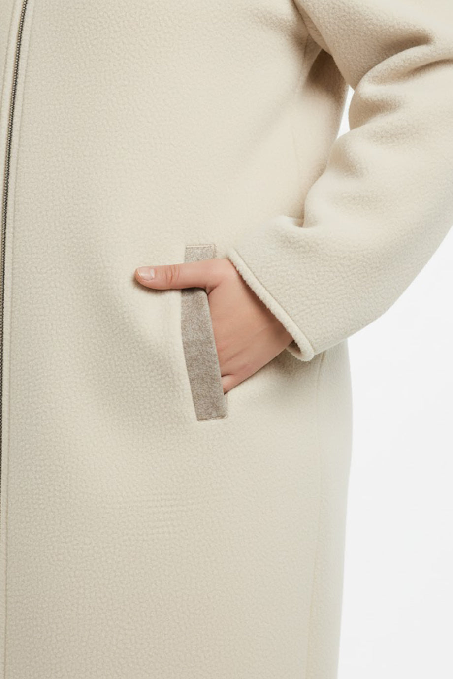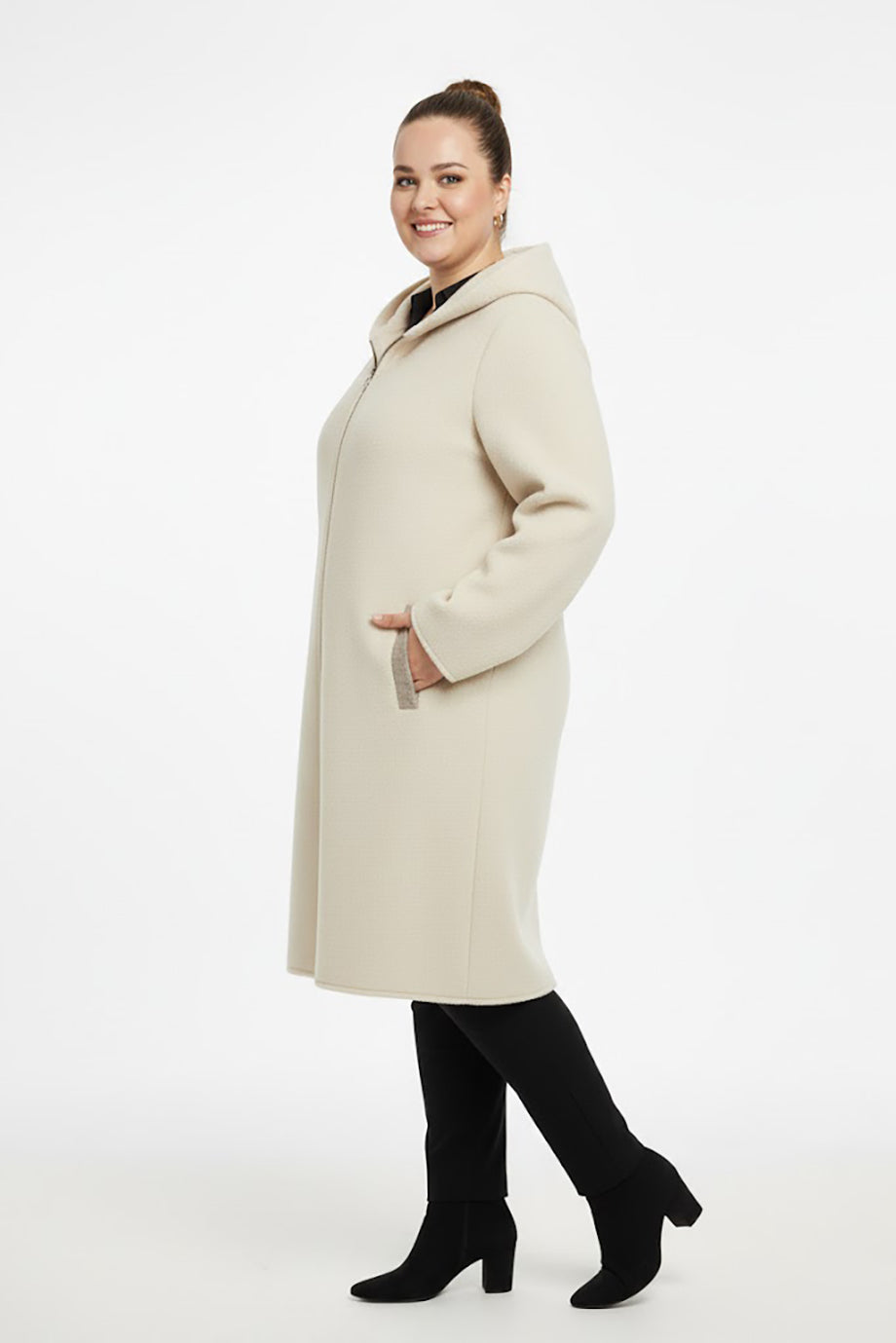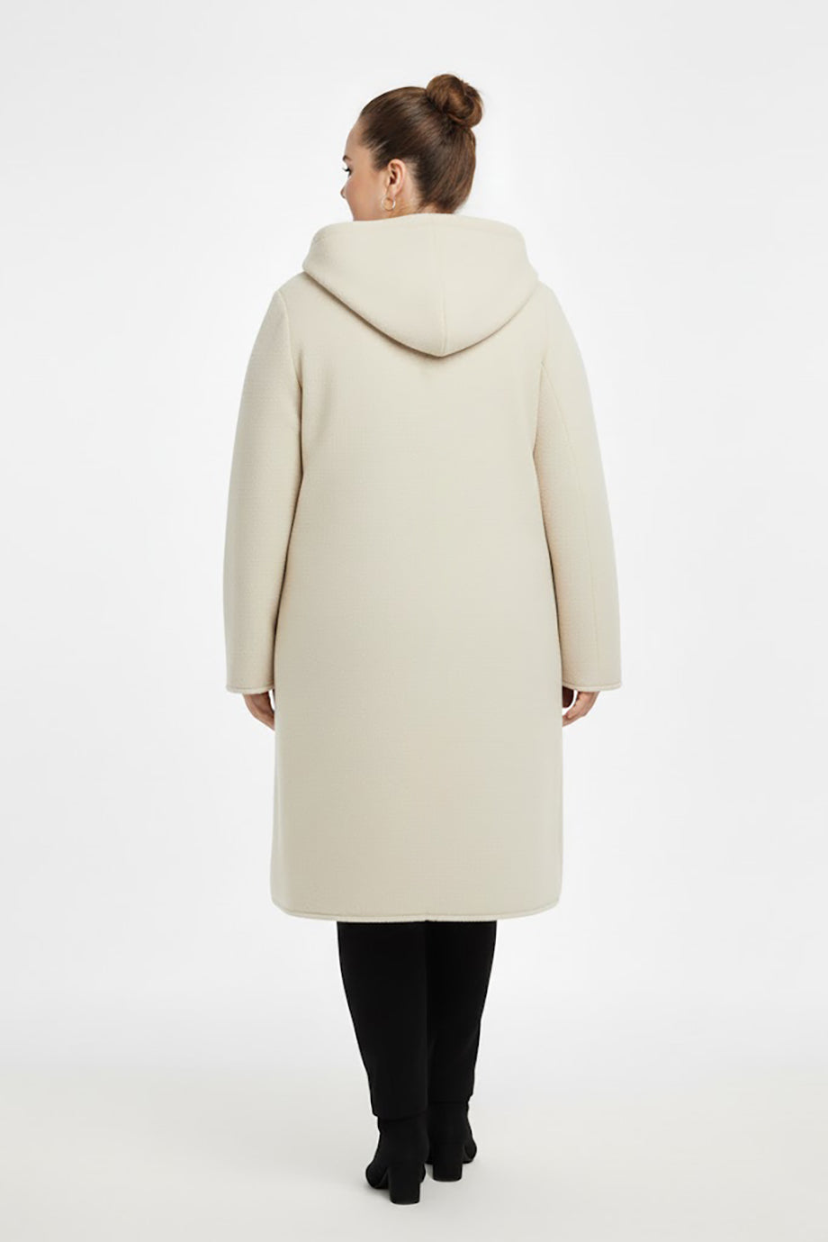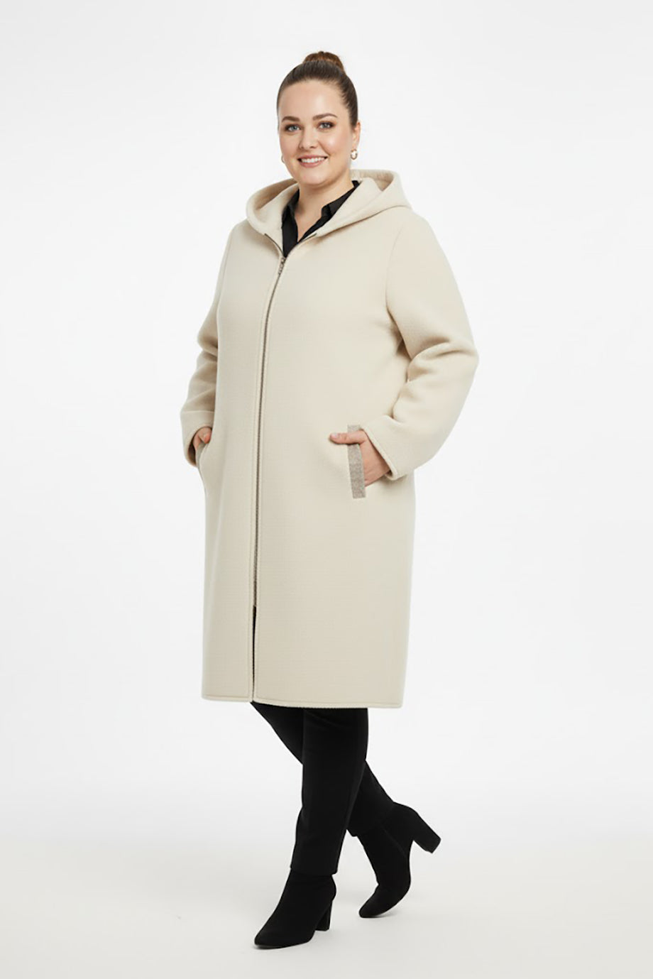 Büyük Beden Ön Fermuarlı Kapşonlu Kaşe Kaban Taş