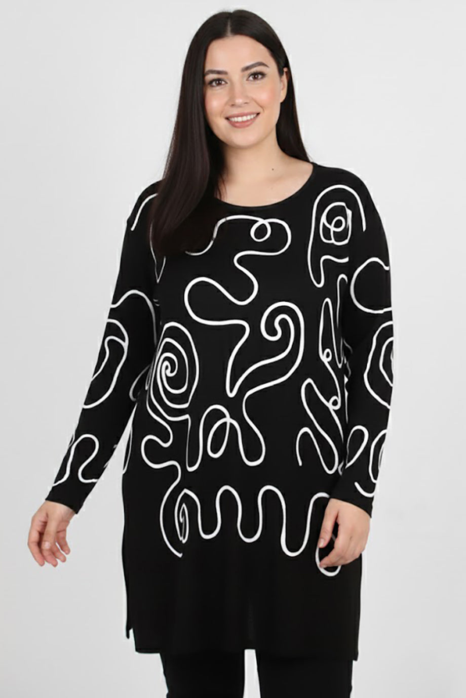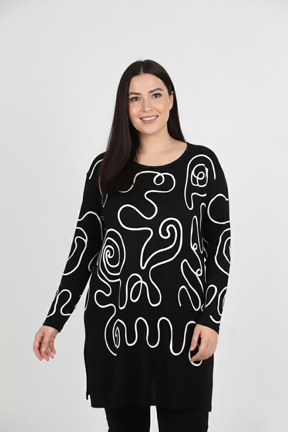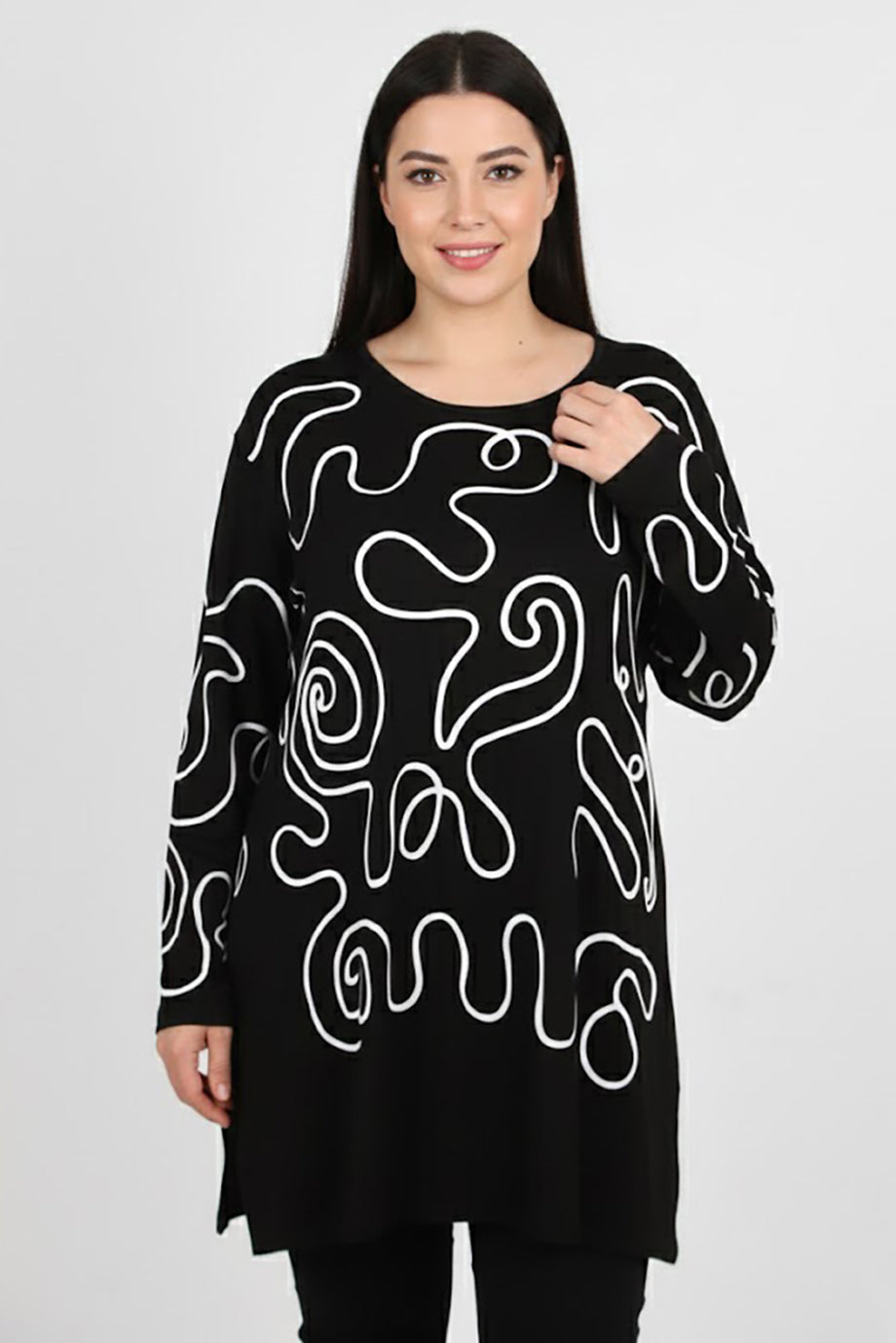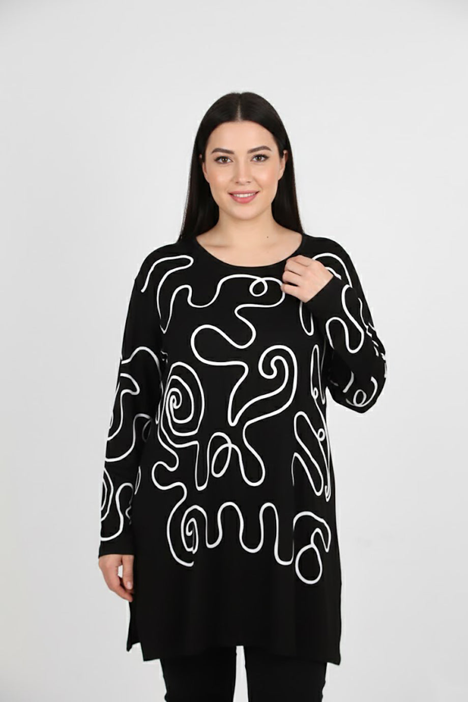 Detaila Büyük Beden Ön İşlemeli Bluz Siyah