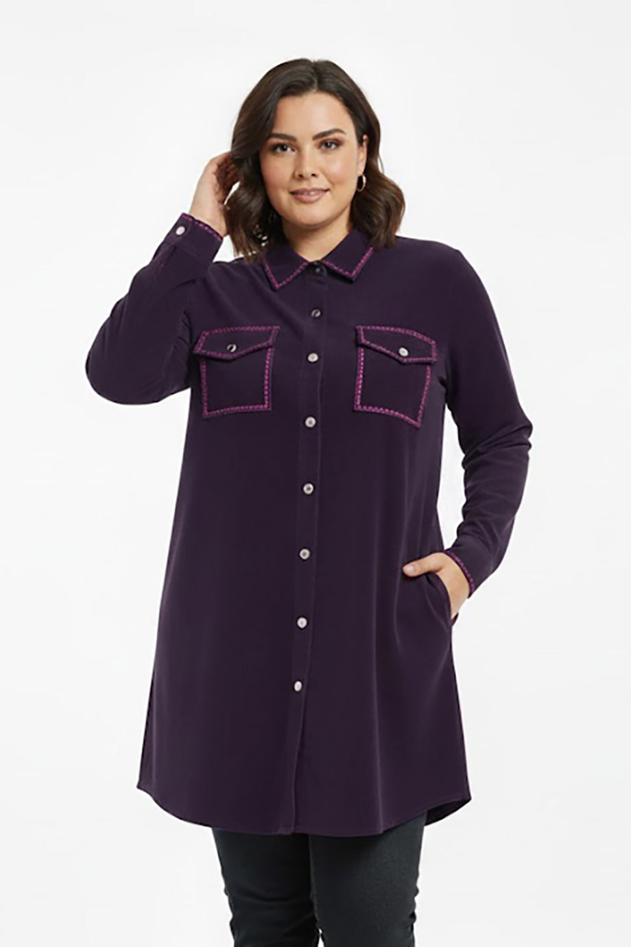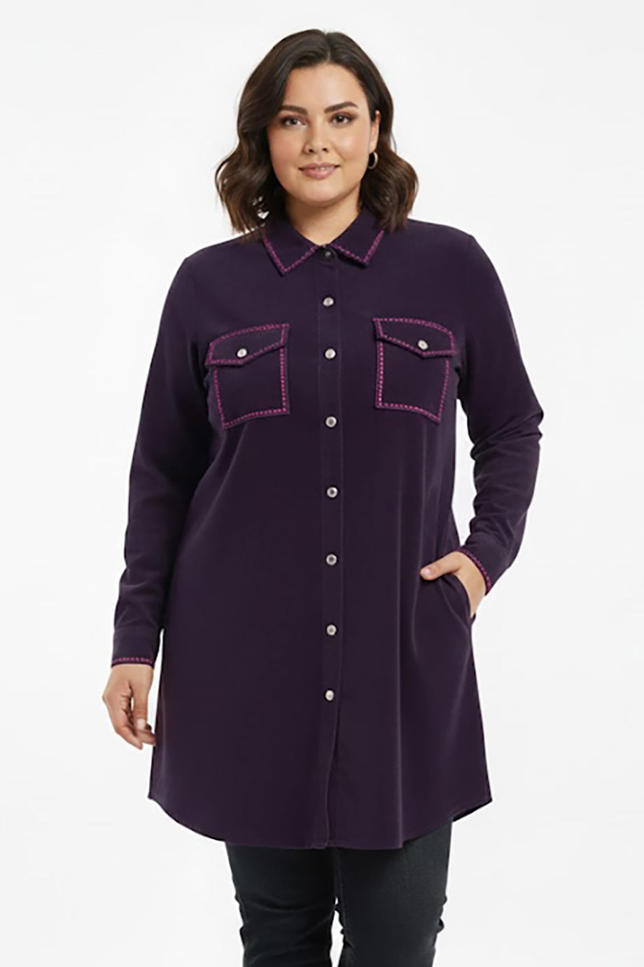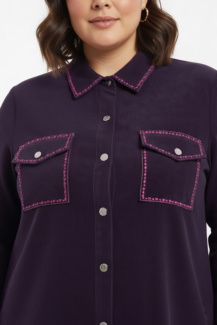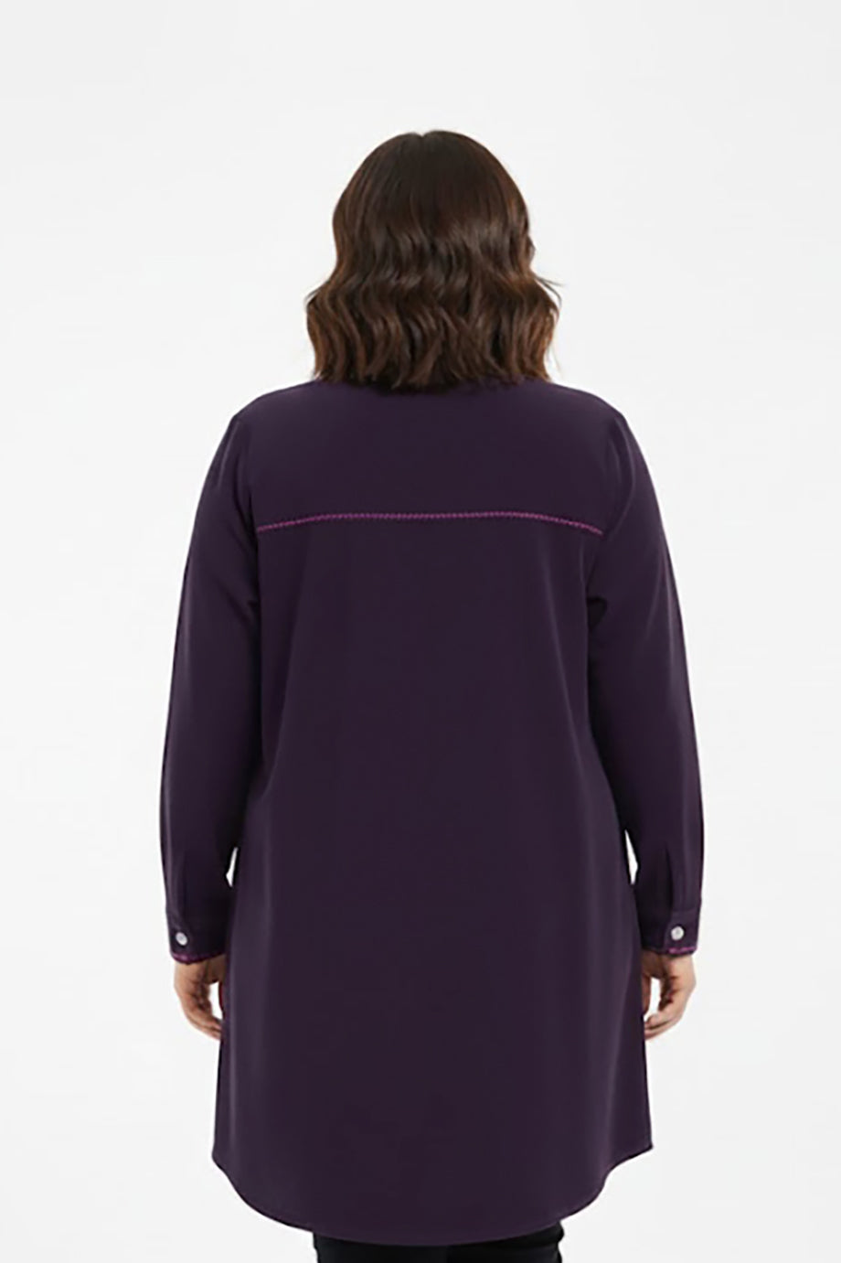 Veloura Büyük Beden Önü Düğmeli Süet Tunik Mor