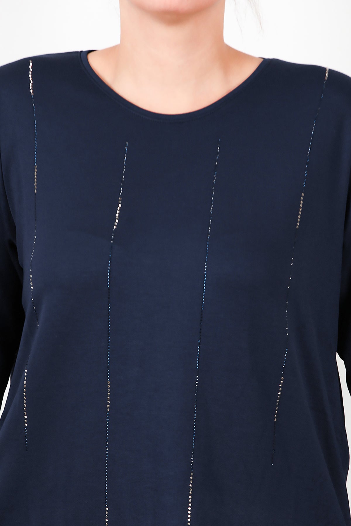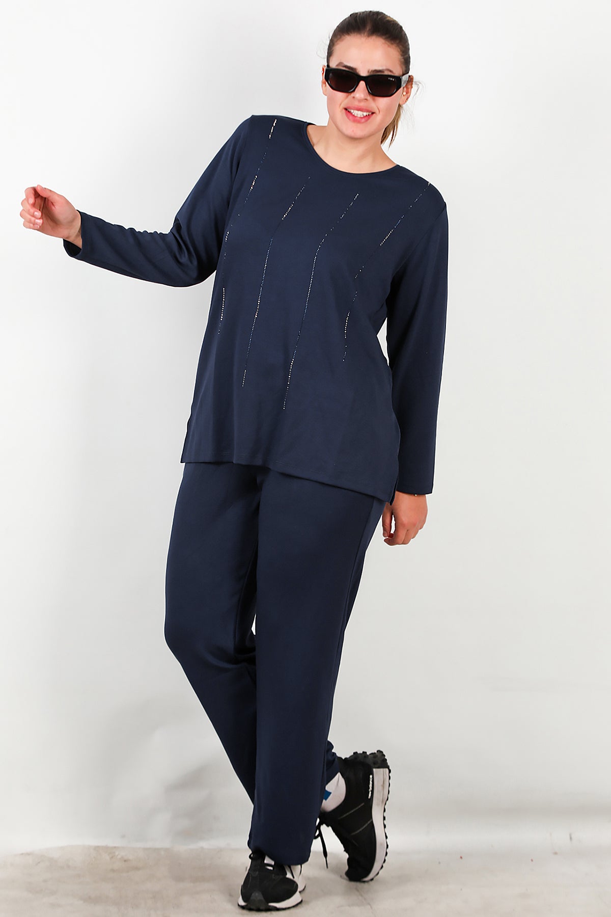 Büyük Beden Önü Taş İşlemeli Takım Lacivert