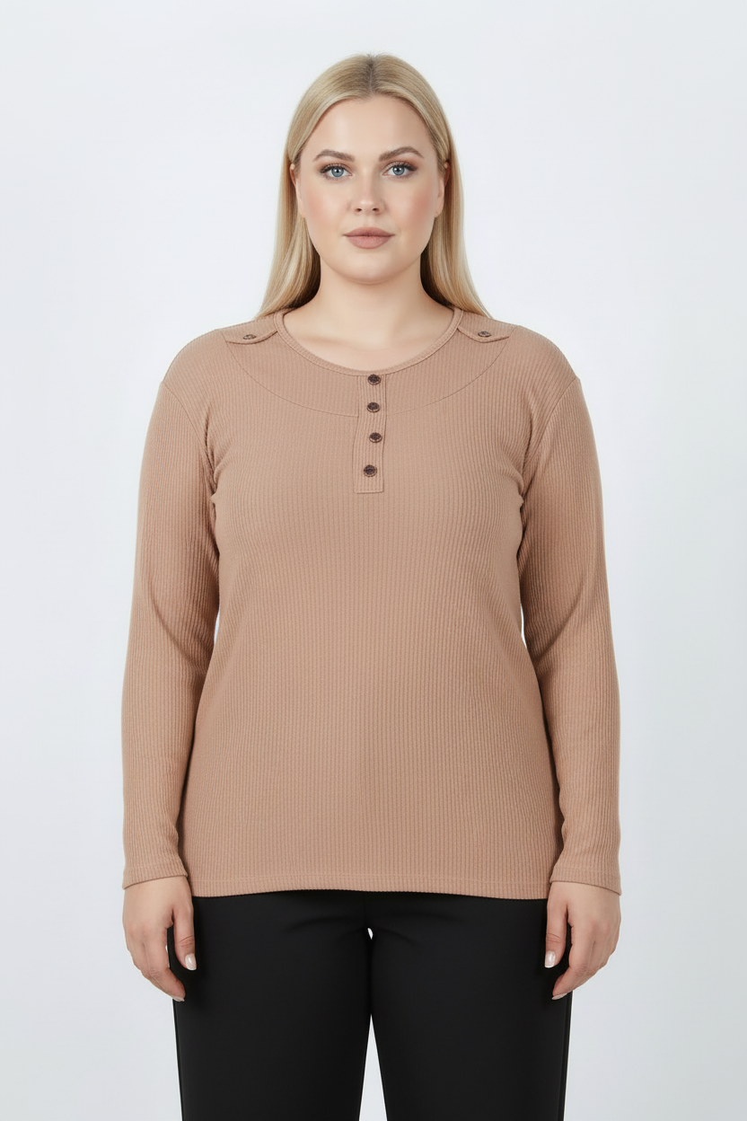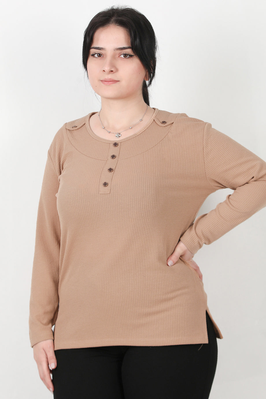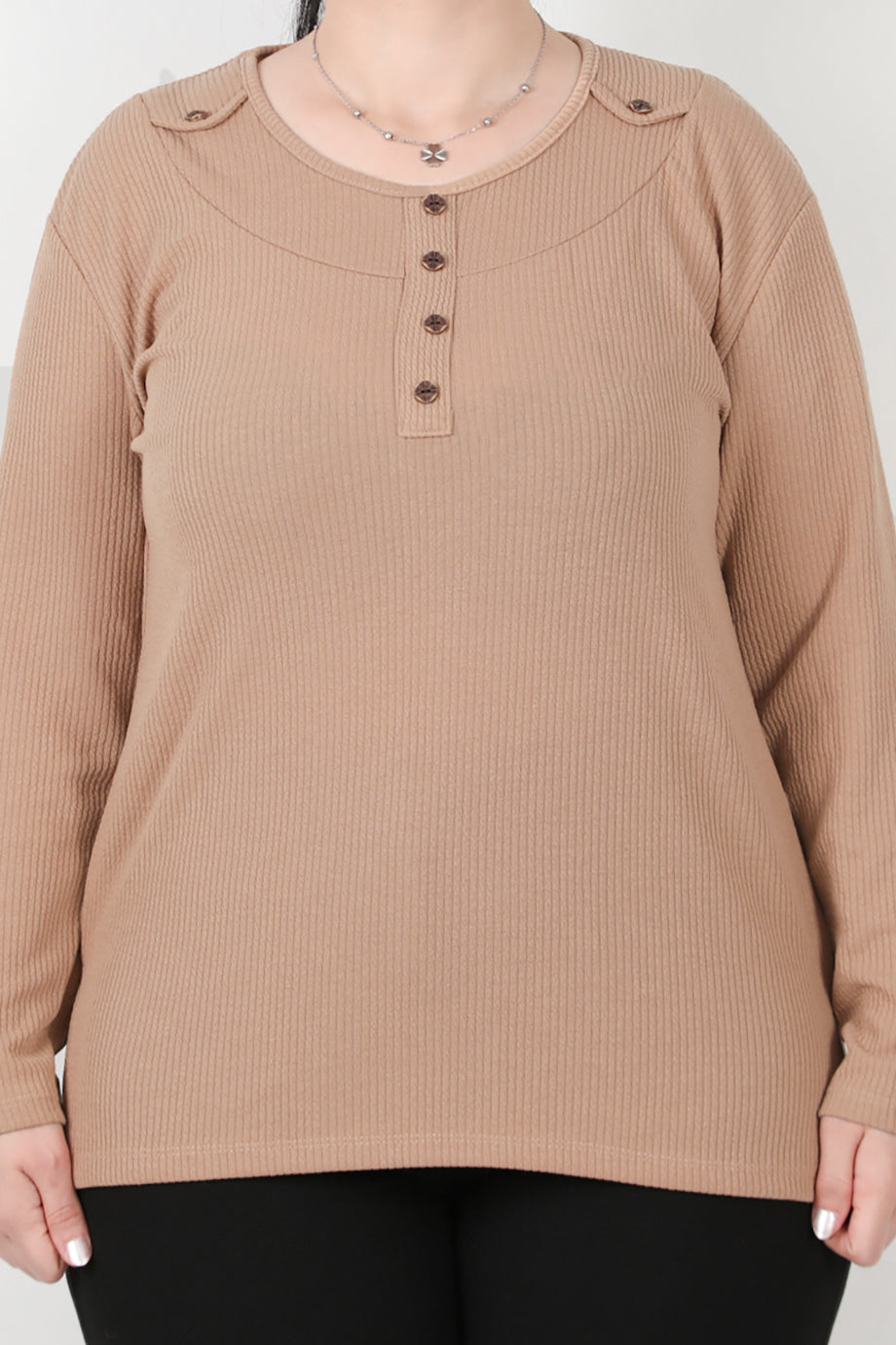 Refina Büyük Beden Önü Ve Yaka Düğmeli Bluz Bej