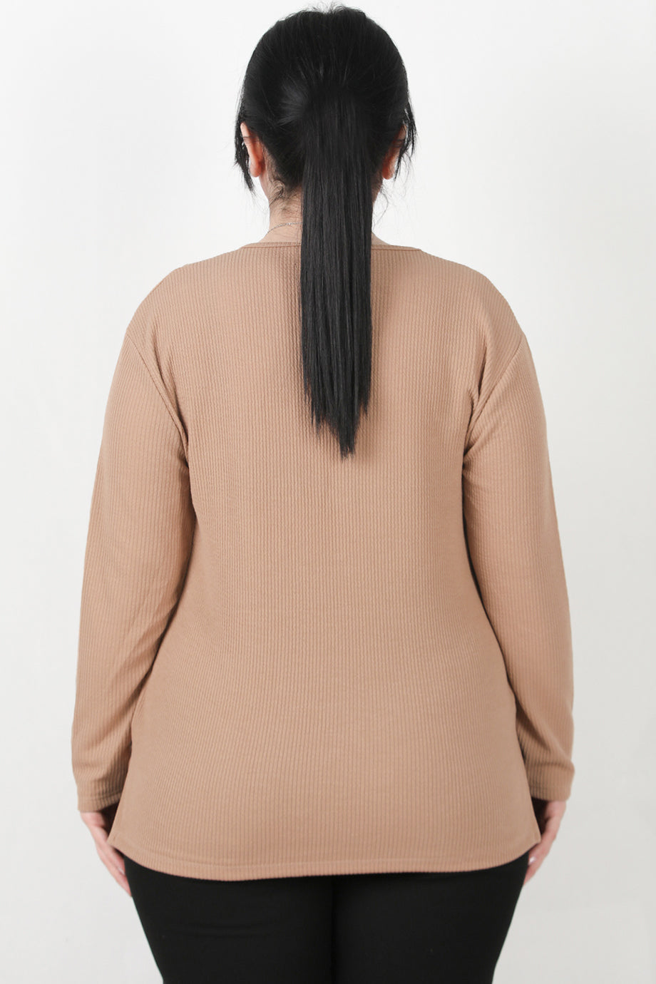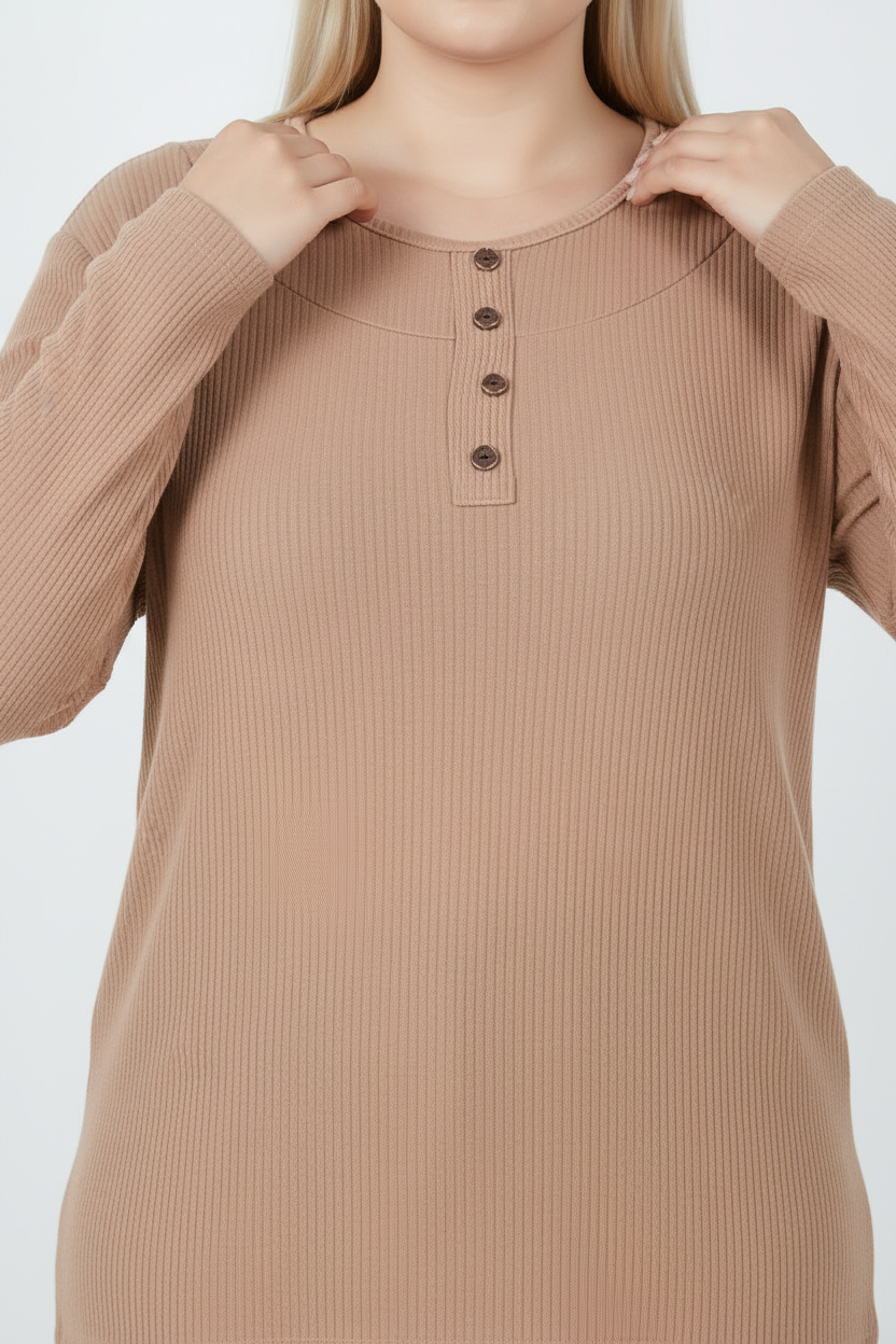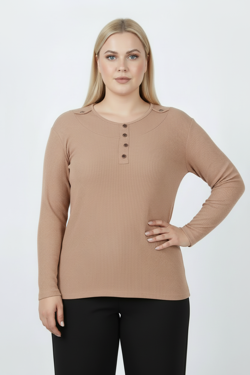 Refina Büyük Beden Önü Ve Yaka Düğmeli Bluz Bej