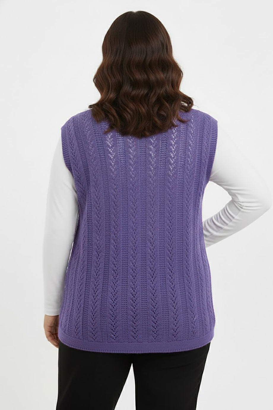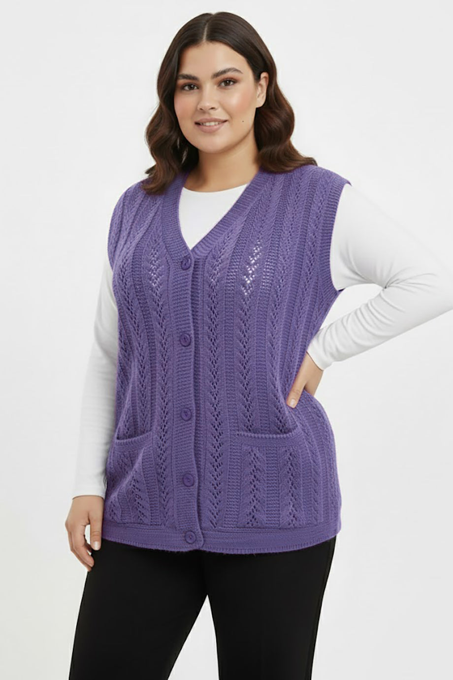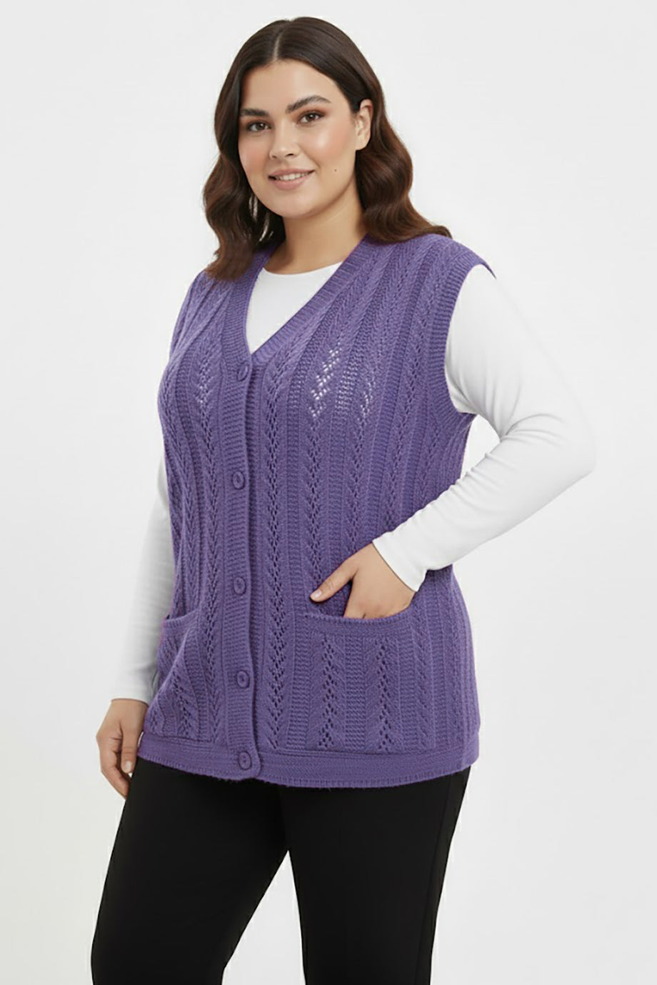 Knitera Büyük Beden Örgü Yelek Lila