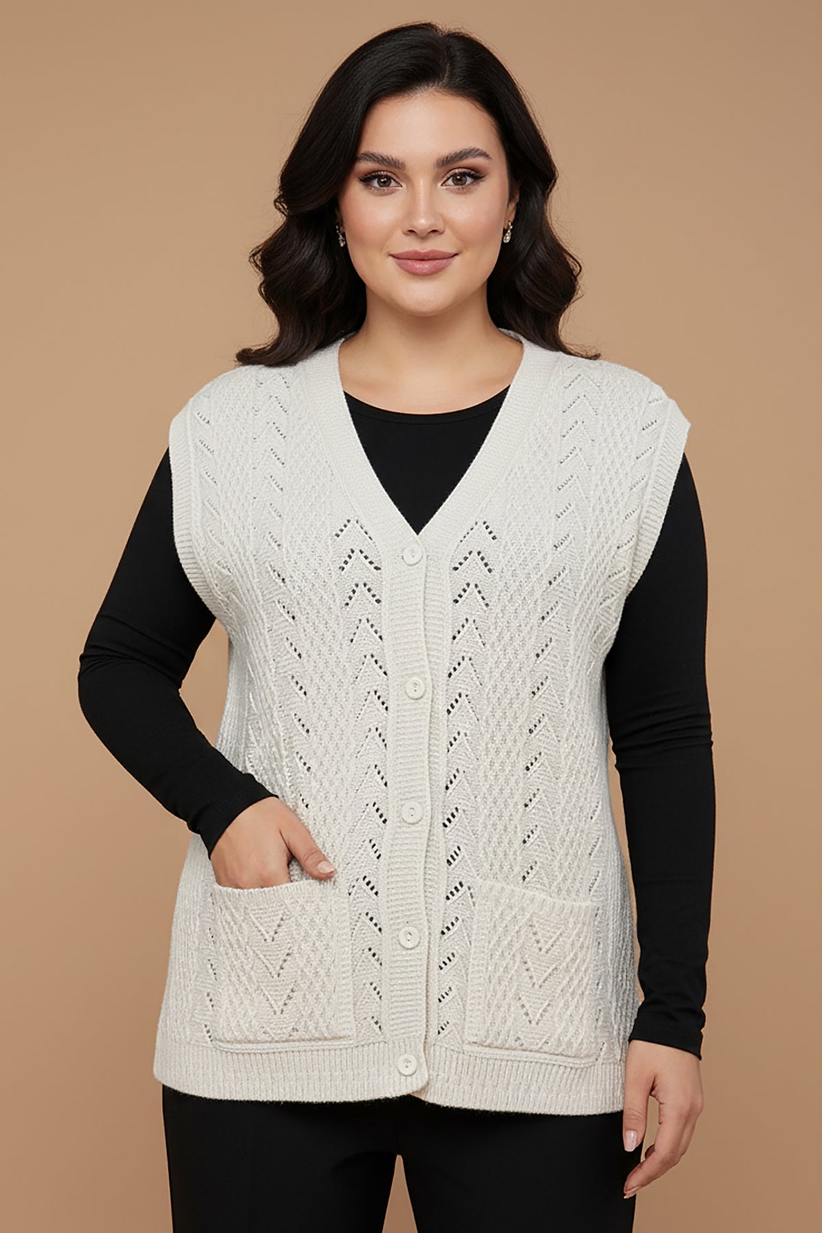 Büyük Beden Örgü Yelek Taş