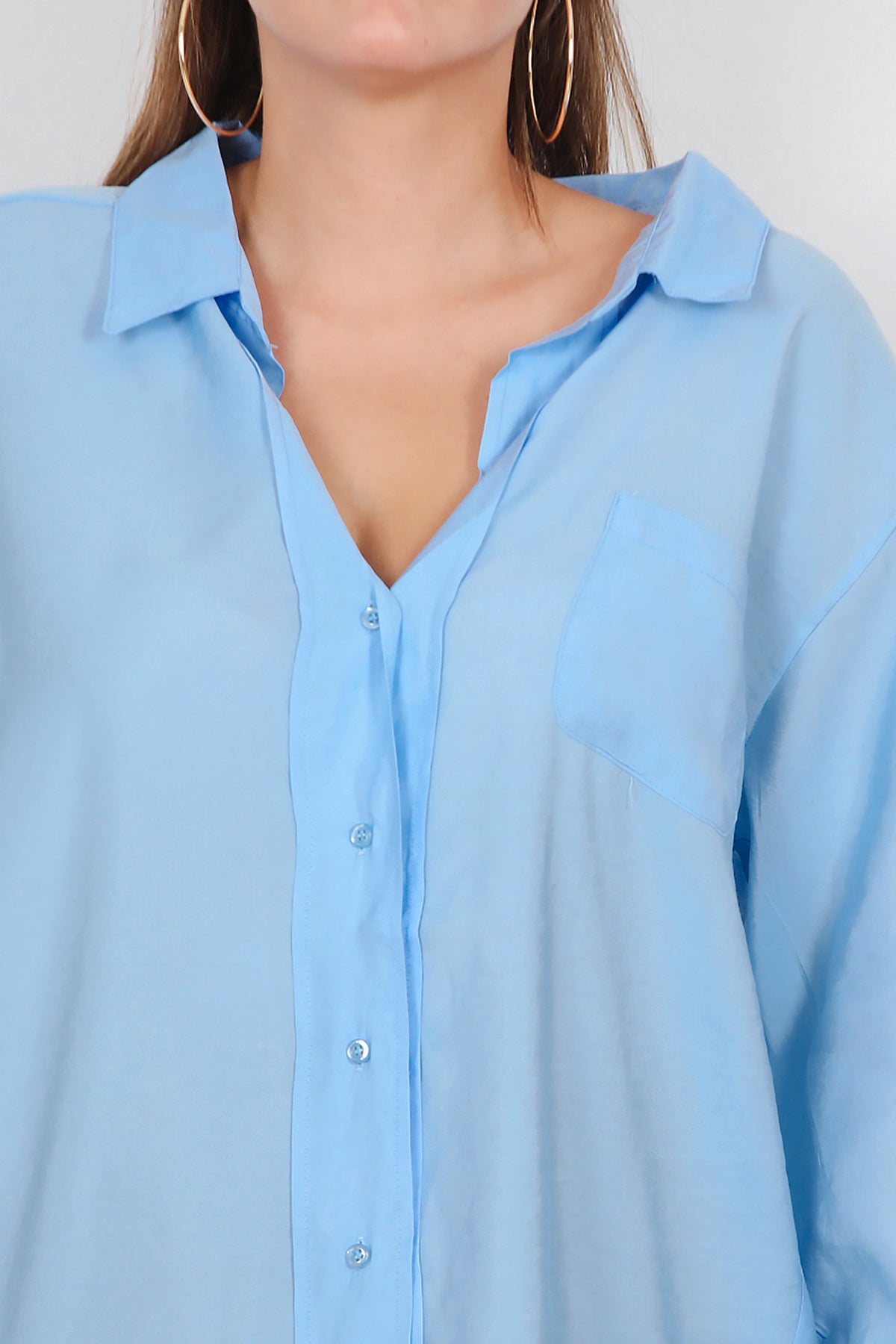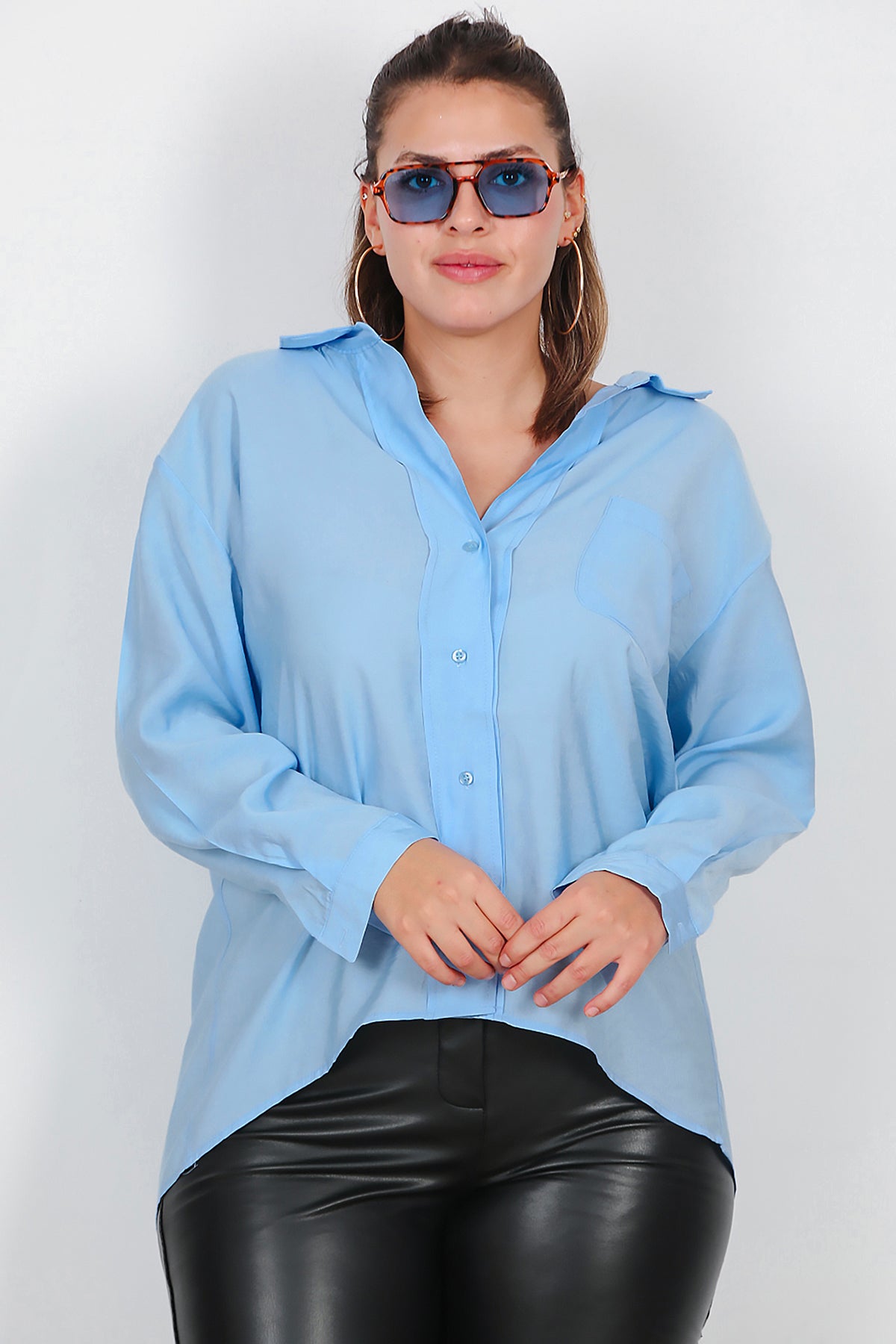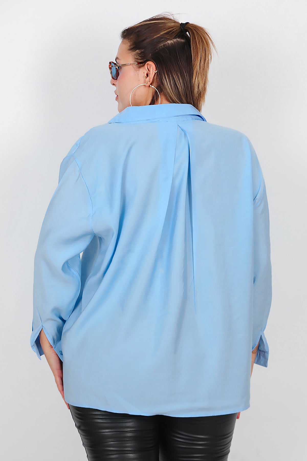 Büyük Beden Oversize Gömlek Buz Mavisi