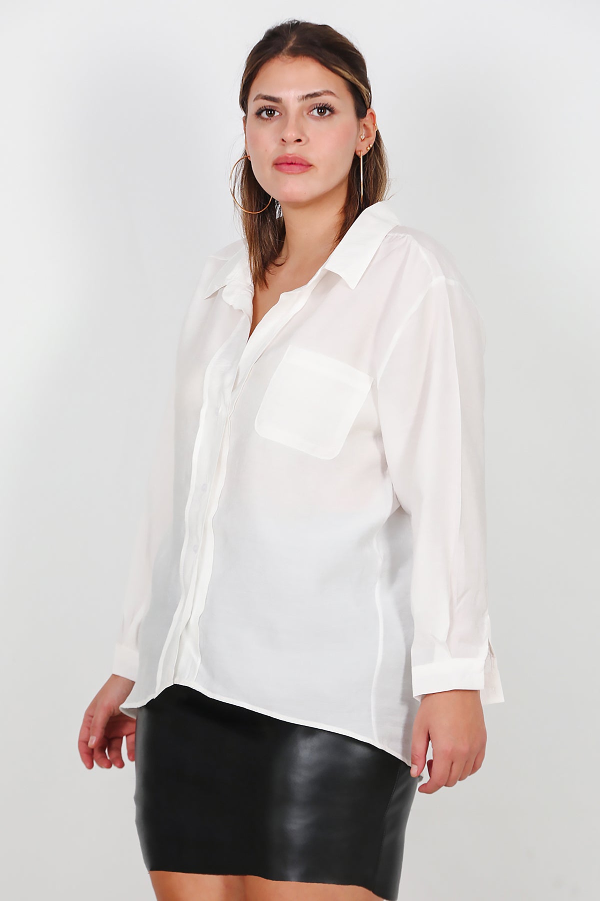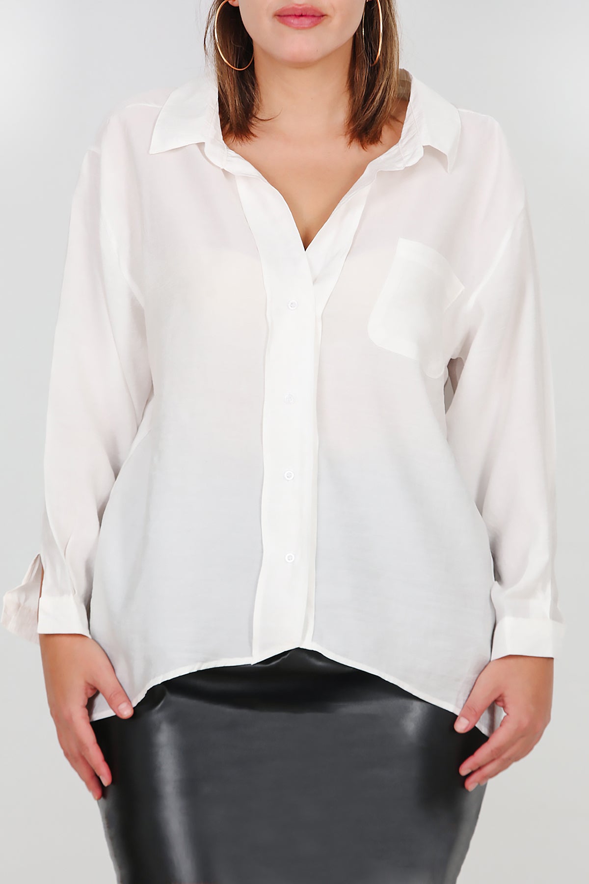 Büyük Beden Oversize Gömlek Ekru