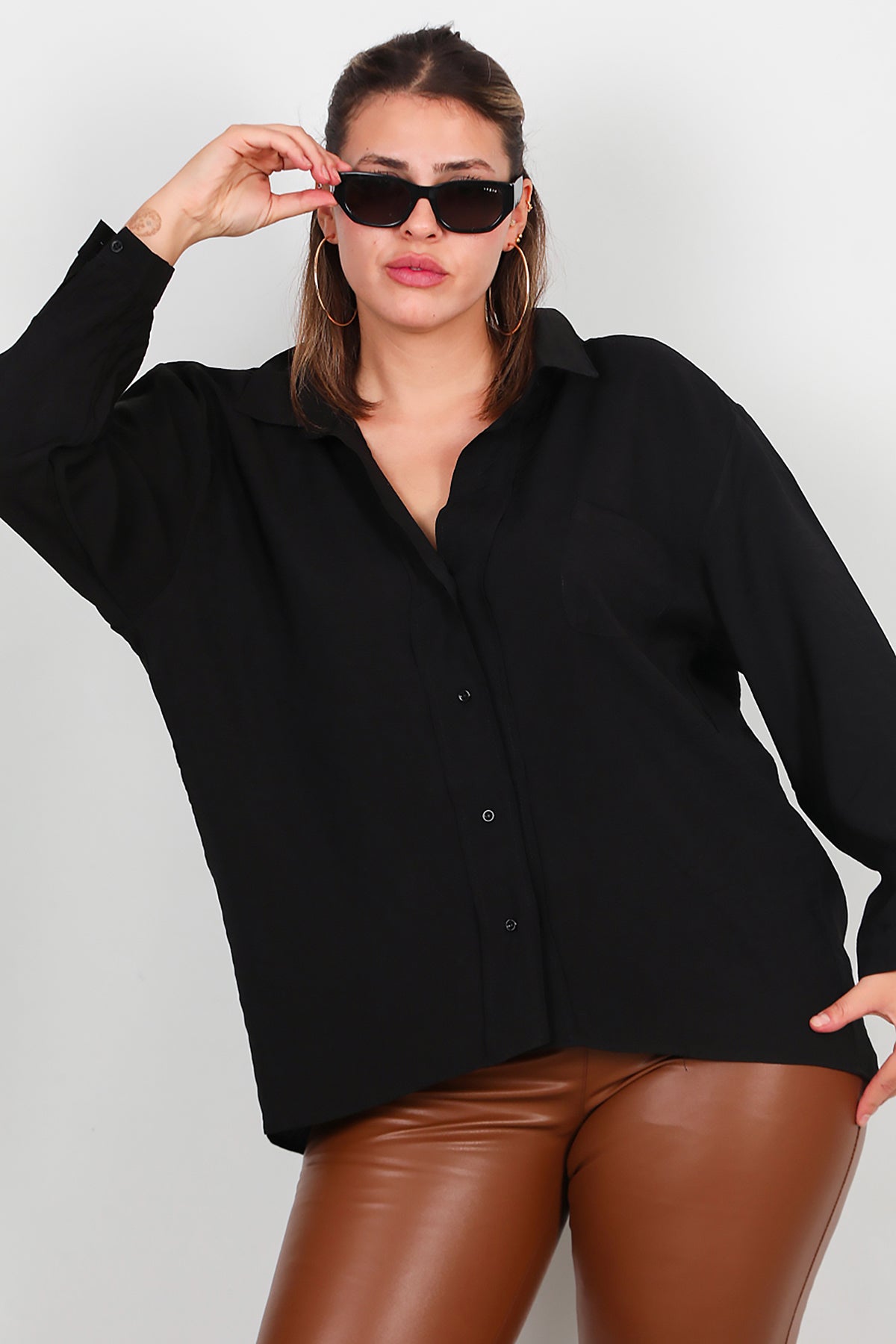 Büyük Beden Oversize Gömlek Siyah