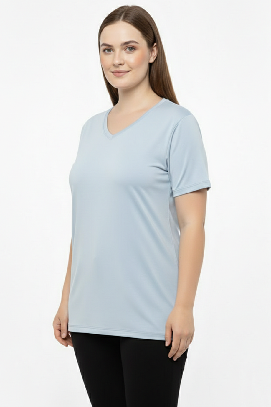 Comftee Büyük Beden Oversize V Yaka Tshırt Mavi