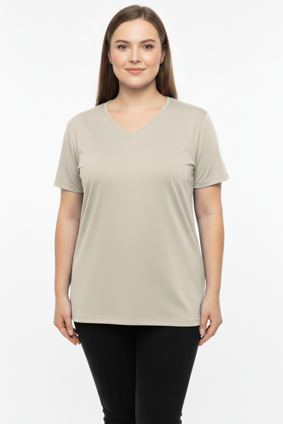 Comftee Büyük Beden Oversize V Yaka Tshırt Vizon