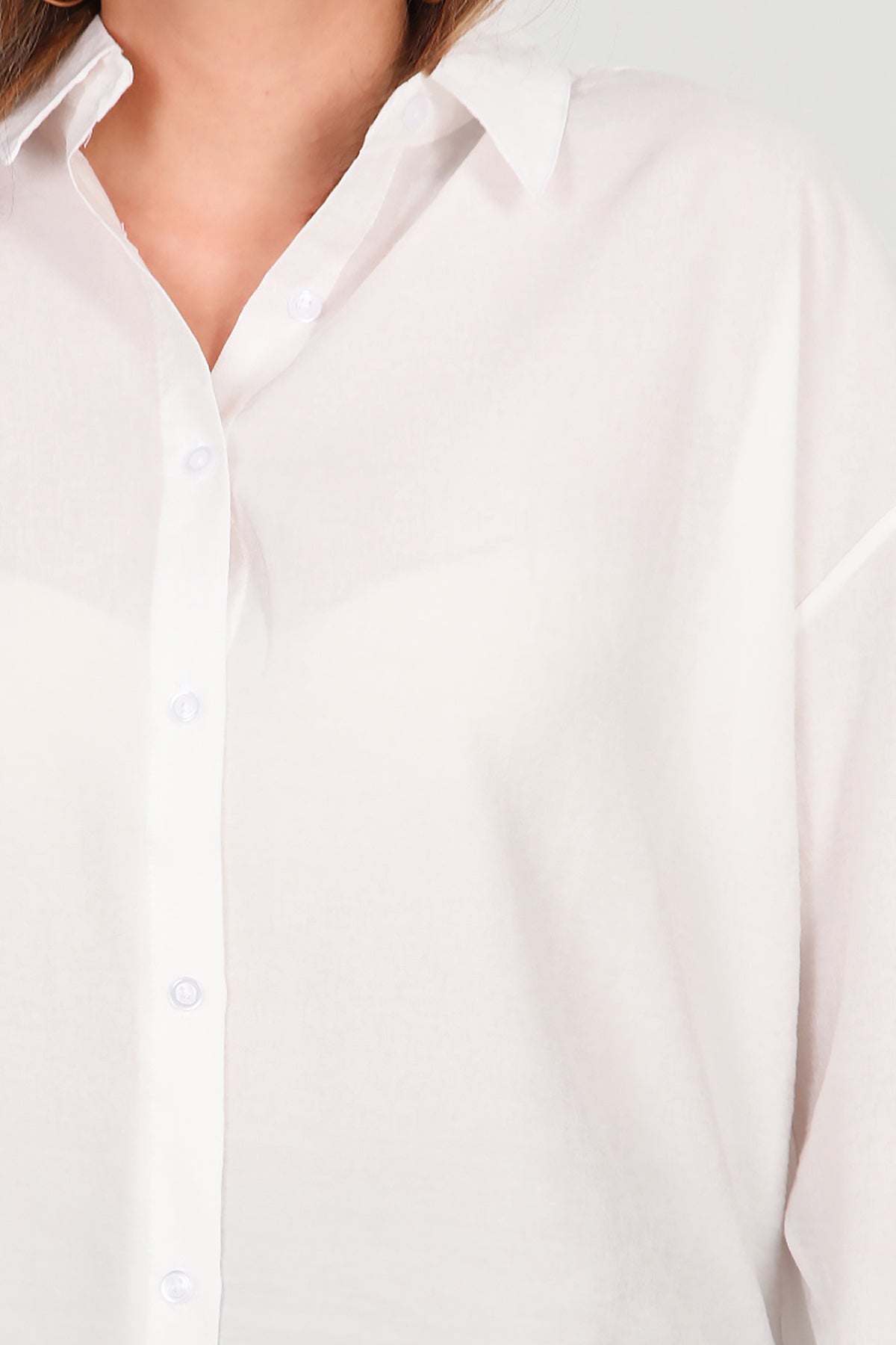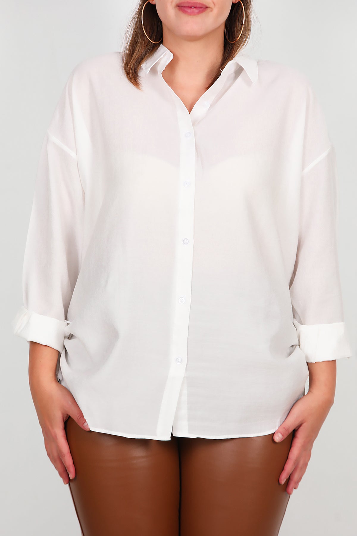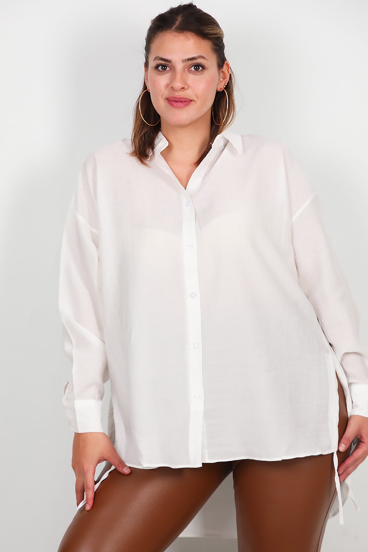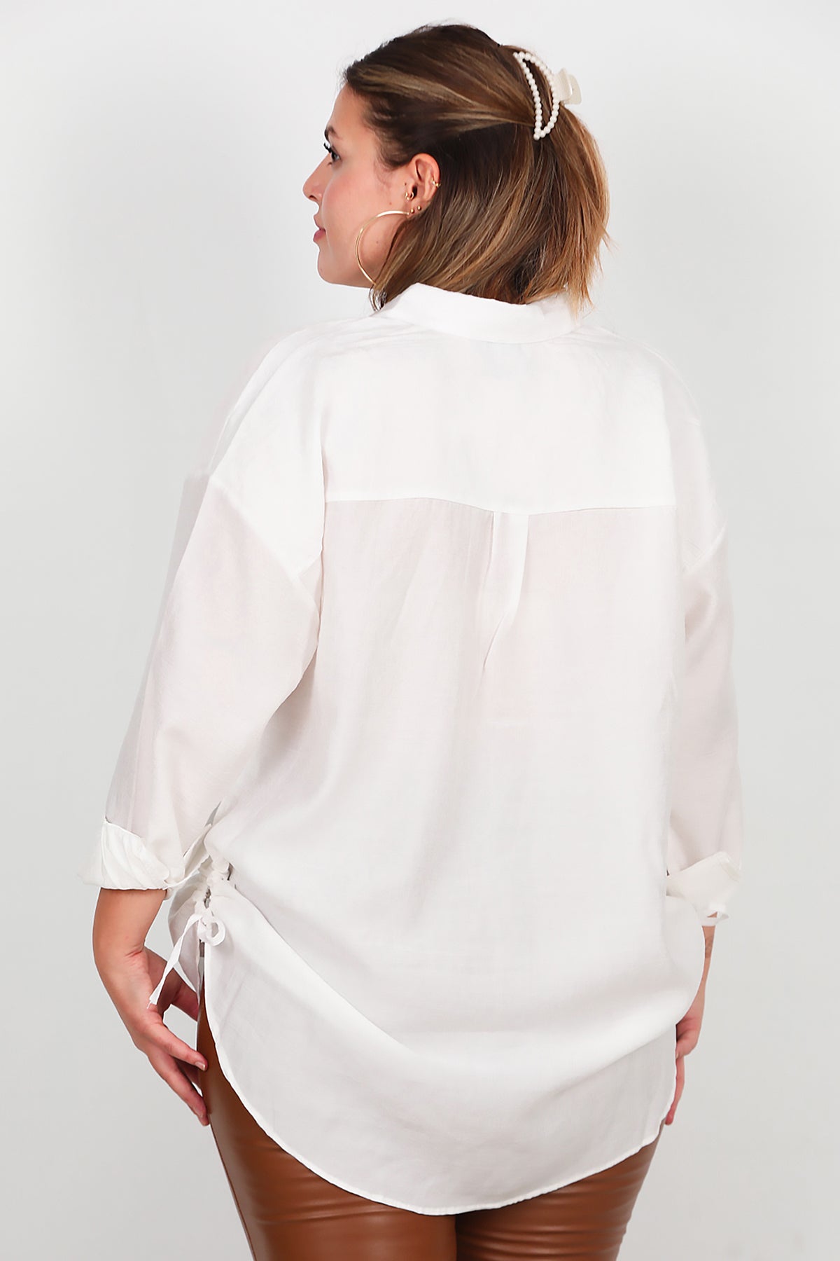 Büyük Beden Oversize Yan Bağcıklı Gömlek Ekru