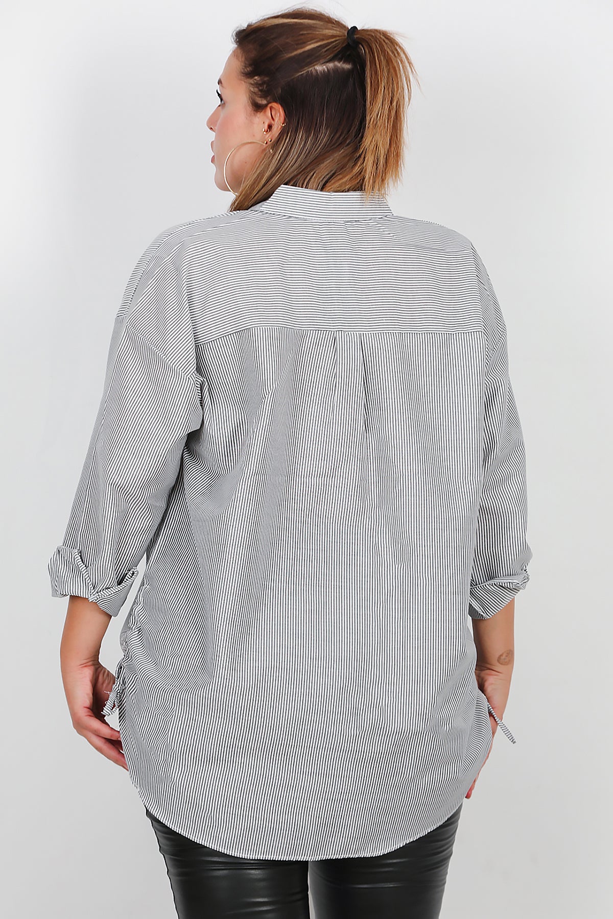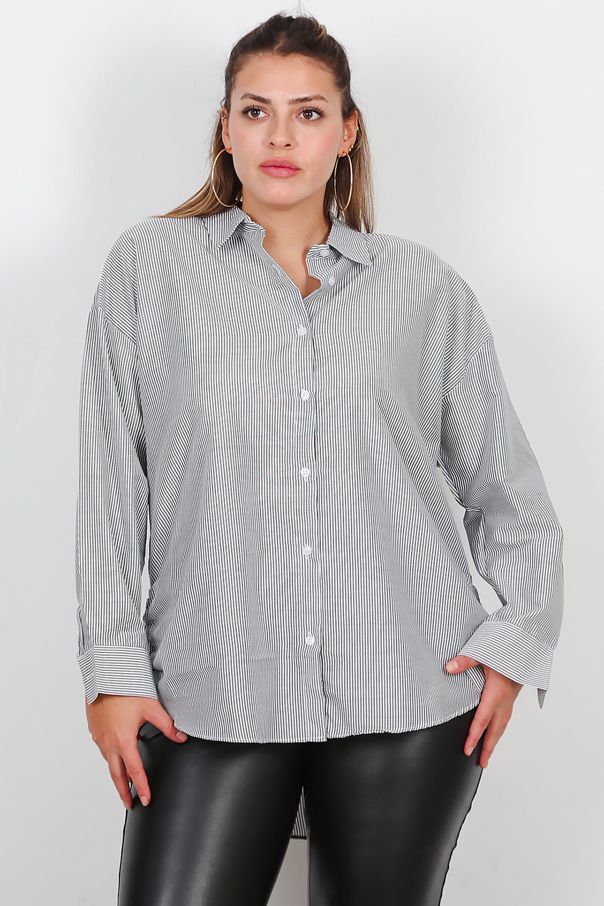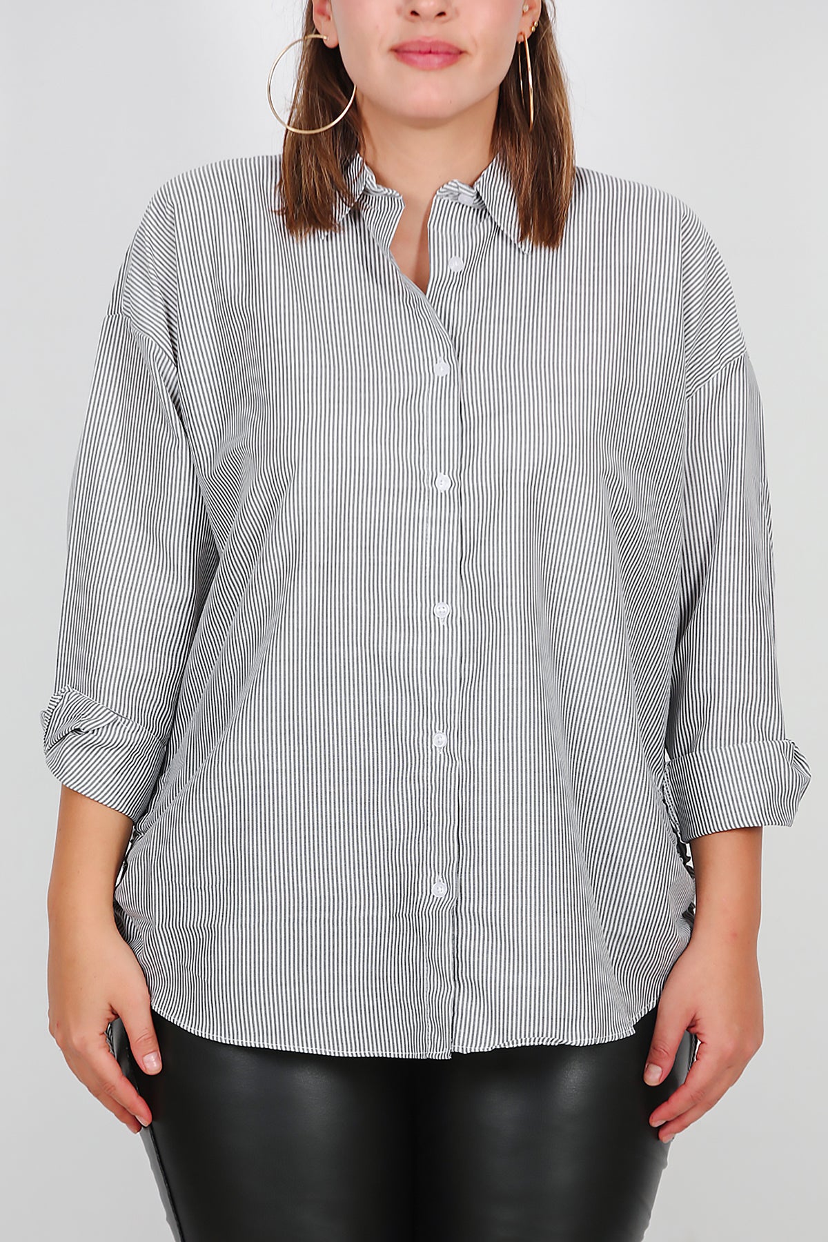 Büyük Beden Oversize Yan Bağcıklı Gömlek Gri