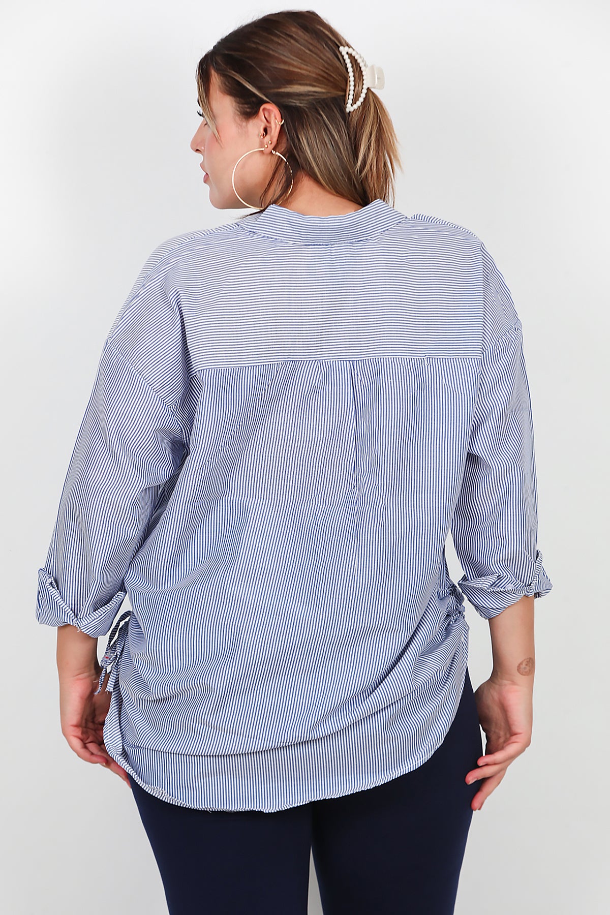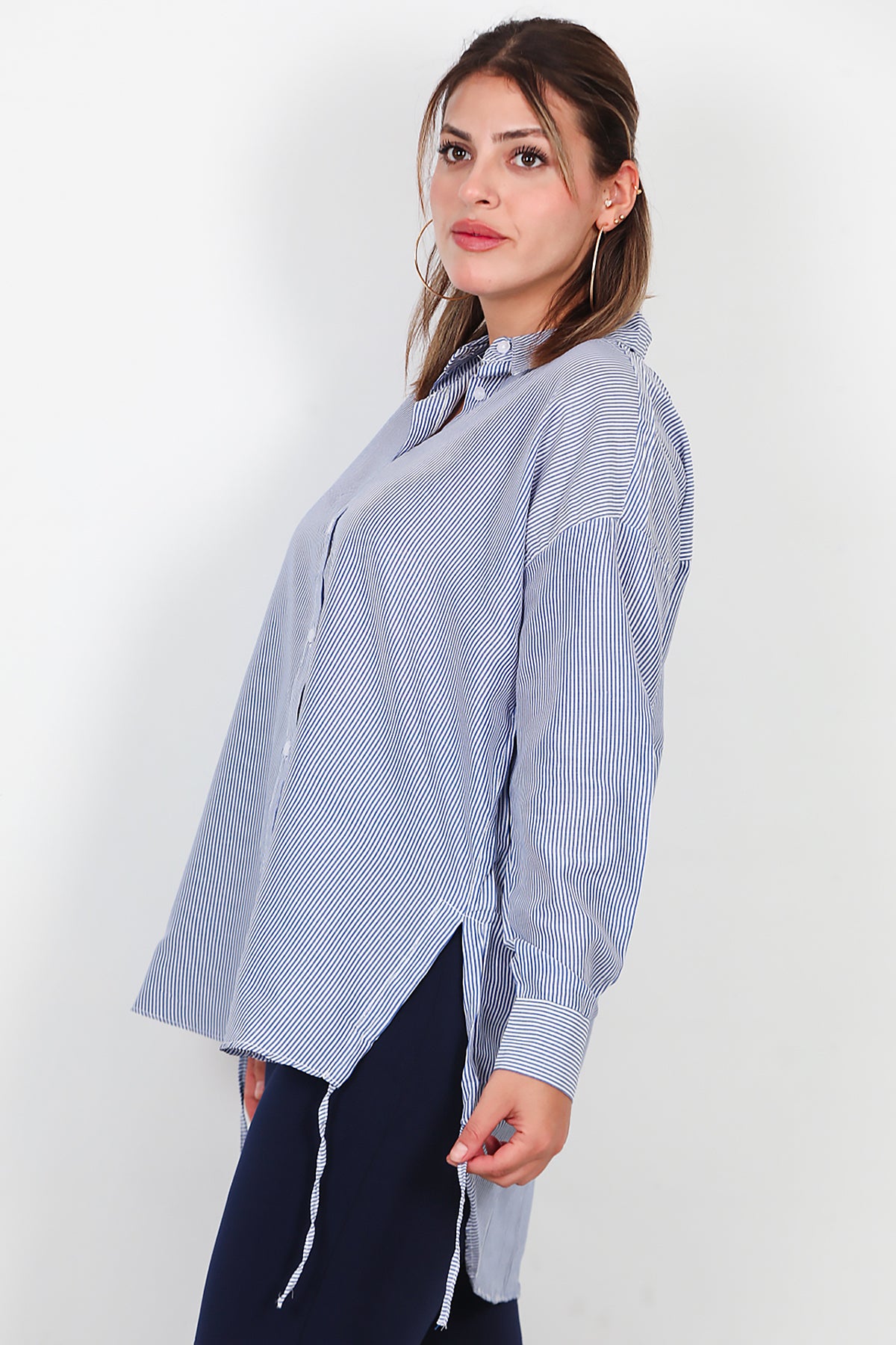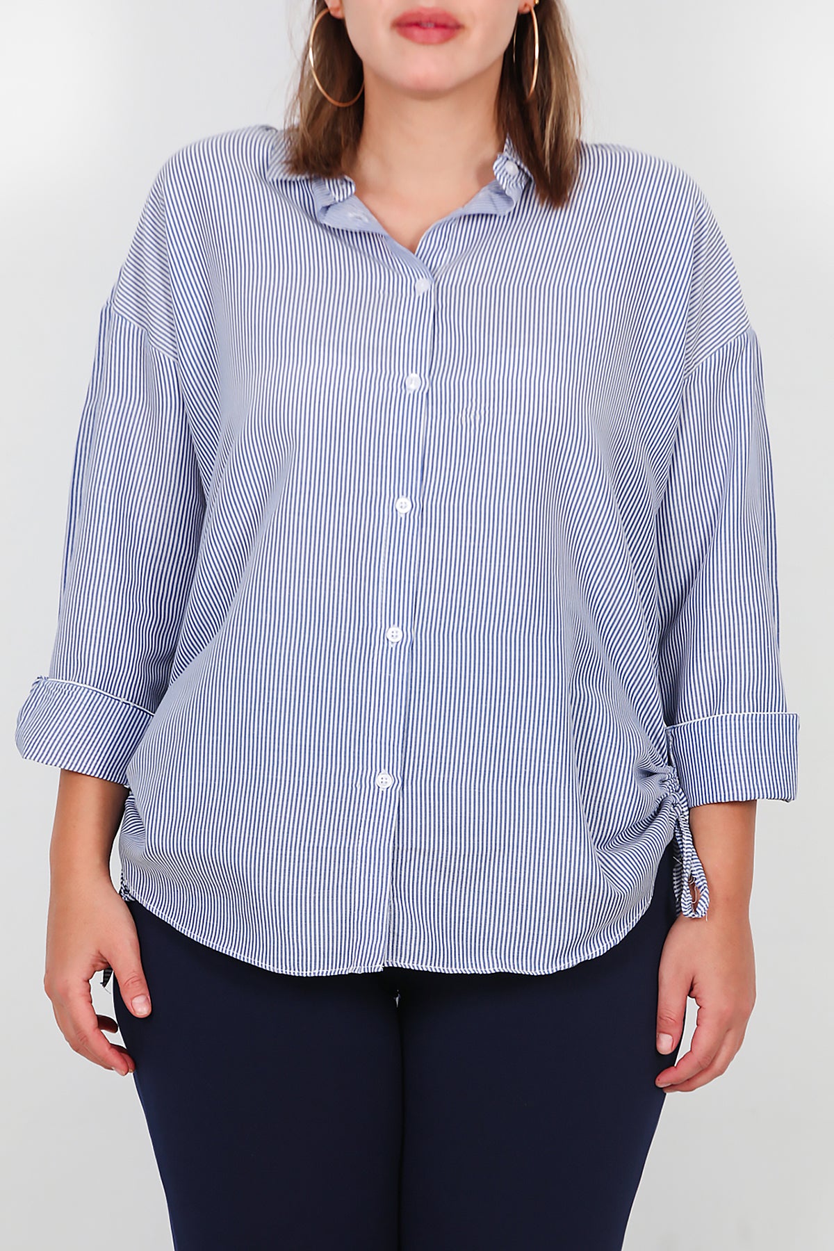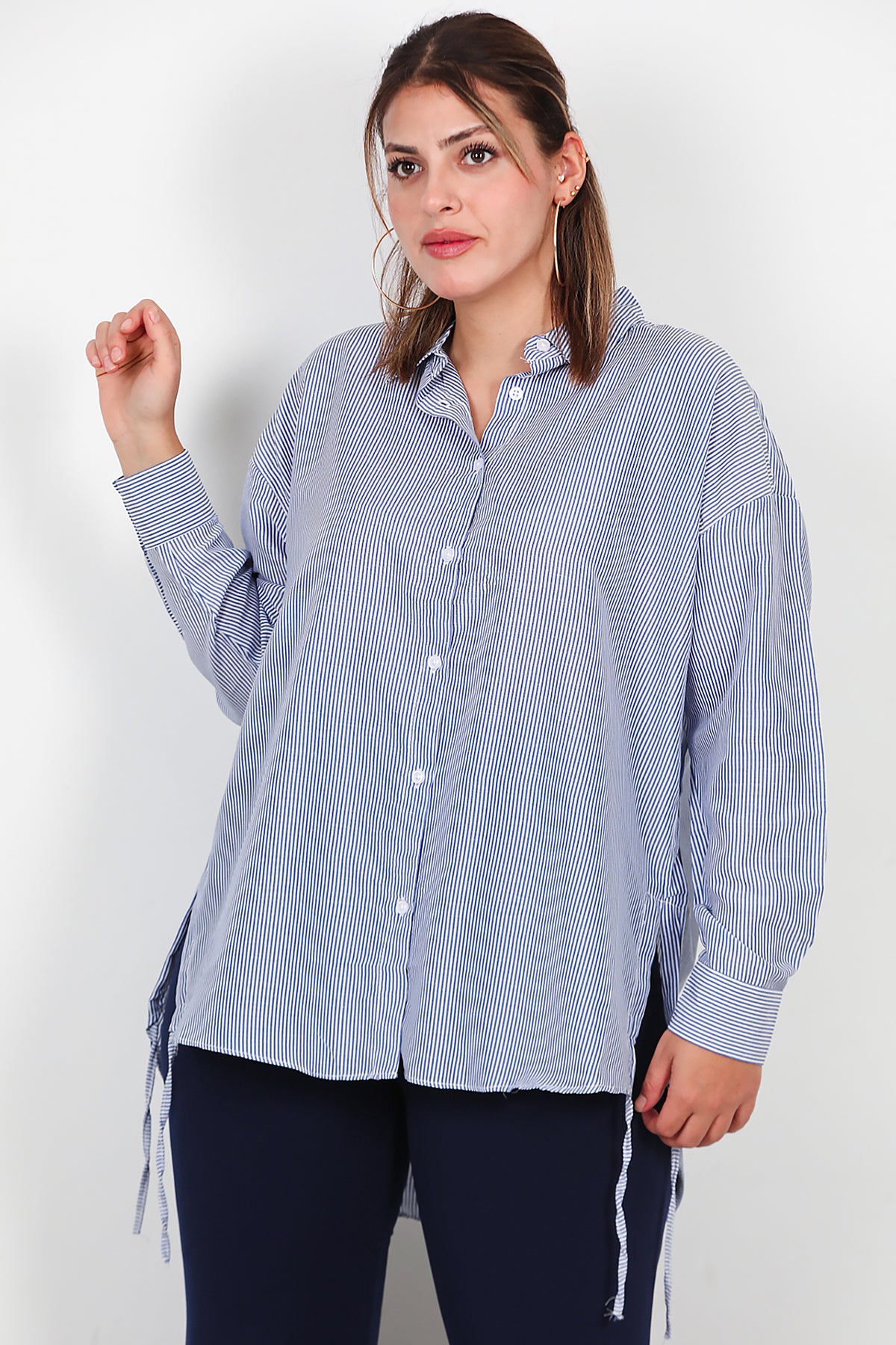 Büyük Beden Oversize Yan Bağcıklı Gömlek Mavi