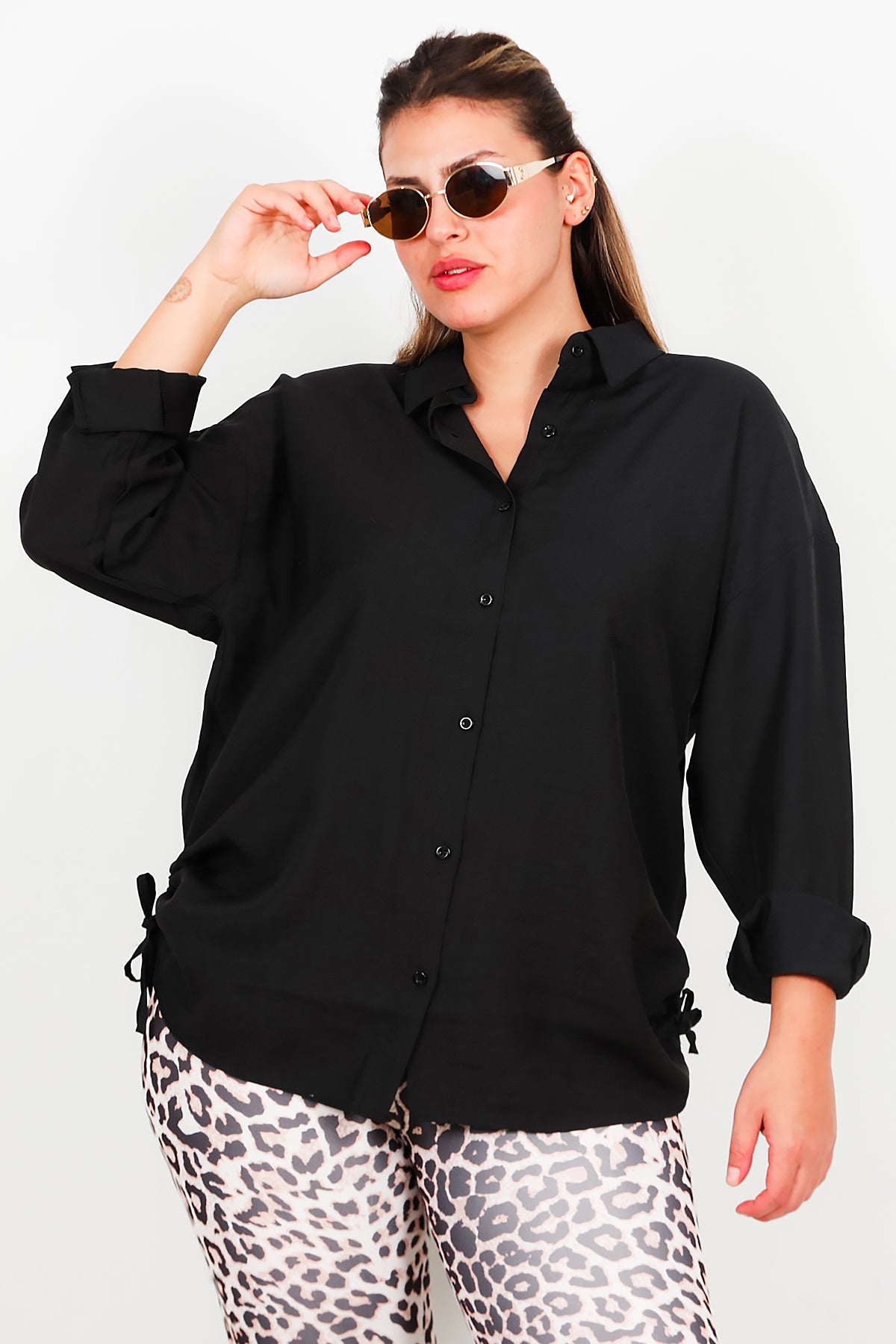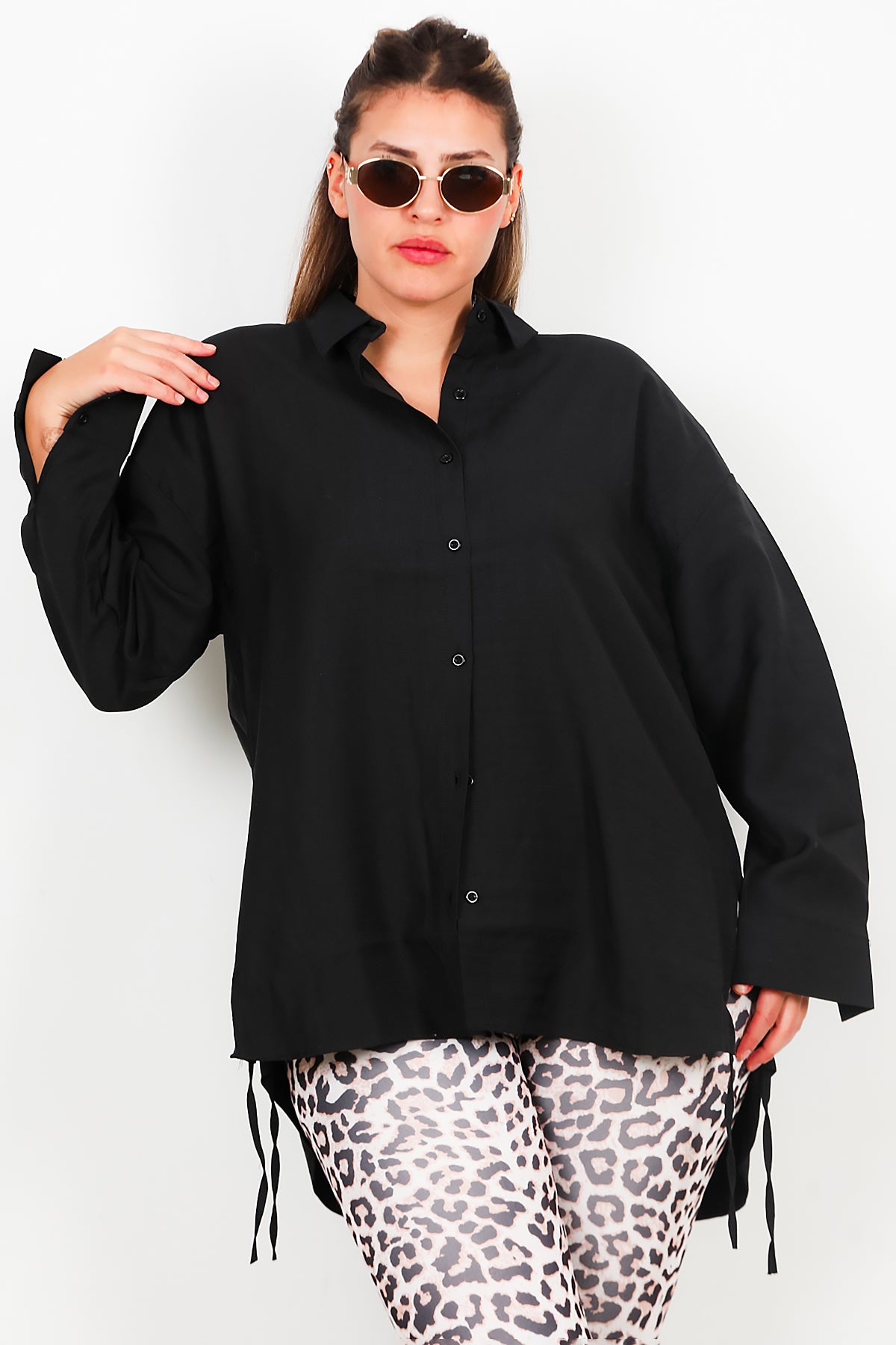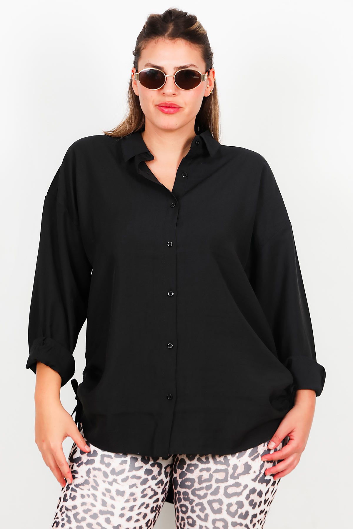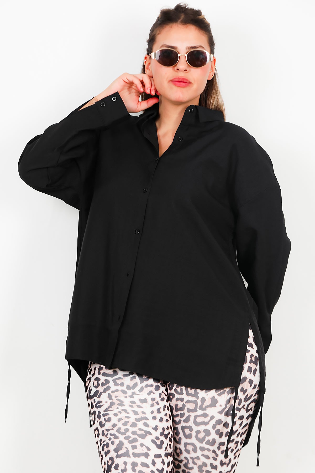 Büyük Beden Oversize Yan Bağcıklı Gömlek Siyah