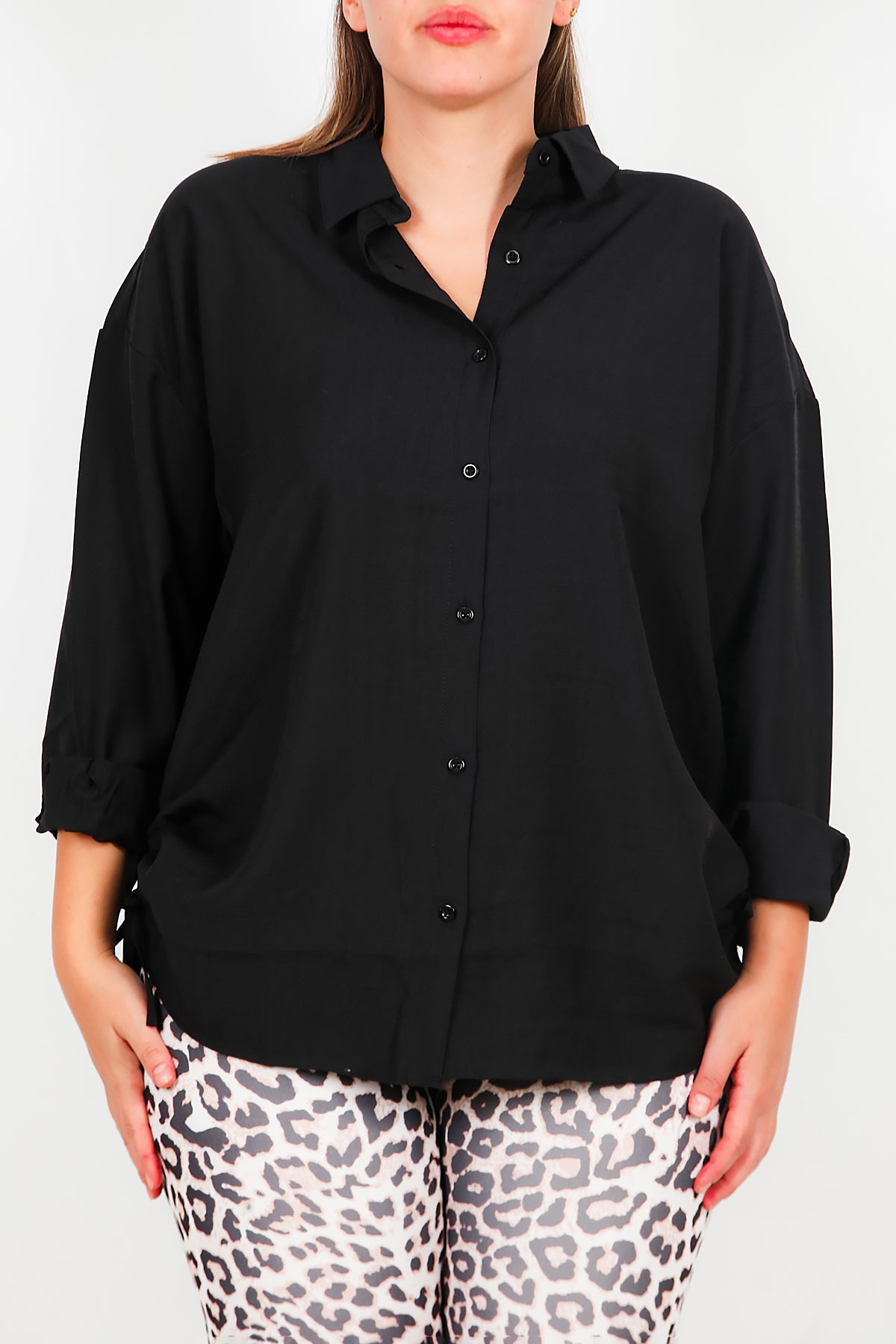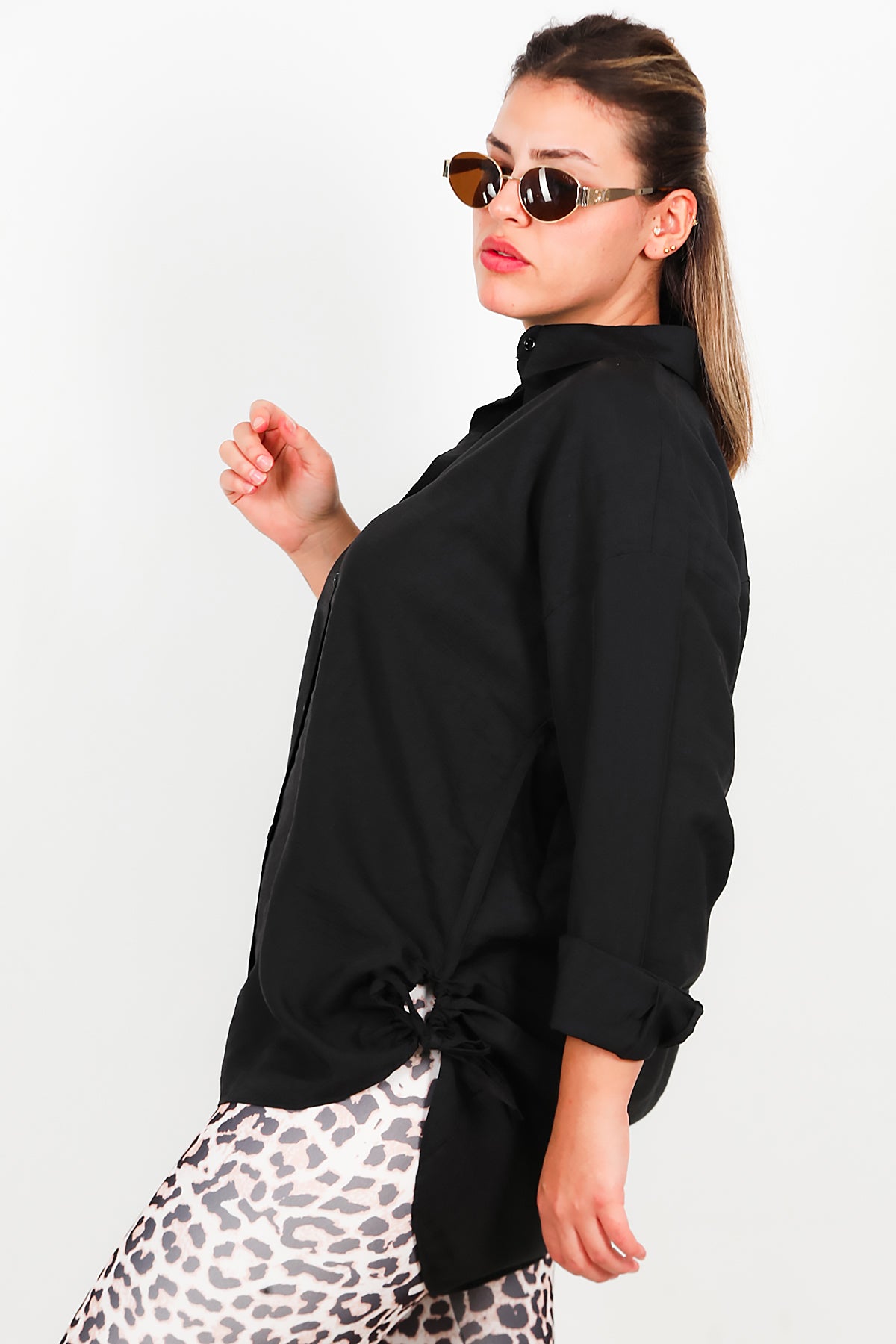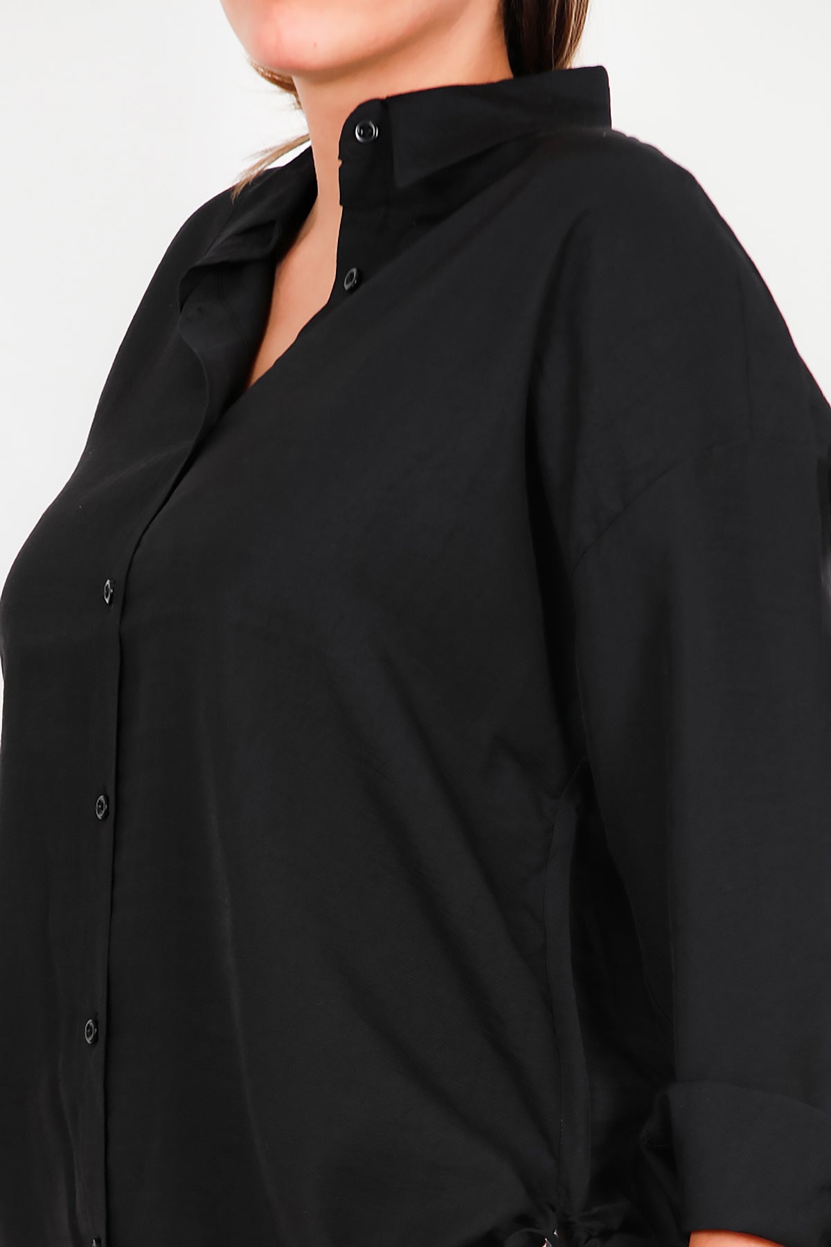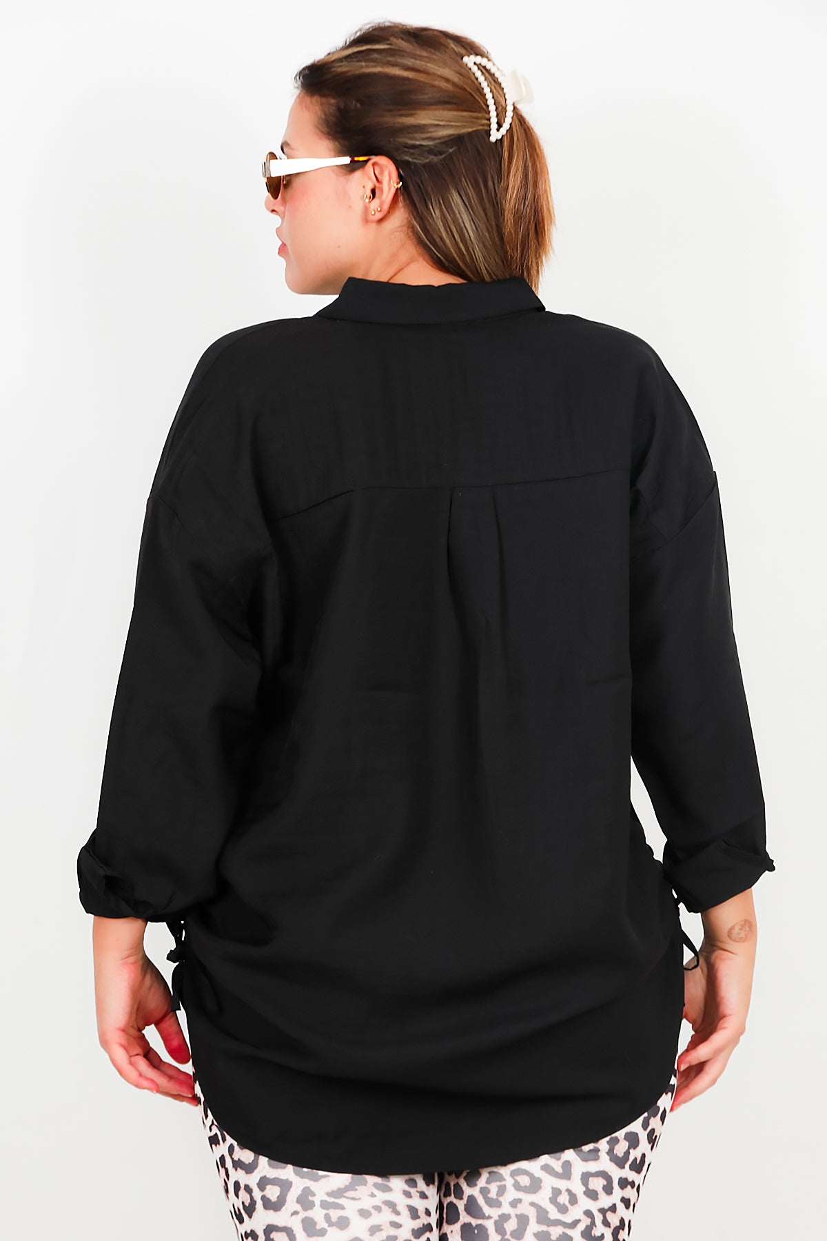 Büyük Beden Oversize Yan Bağcıklı Gömlek Siyah