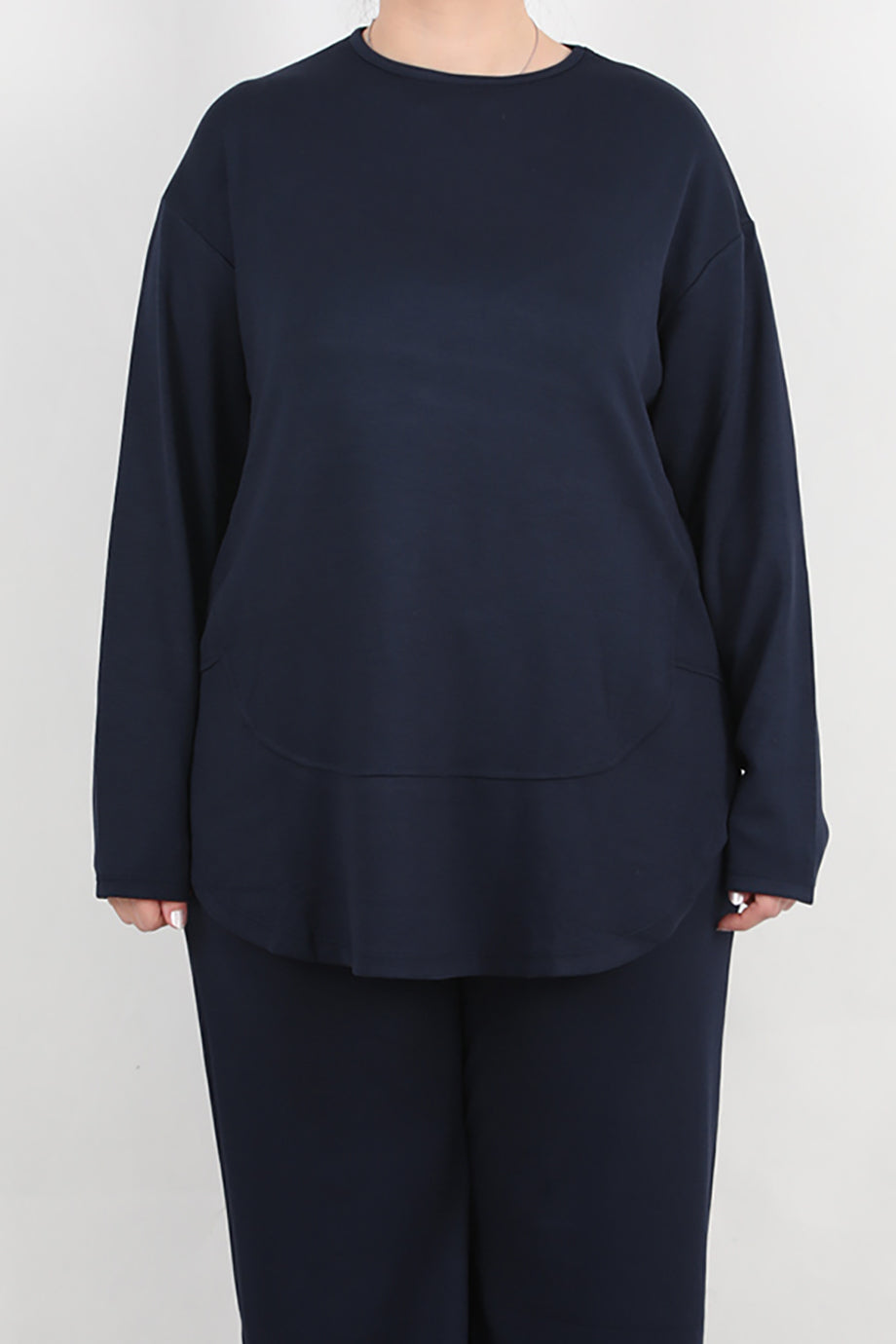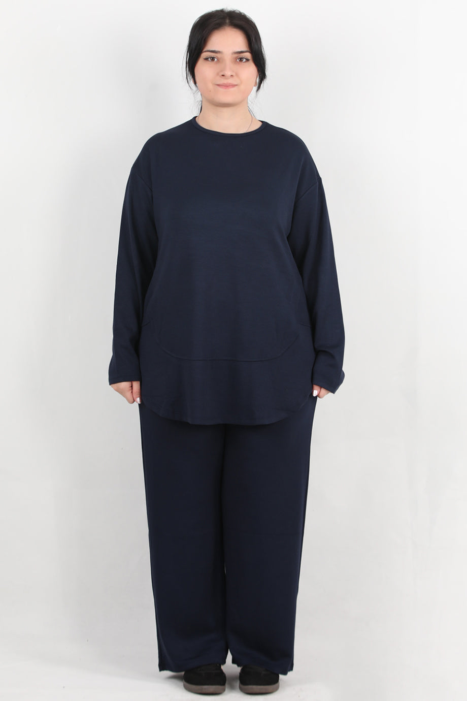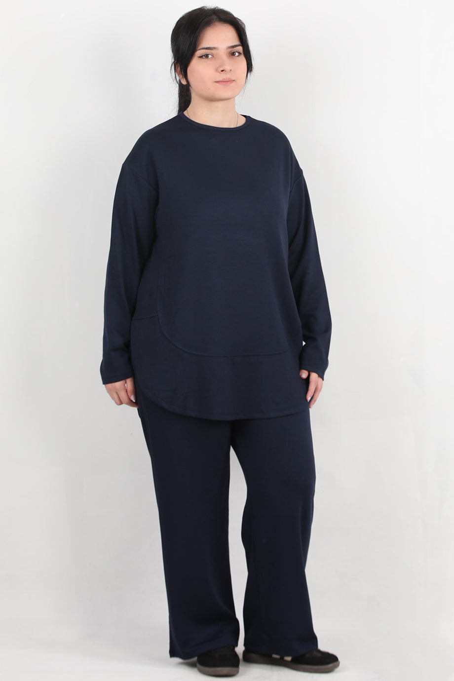 Modera Büyük Beden Parça Detay İkili Takım Lacivert