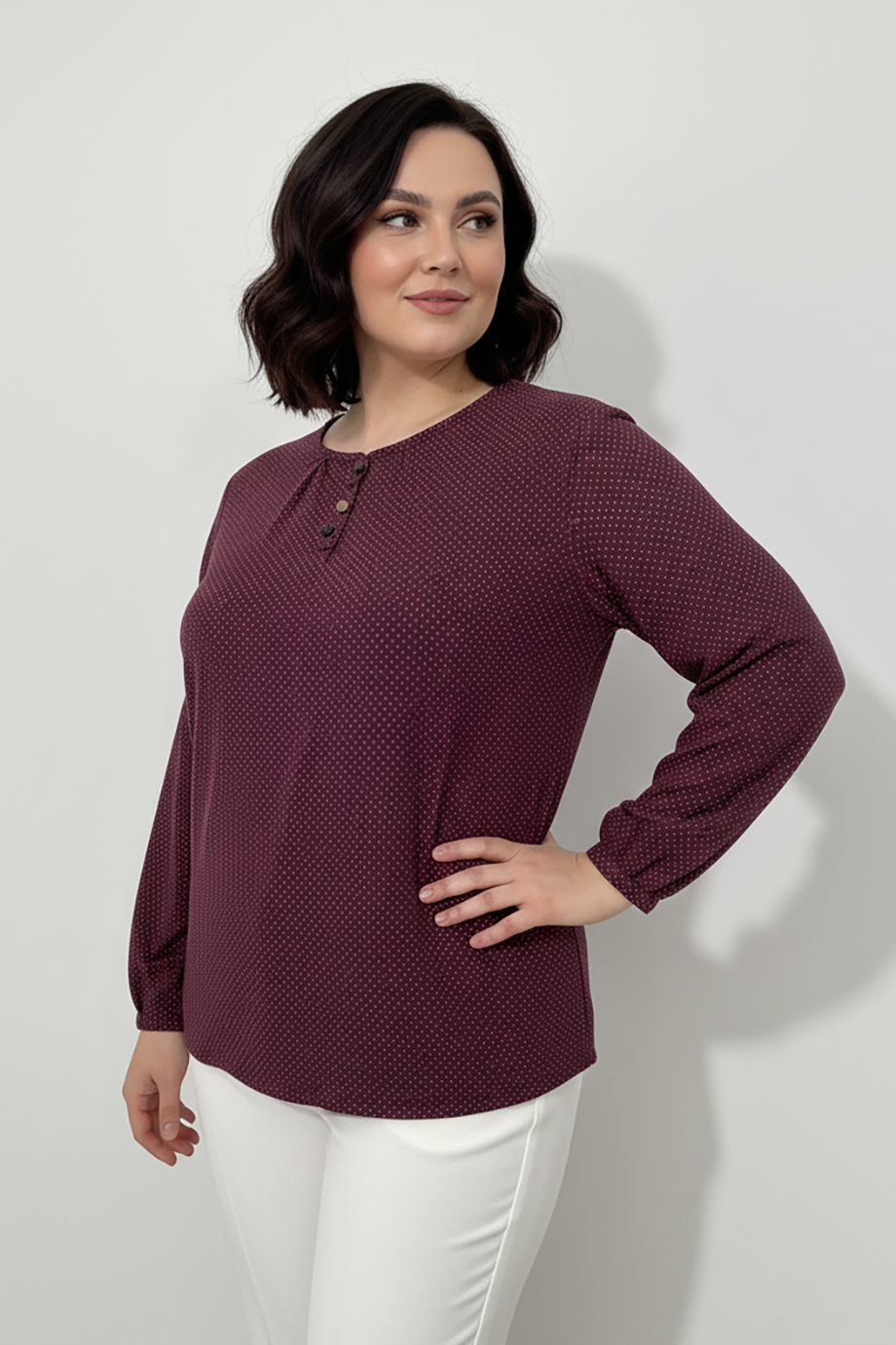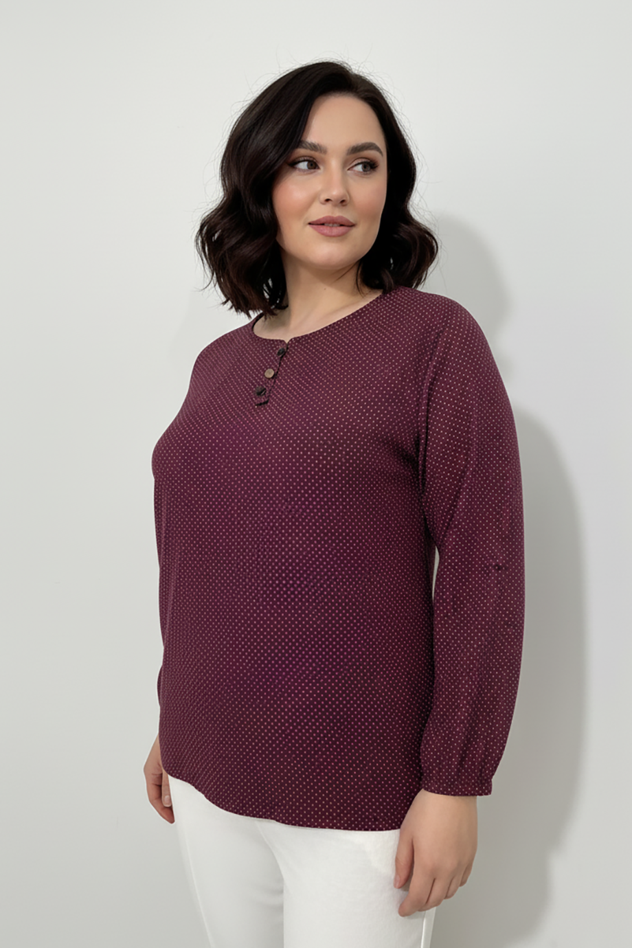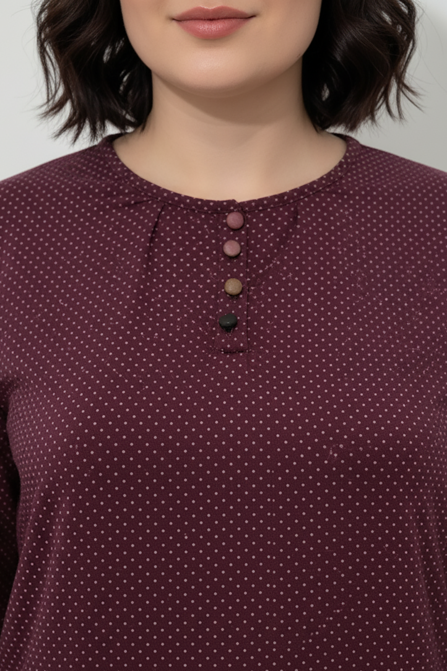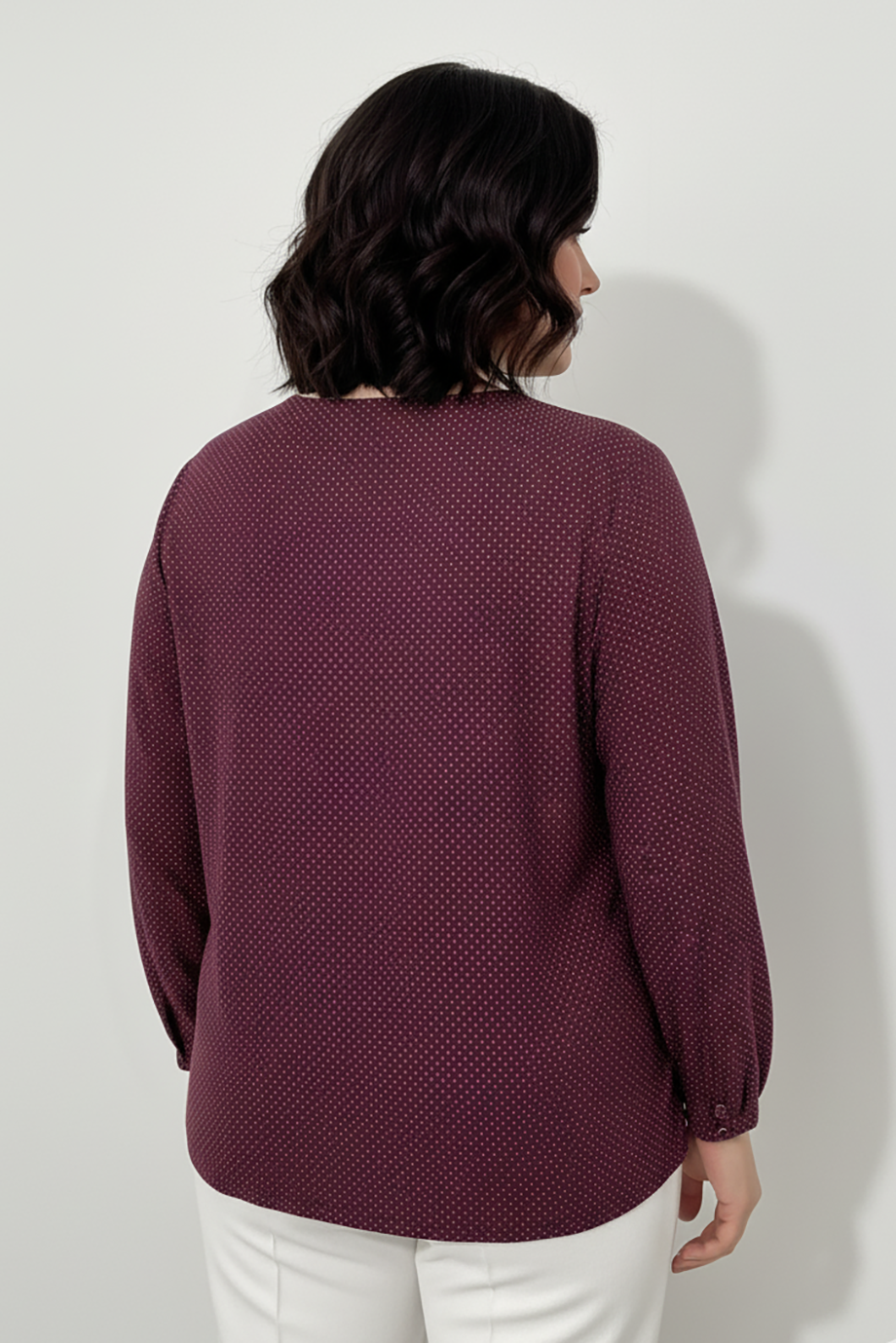 Büyük Beden Puantiyeli Kol Lastikli Bluz Bordo