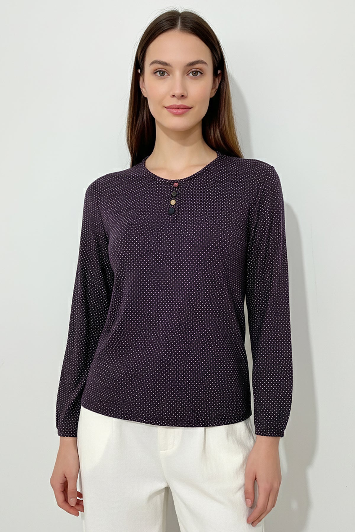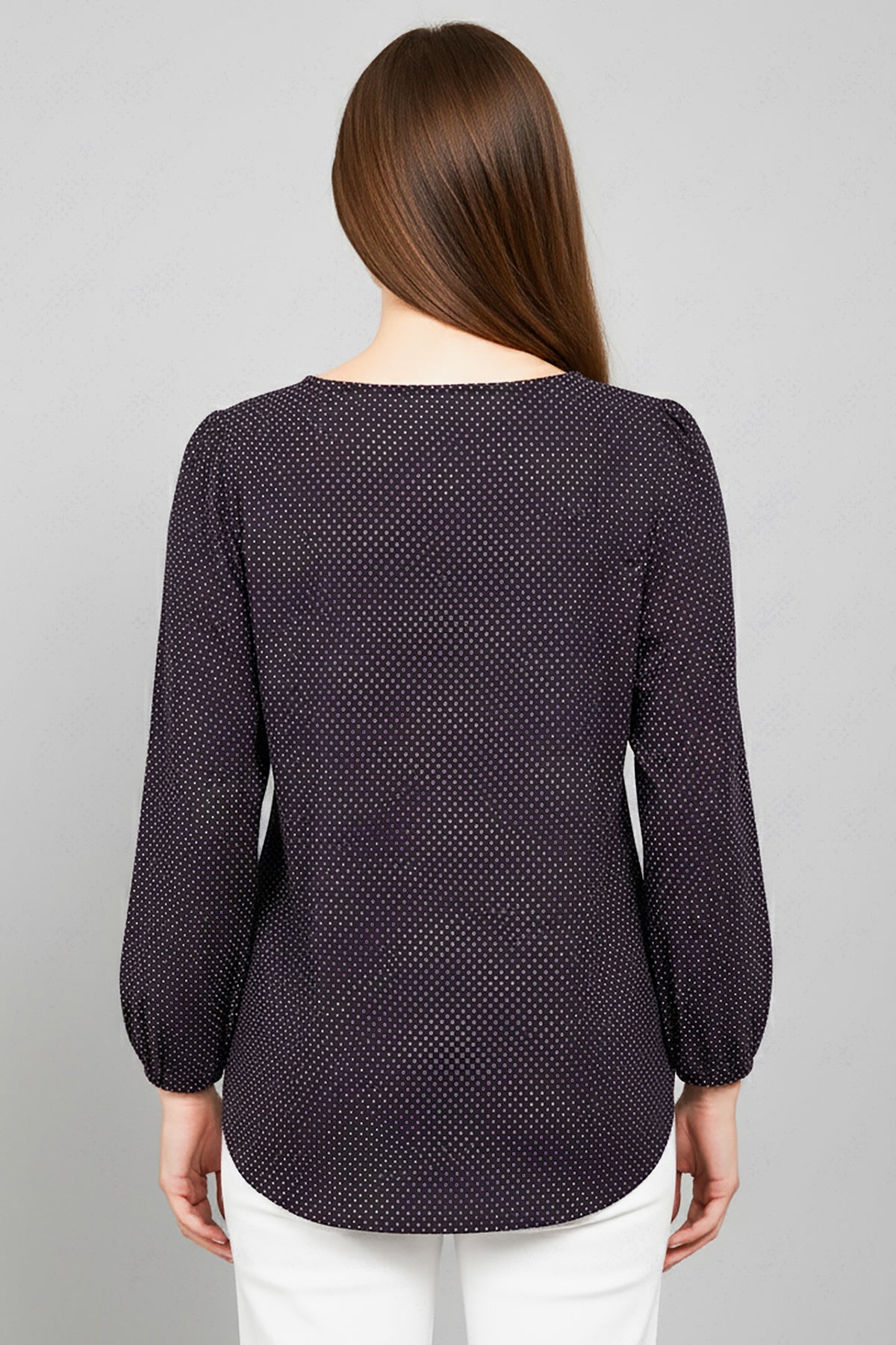 Büyük Beden Puantiyeli Kol Lastikli Bluz Mor