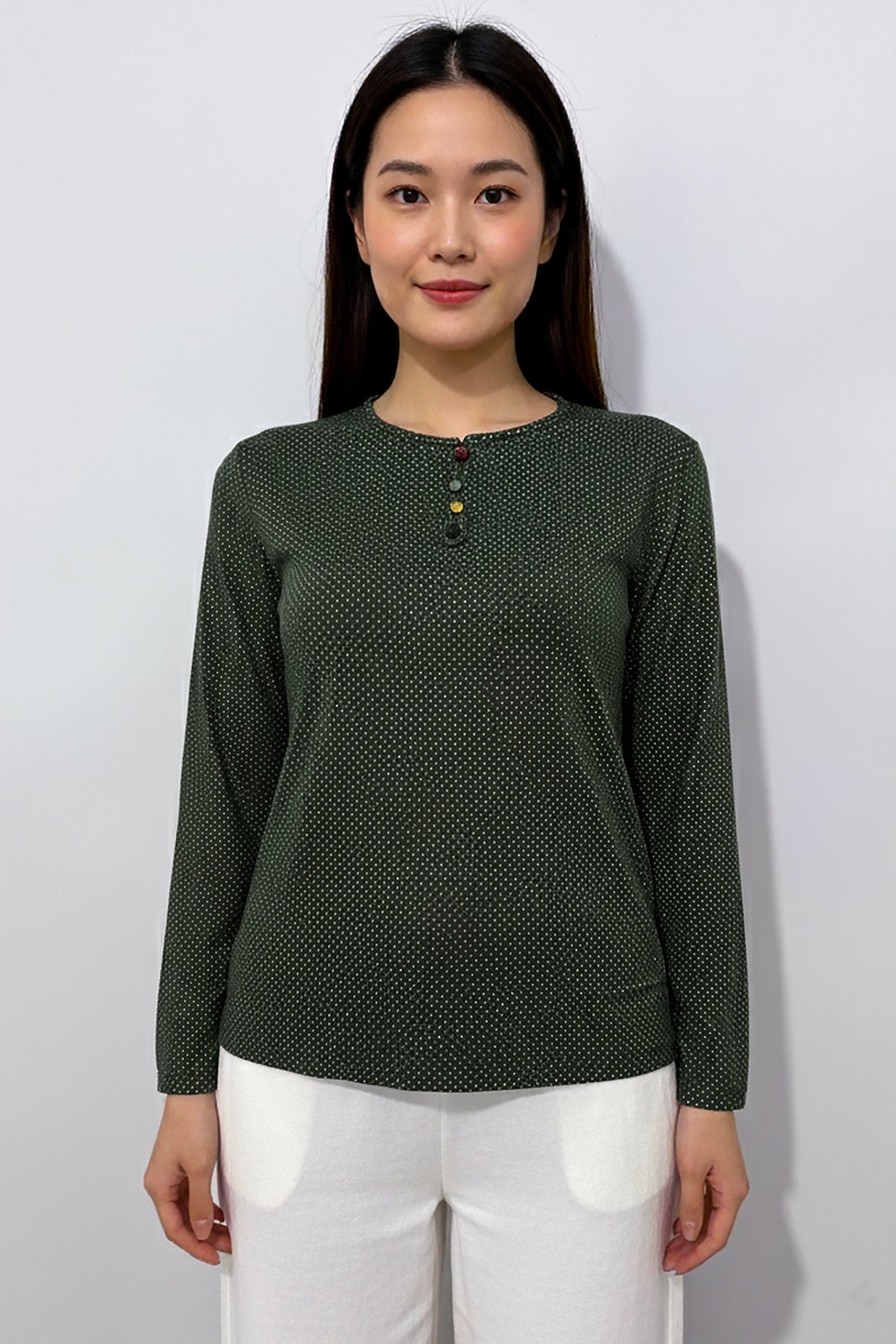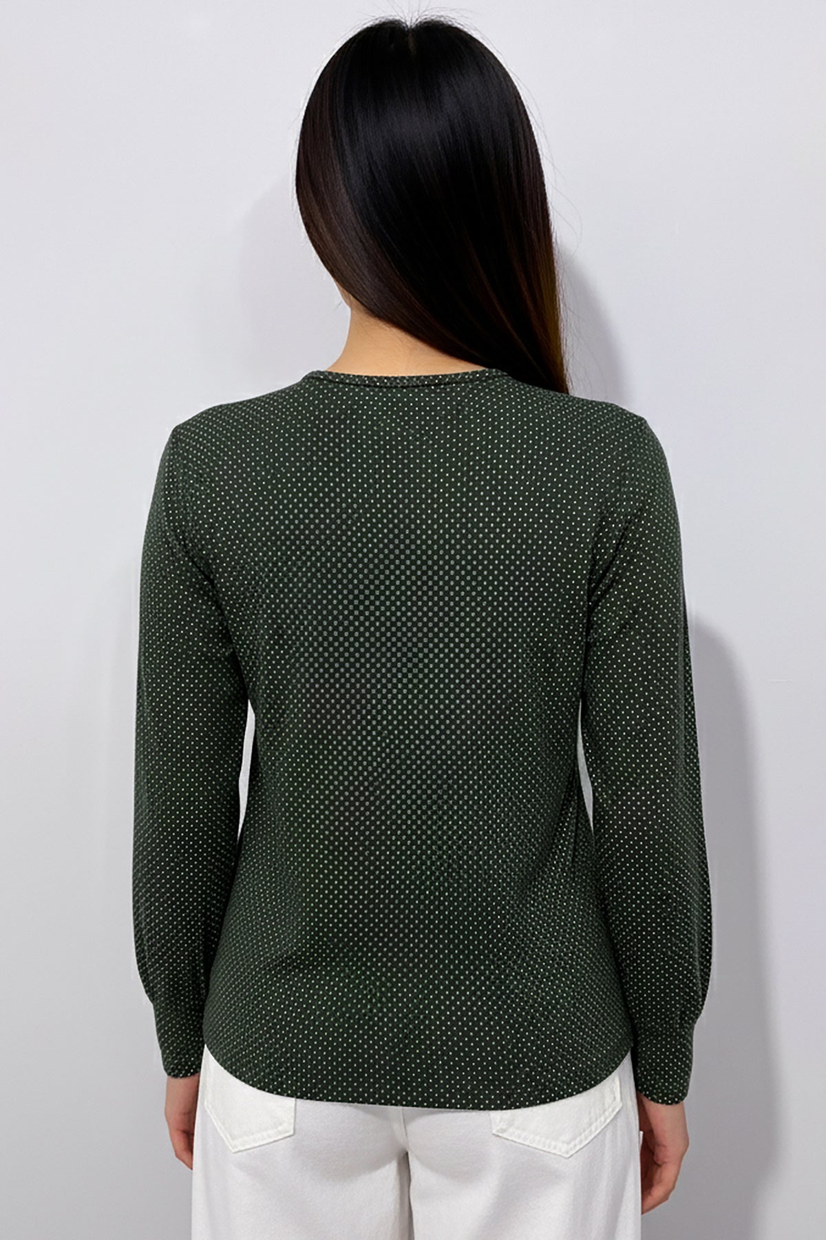 Büyük Beden Puantiyeli Kol Lastikli Bluz Yeşil
