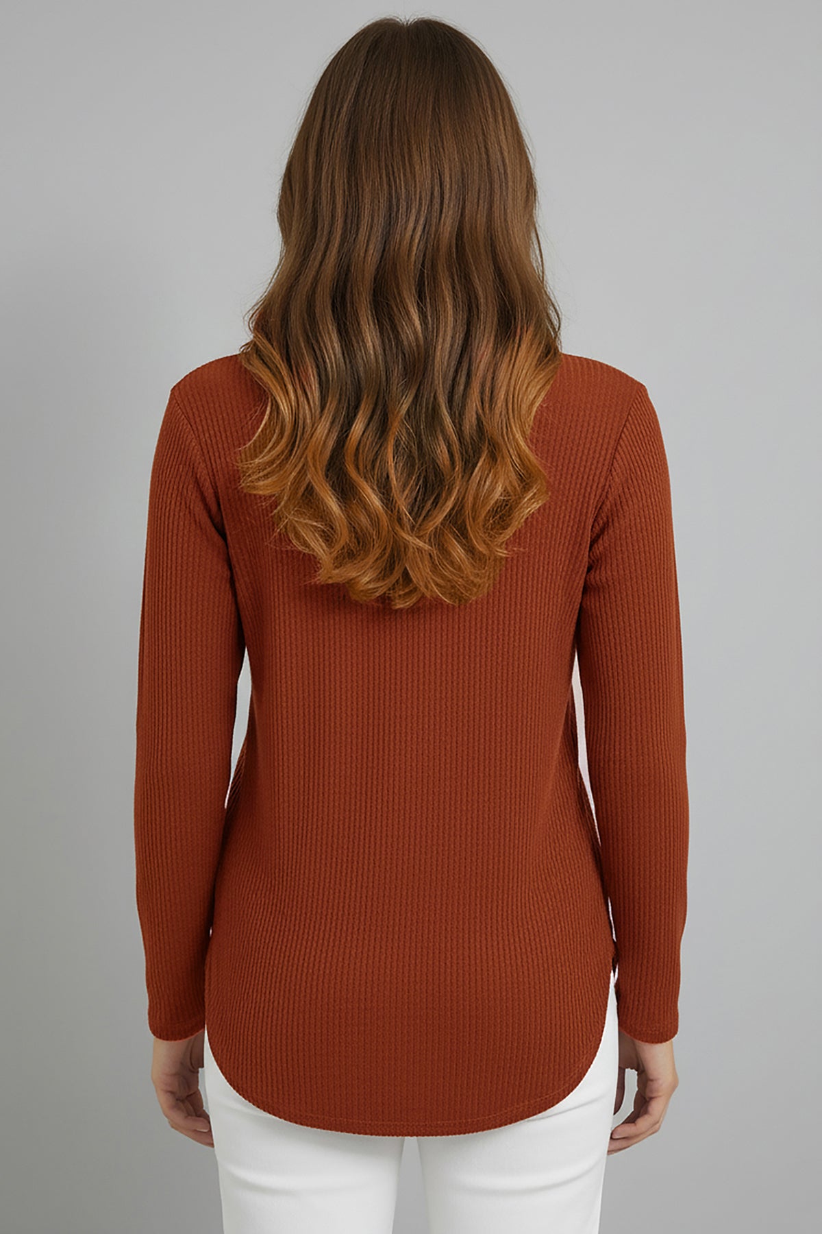 Büyük Beden Taş İşlemeli Bluz Kiremit