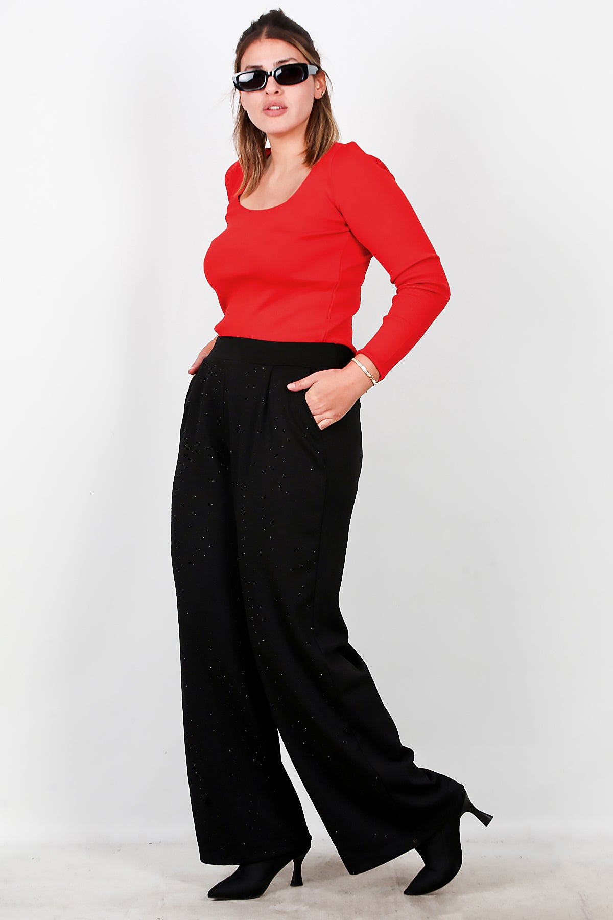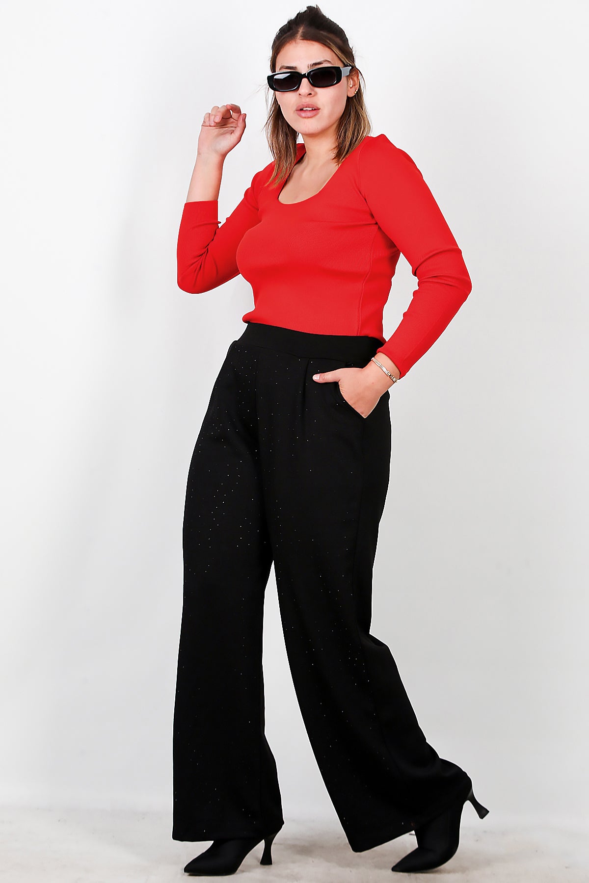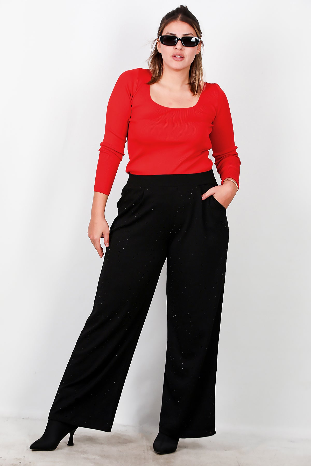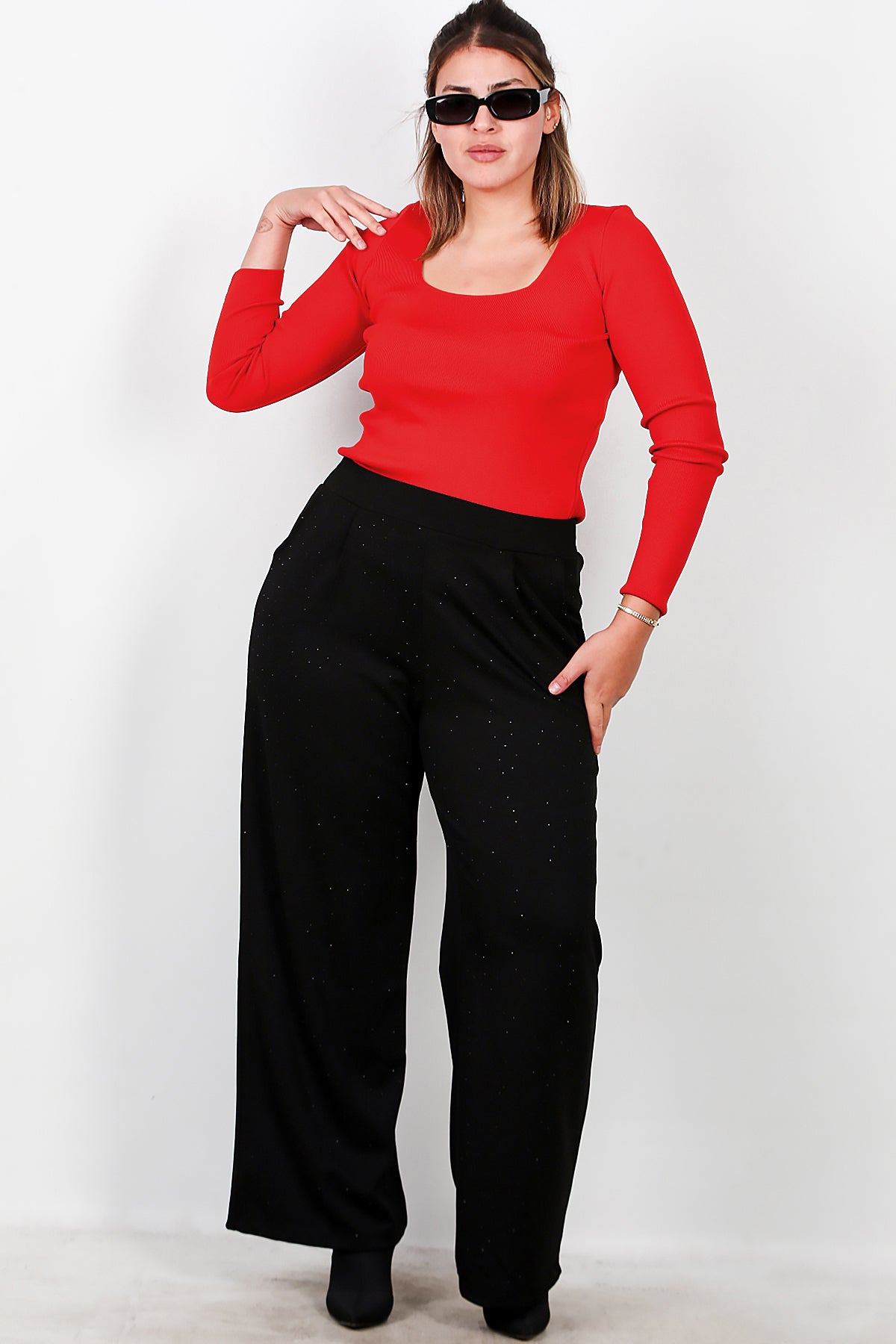 Büyük Beden Taşlı Pantolon Siyah