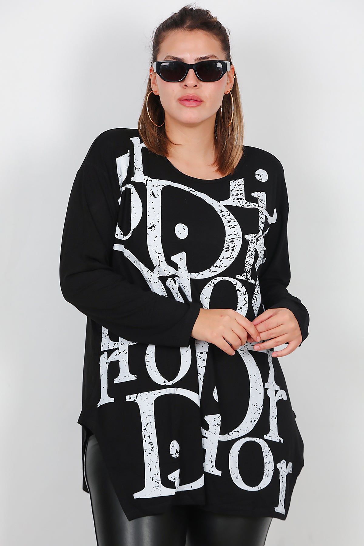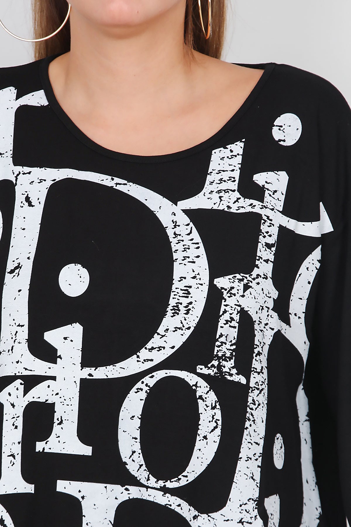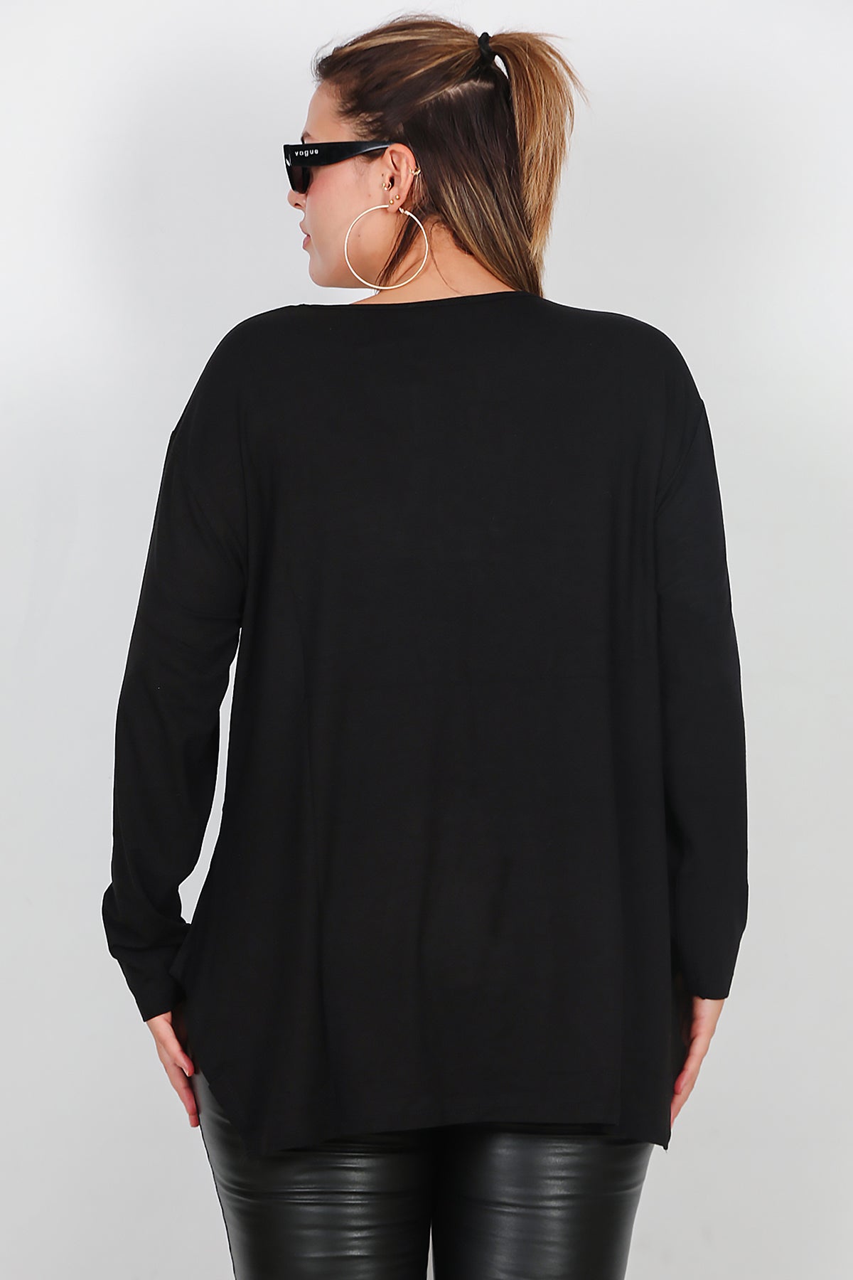 Büyük Beden Uzun Kollu Bluz Siyah