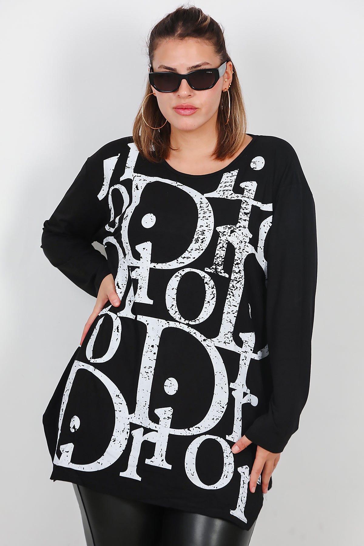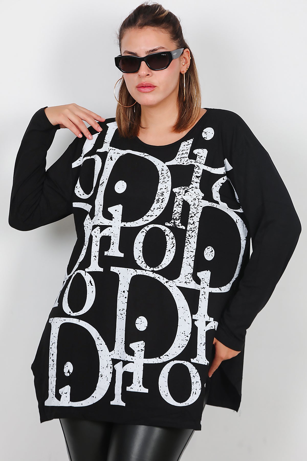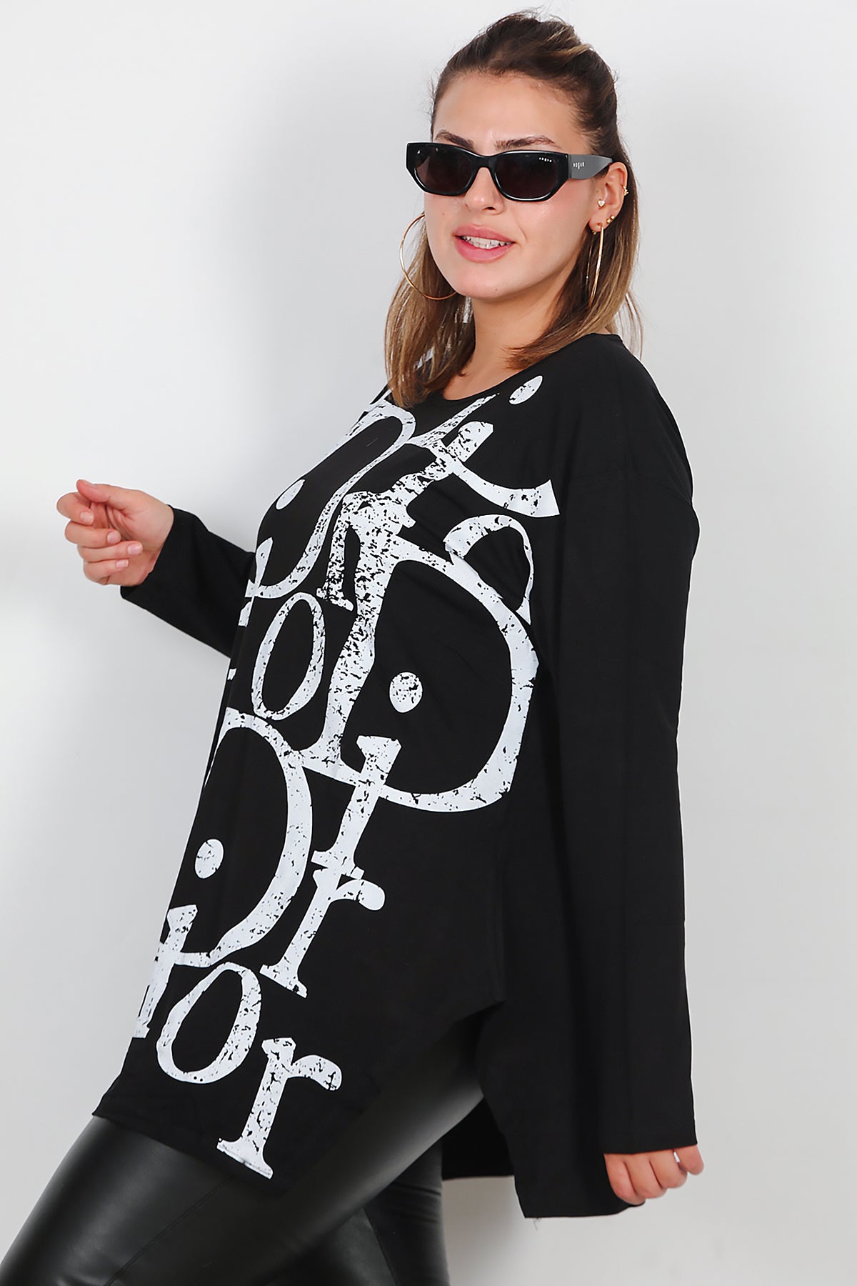 Büyük Beden Uzun Kollu Bluz Siyah