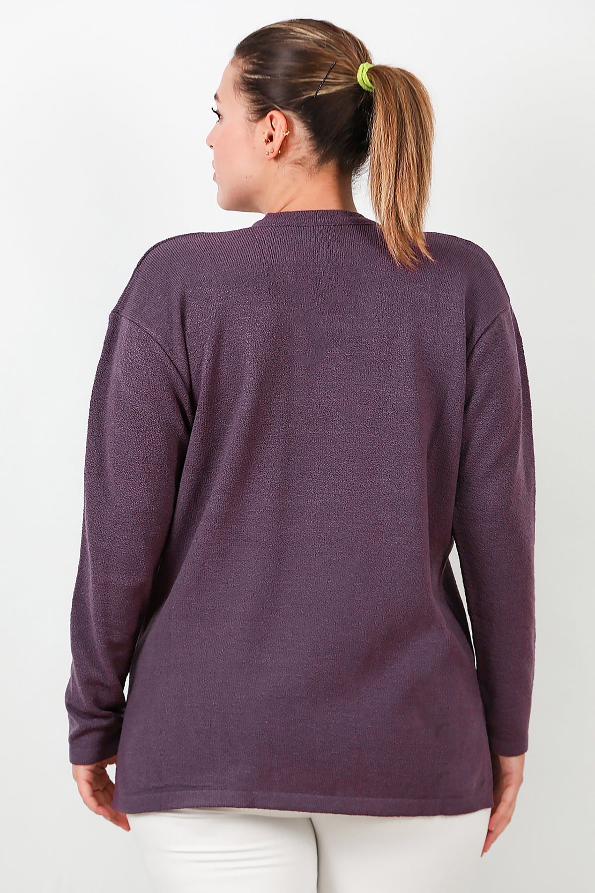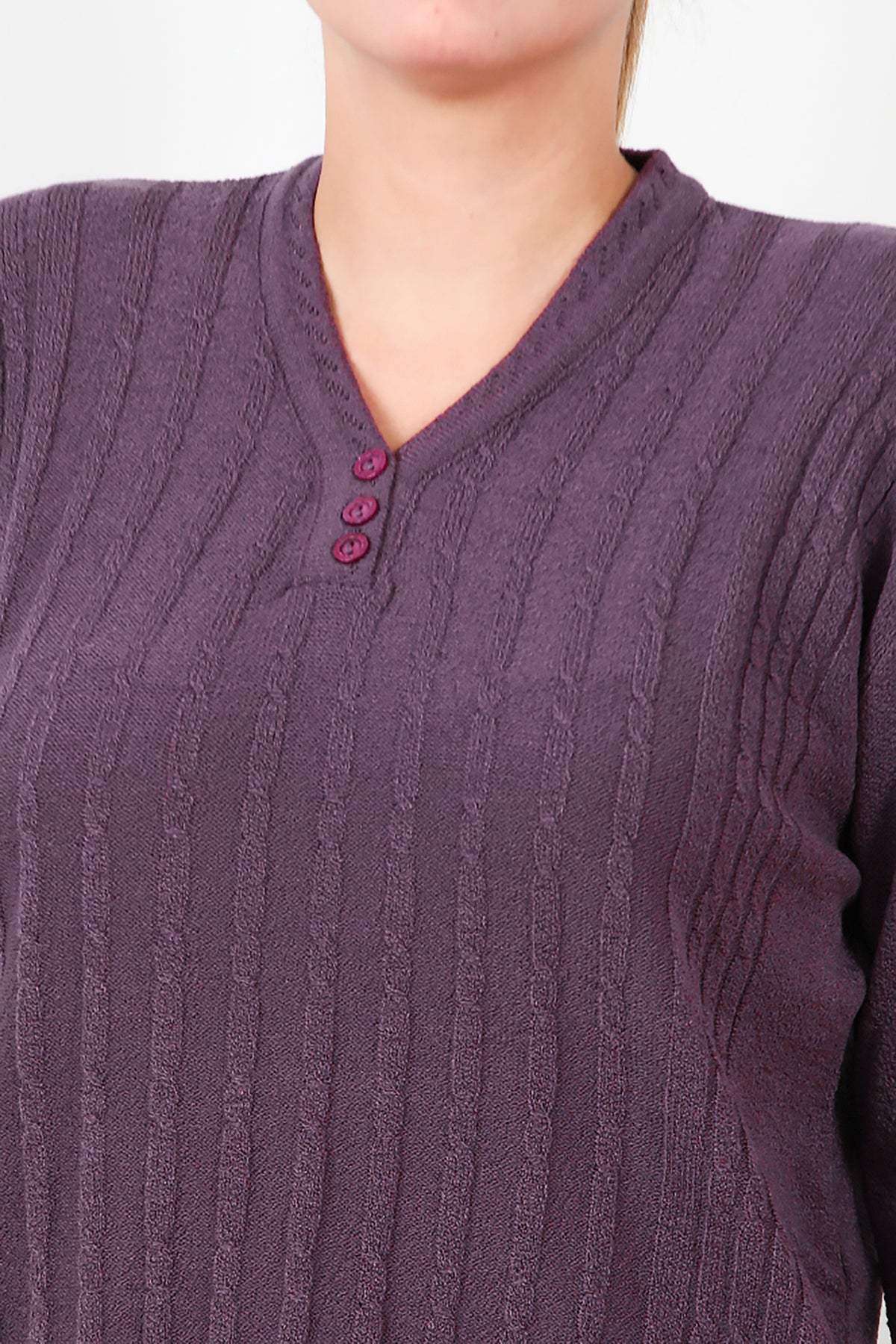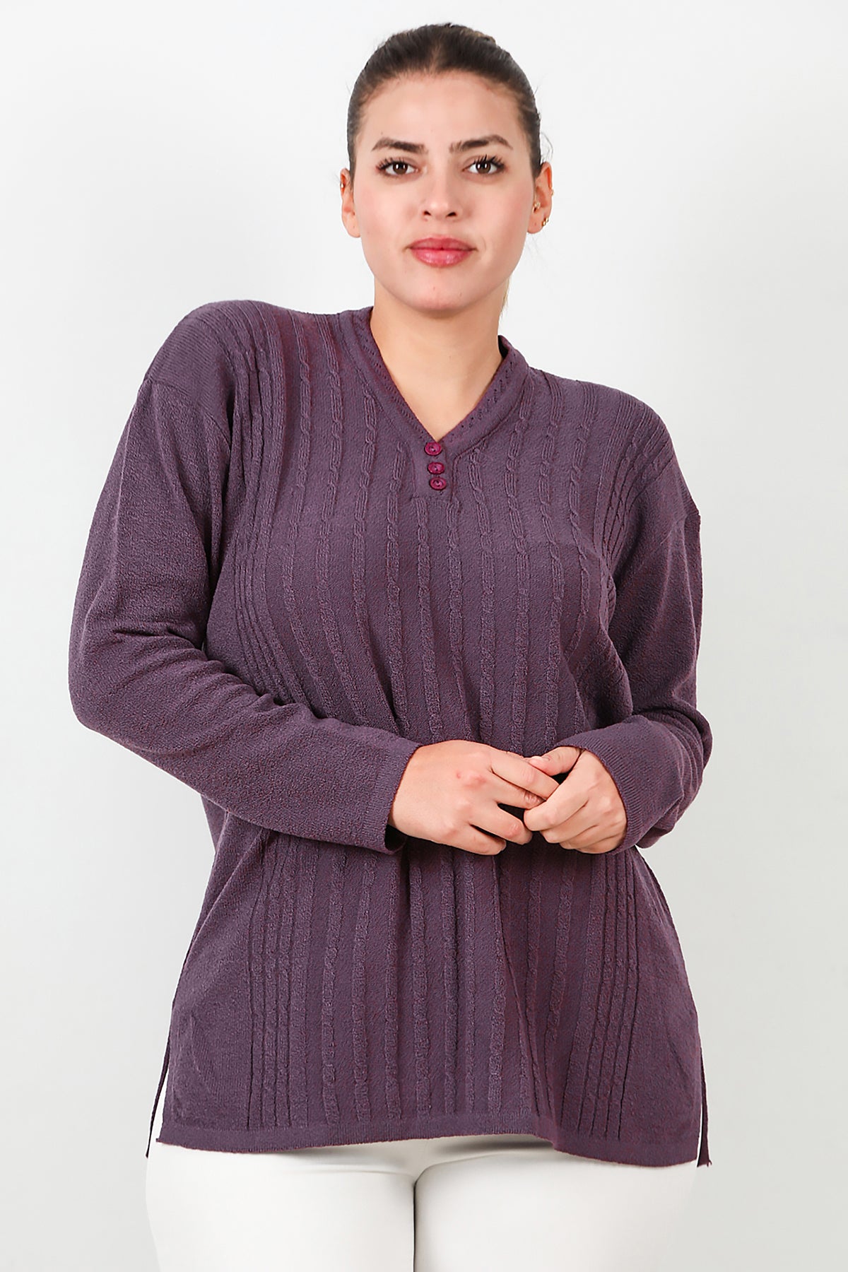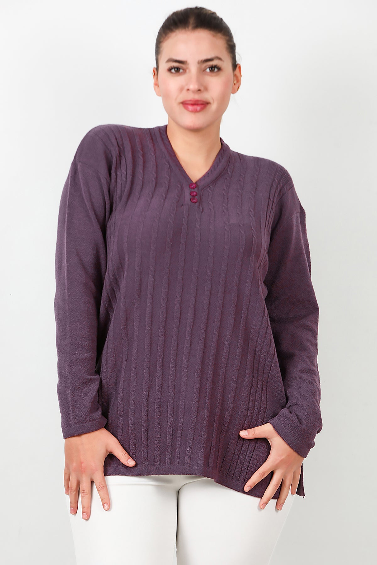 Büyük Beden V Yaka Üç Düğmeli Triko Bluz Açık Mor