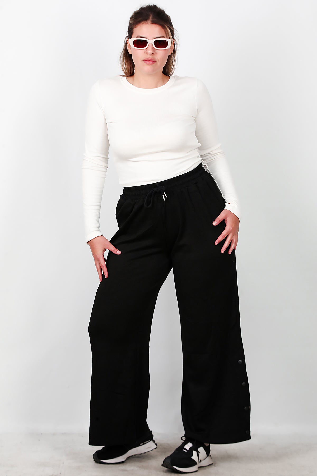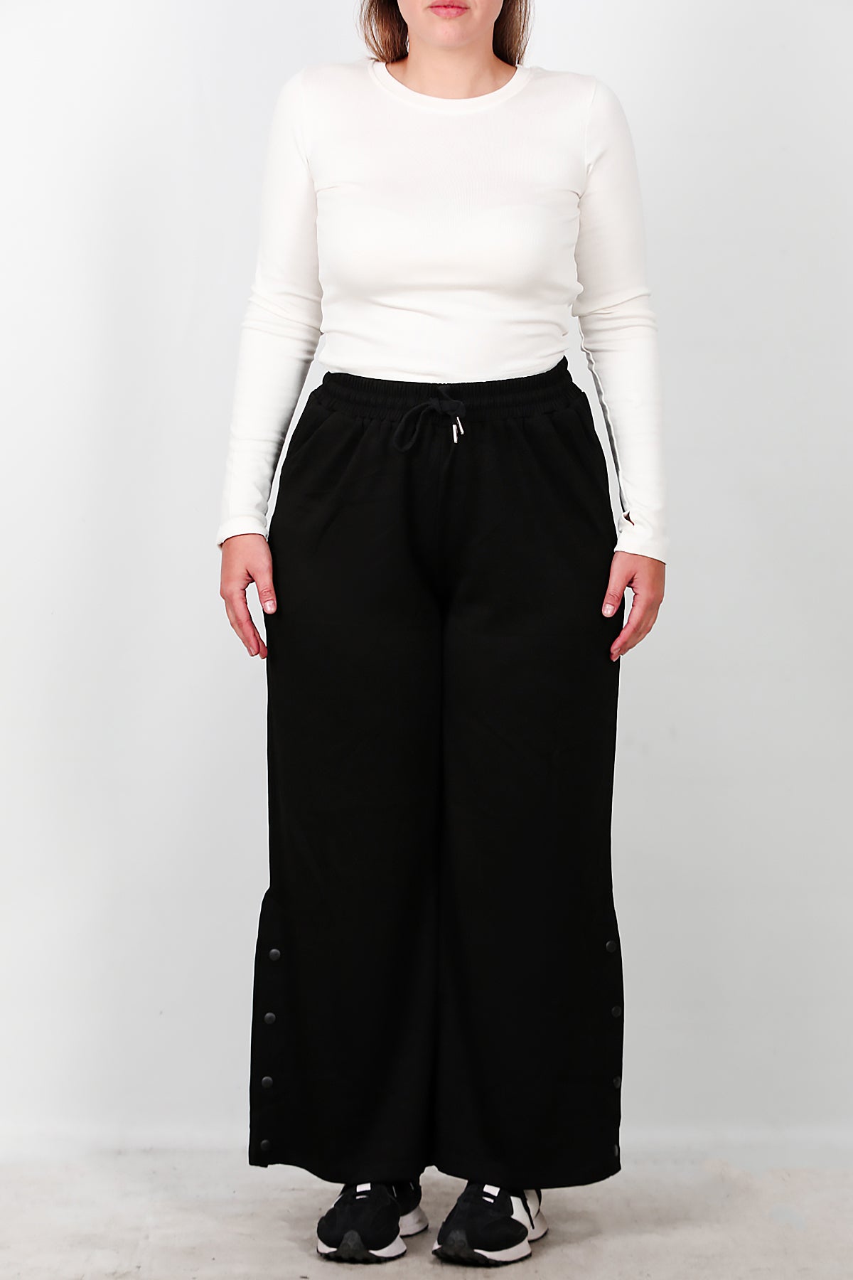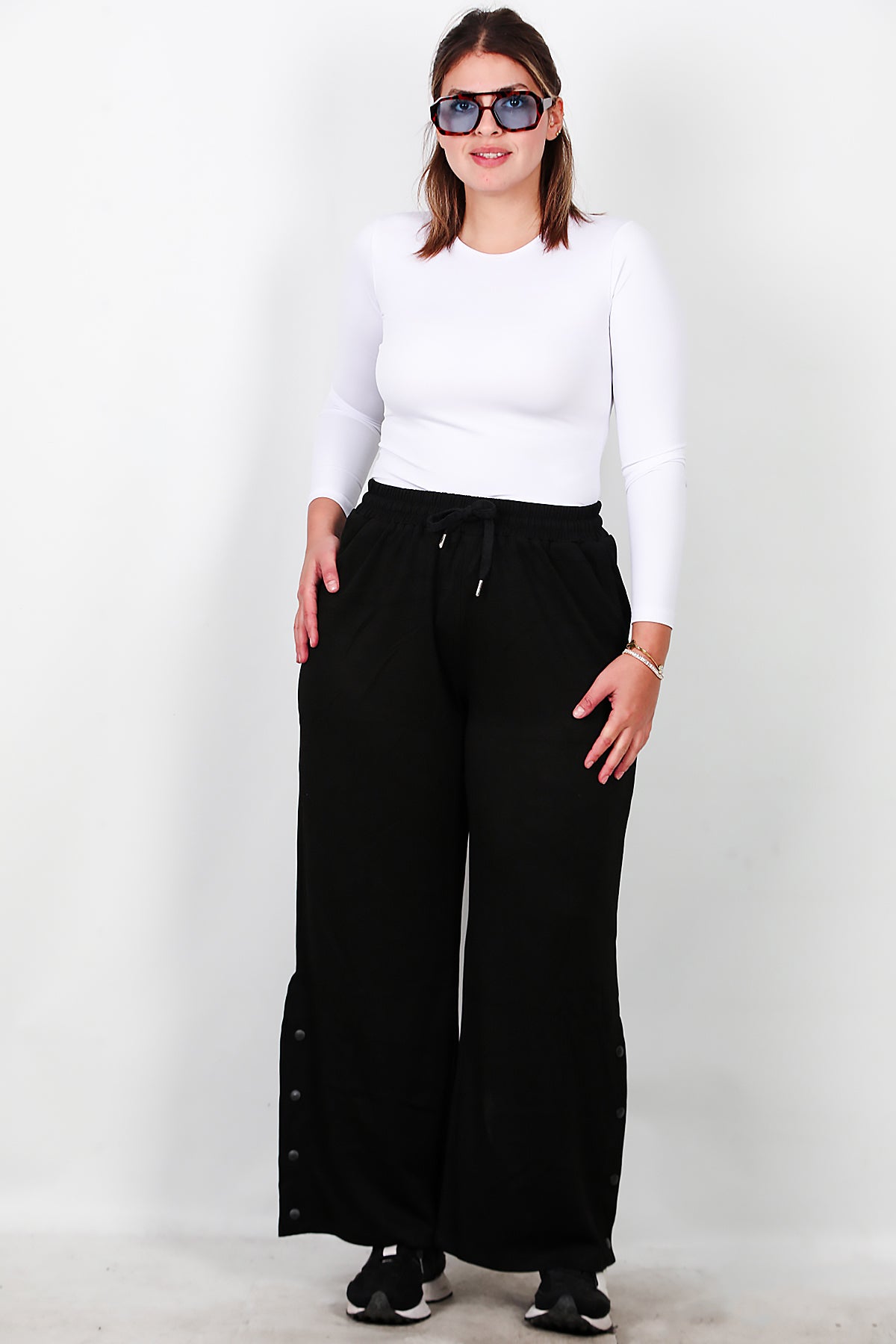 Büyük Beden Yan Paça Düğmeli Pantolon Siyah