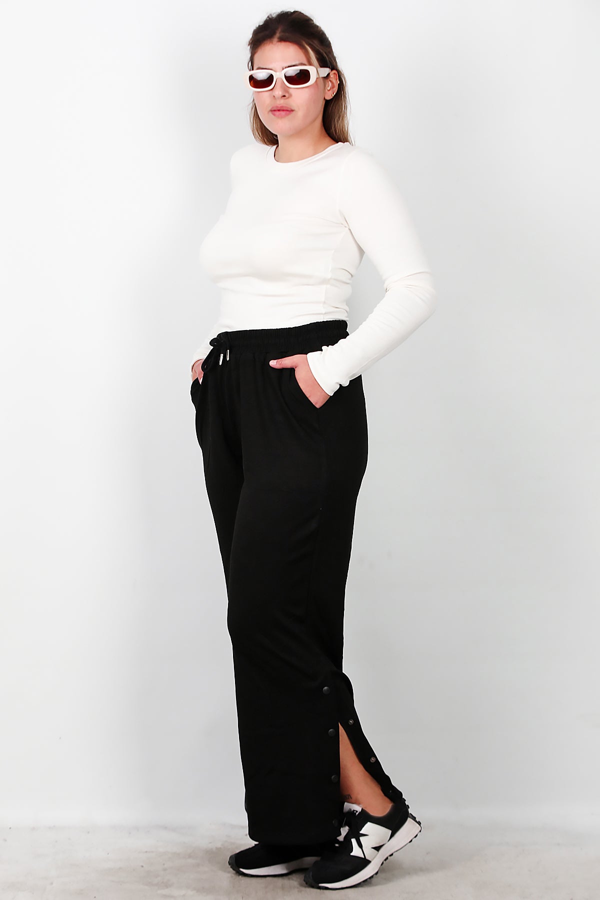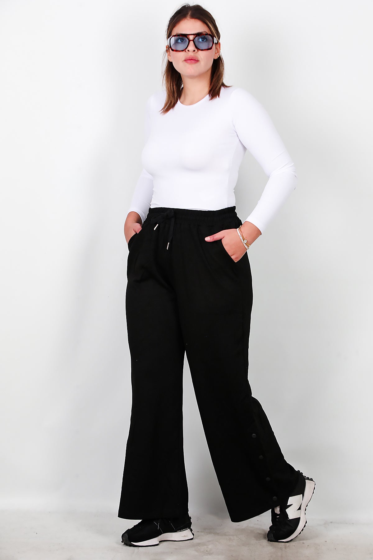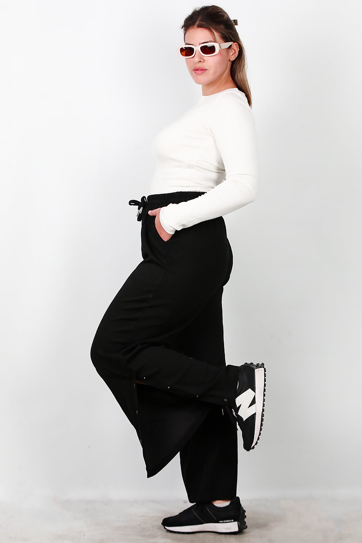 Büyük Beden Yan Paça Düğmeli Pantolon Siyah