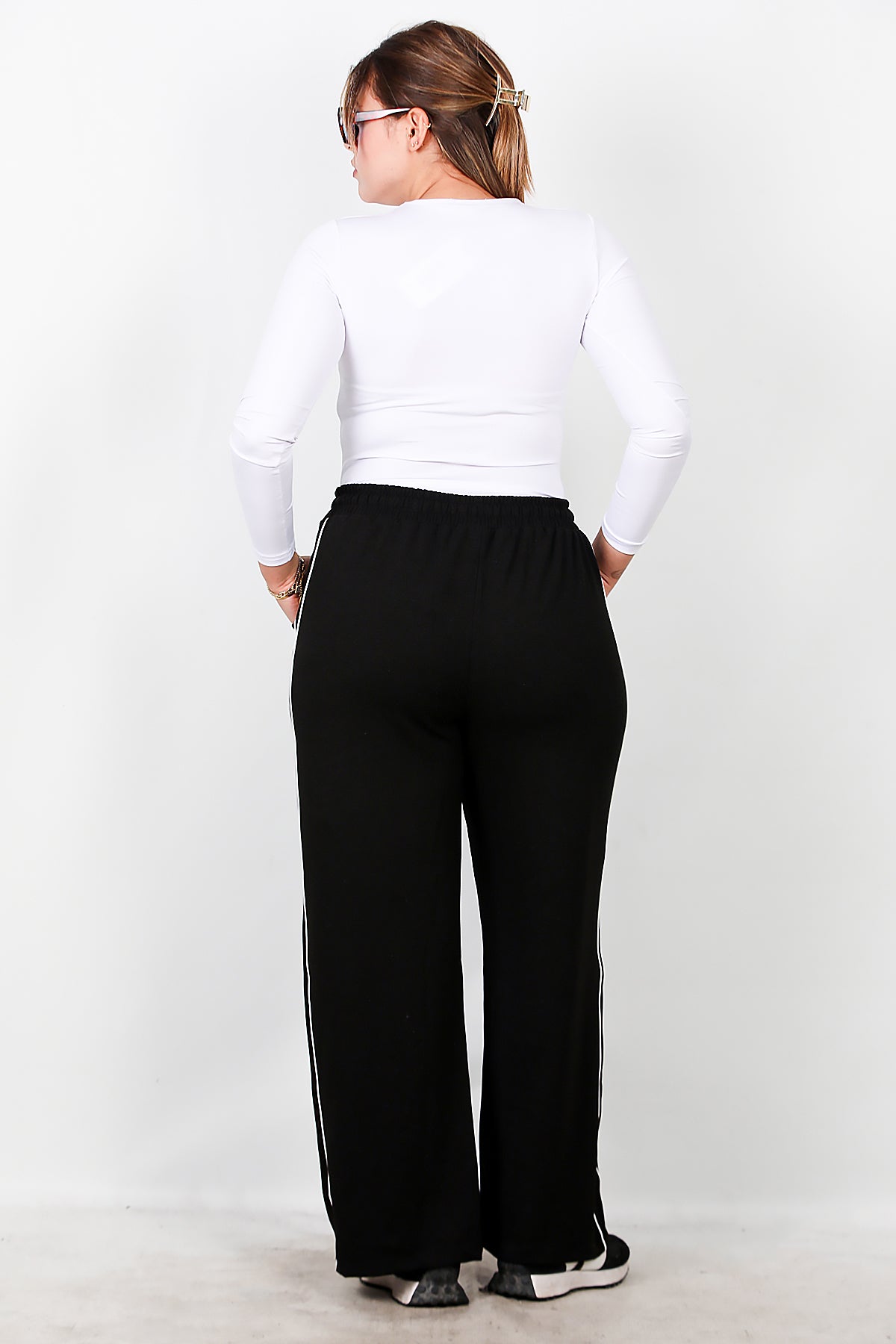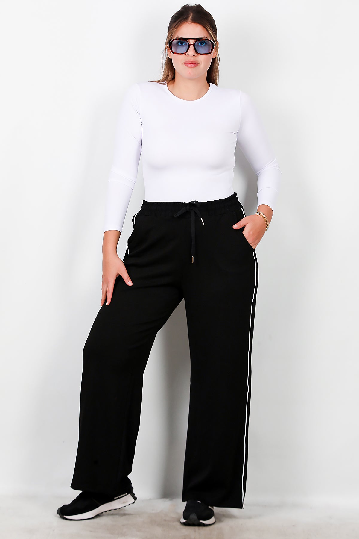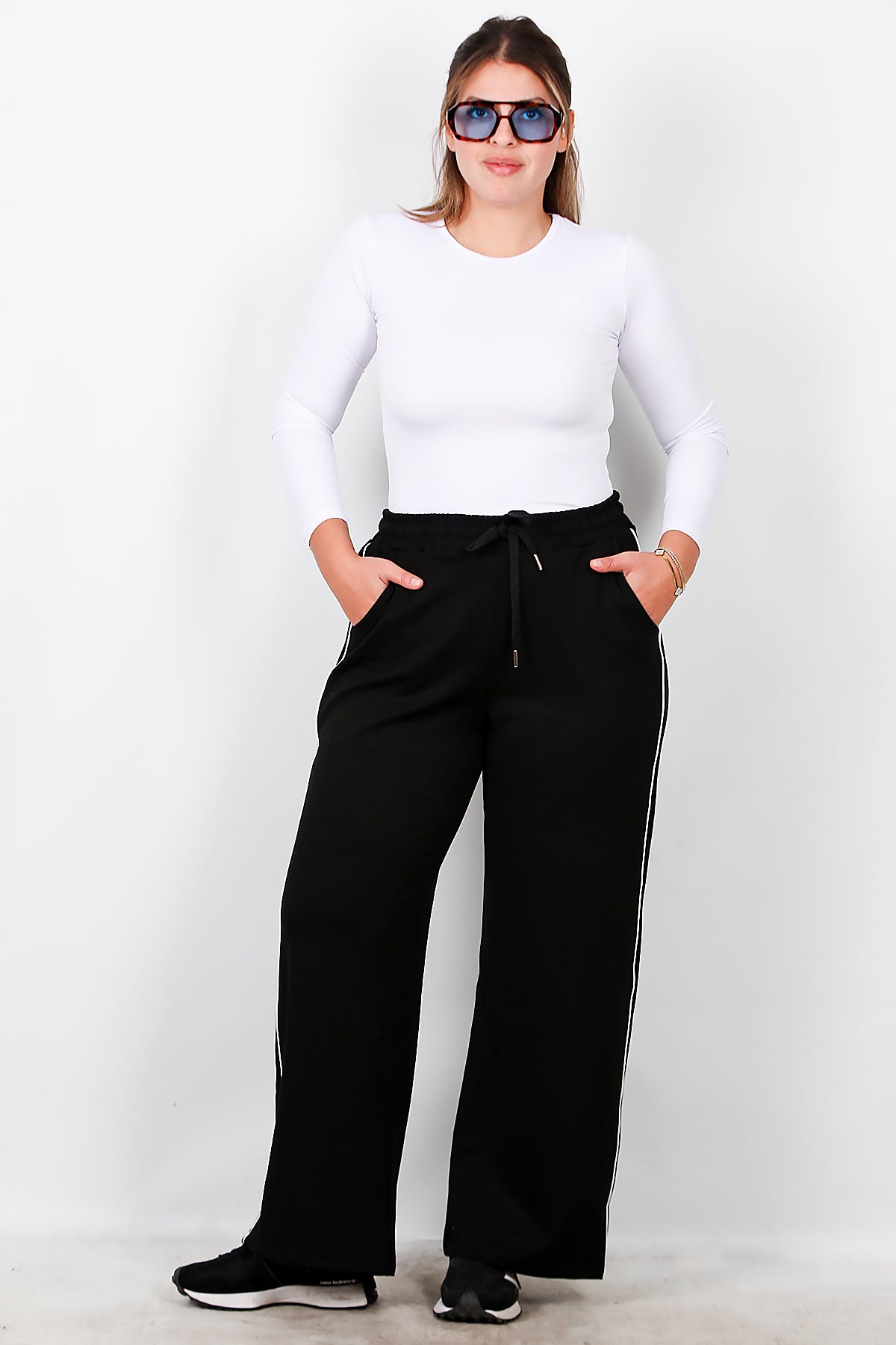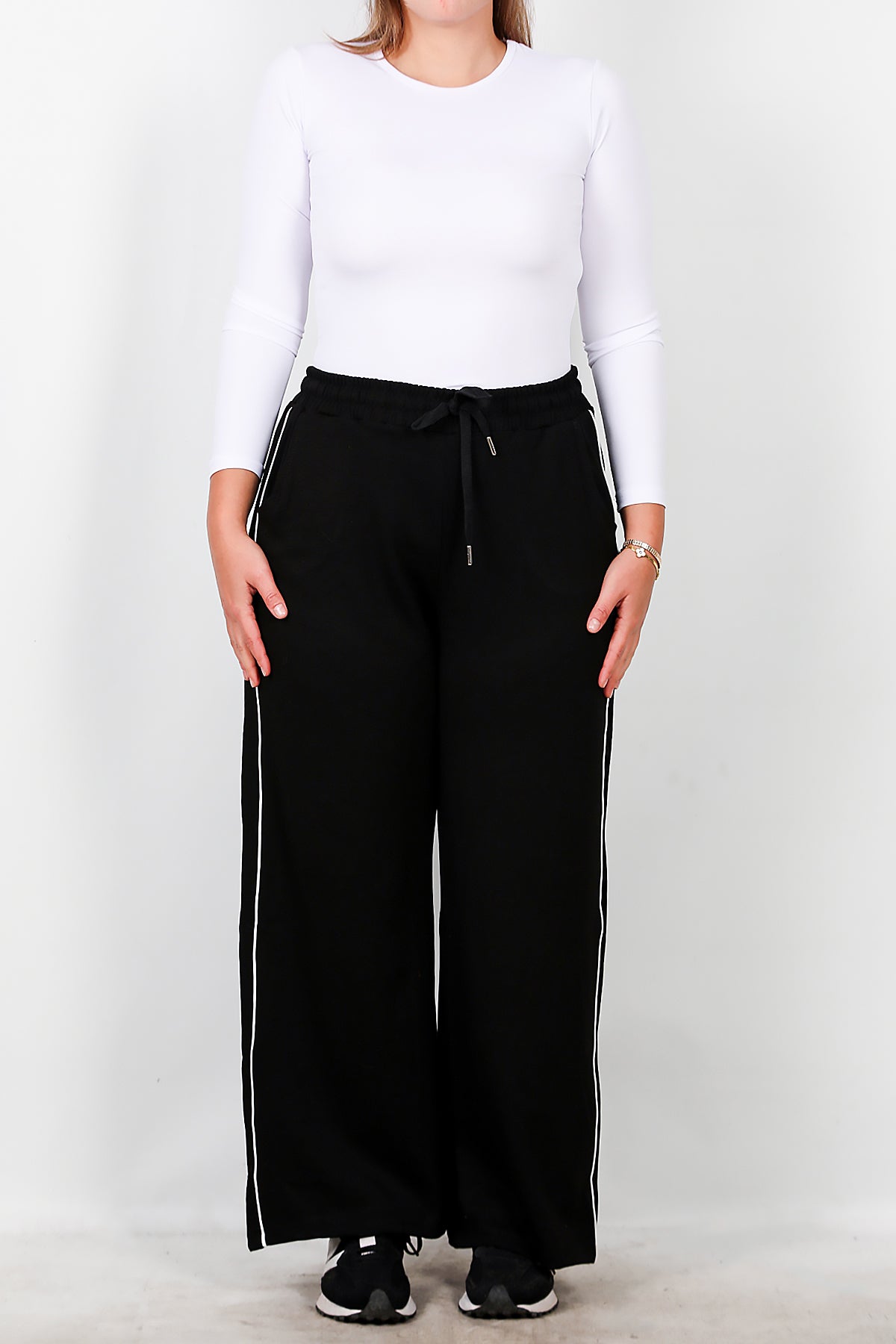 Büyük Beden Yan Şeritli Pantolon Siyah