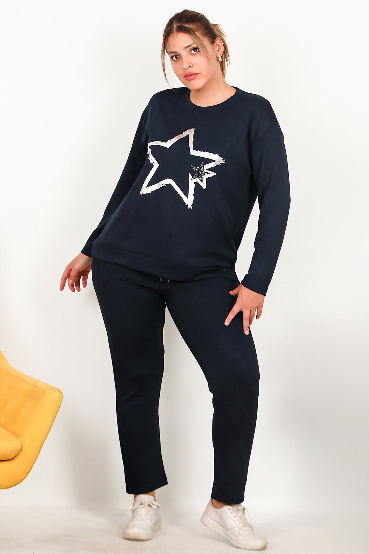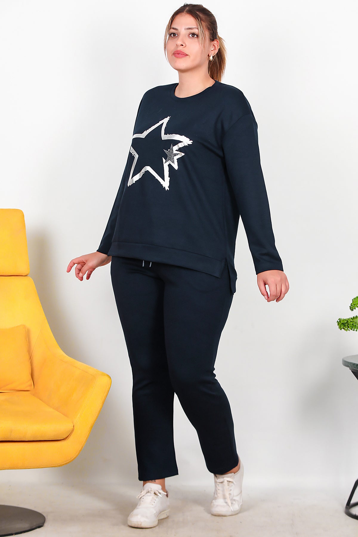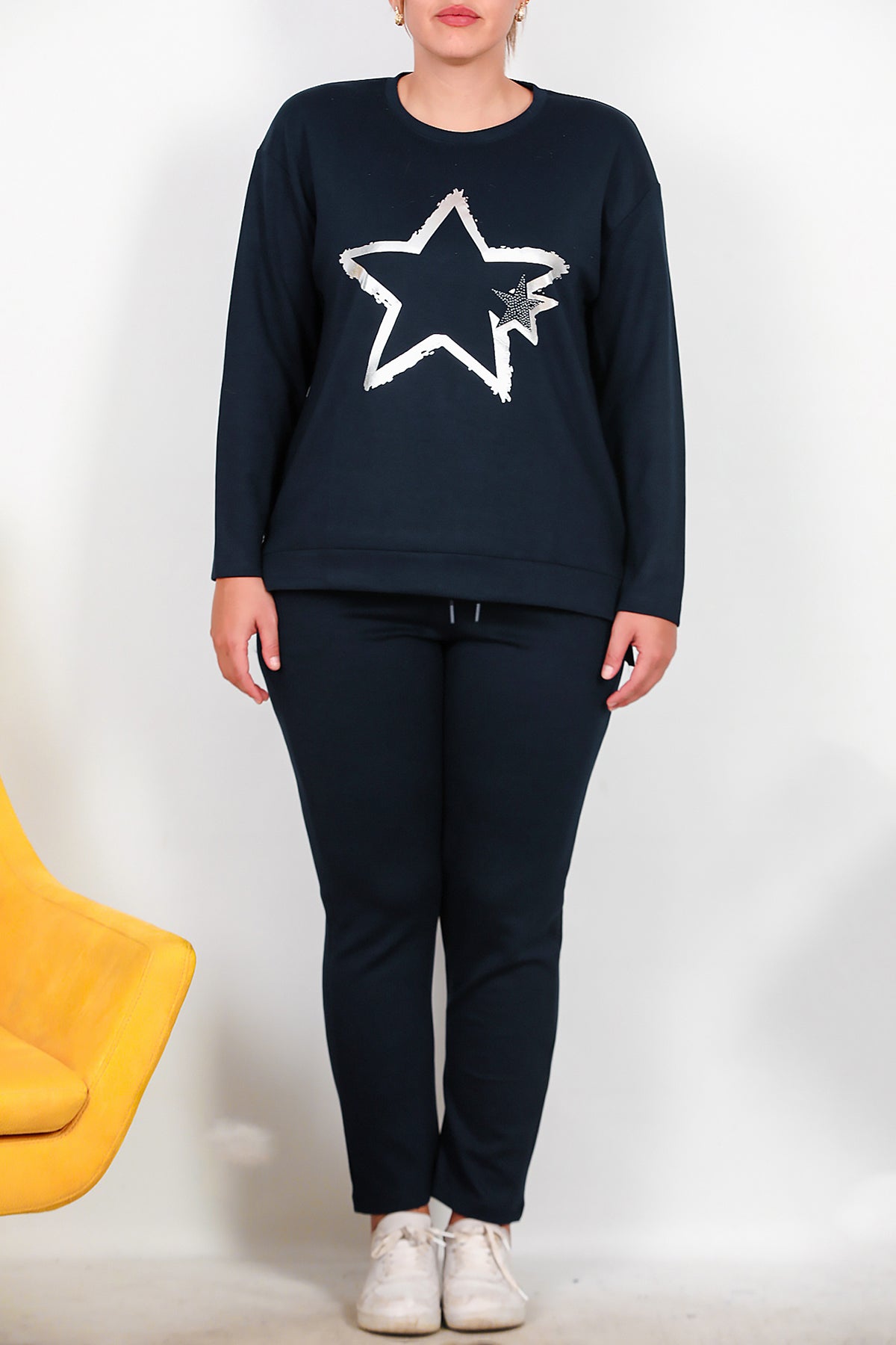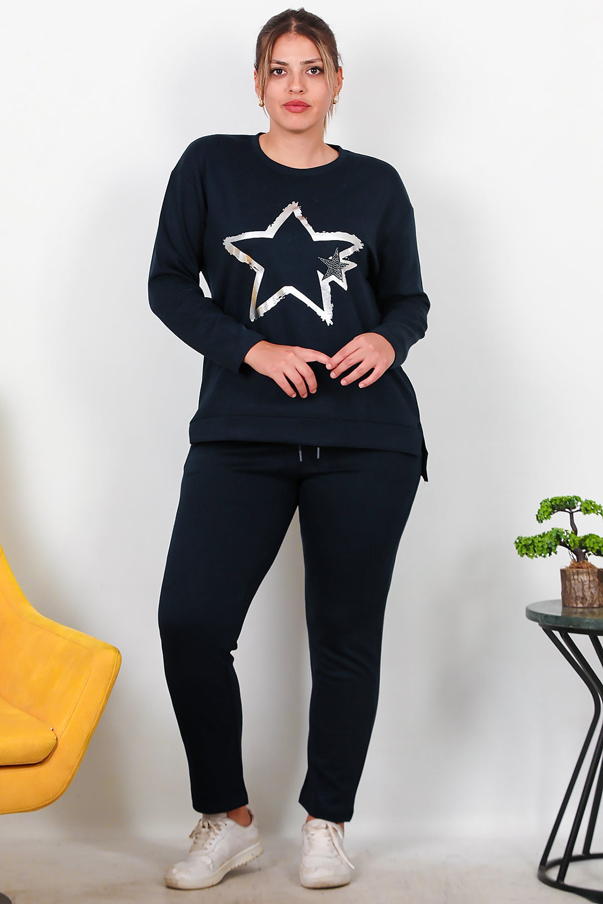 Büyük Beden Yıldız Varaklı Takım Lacivert