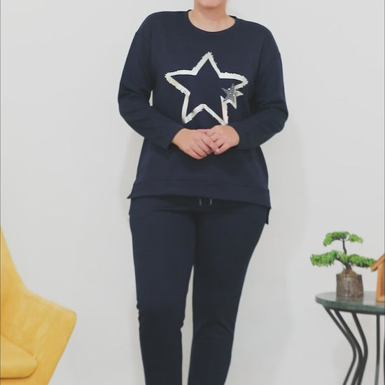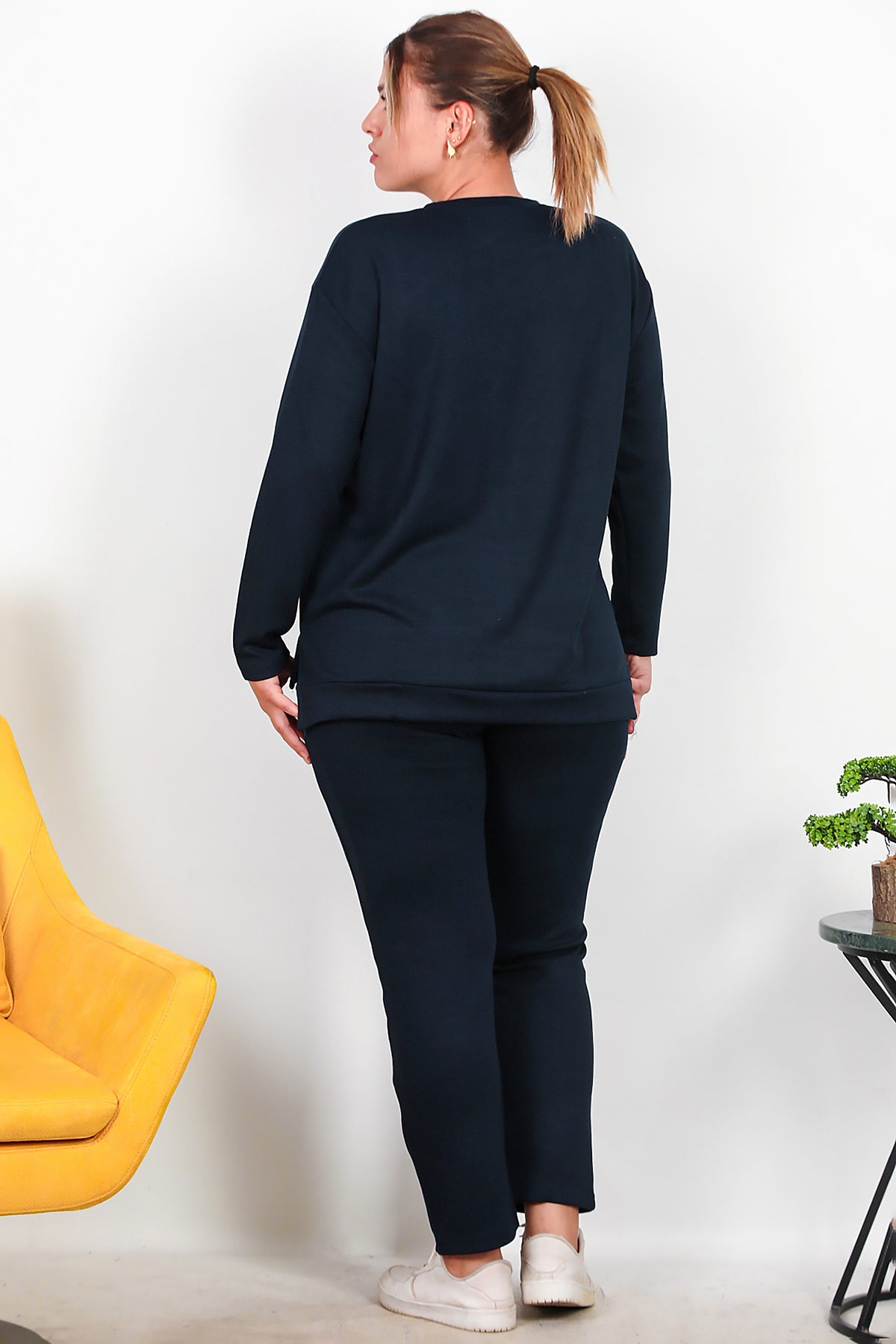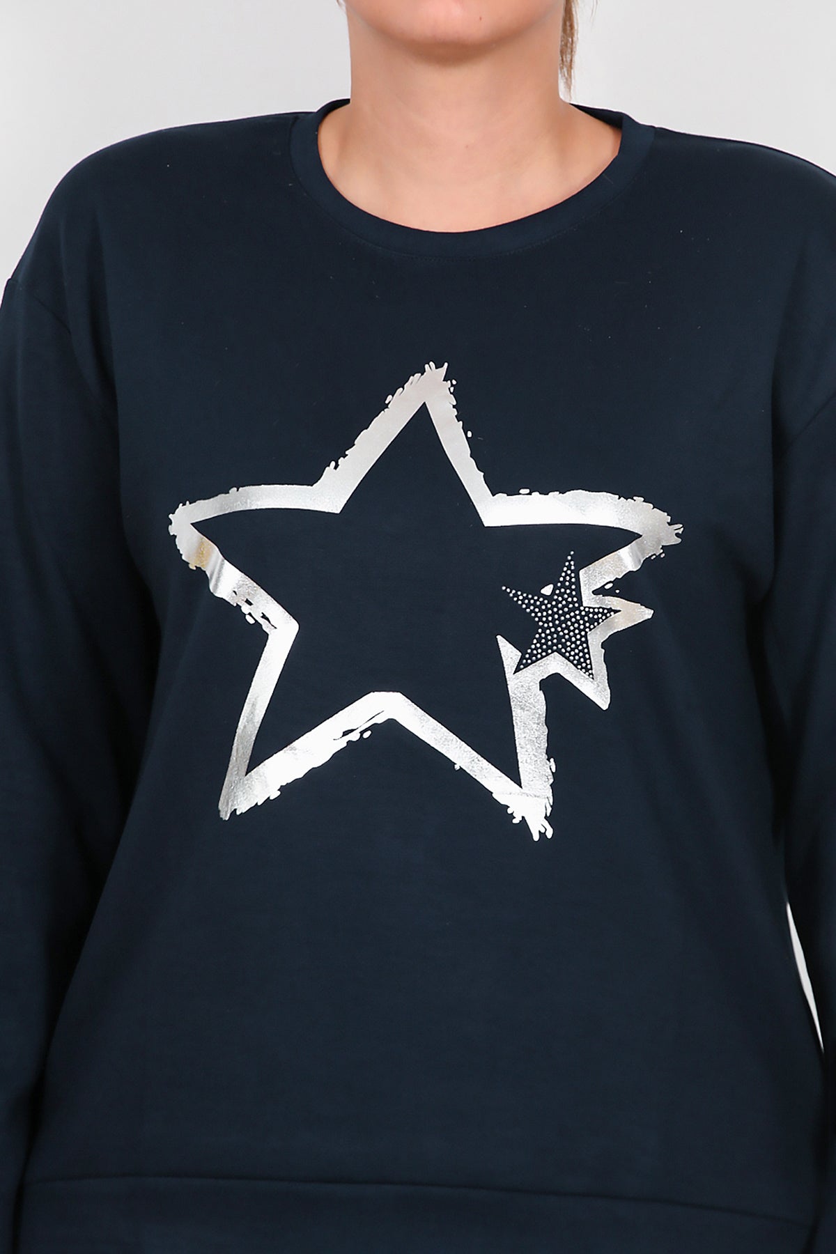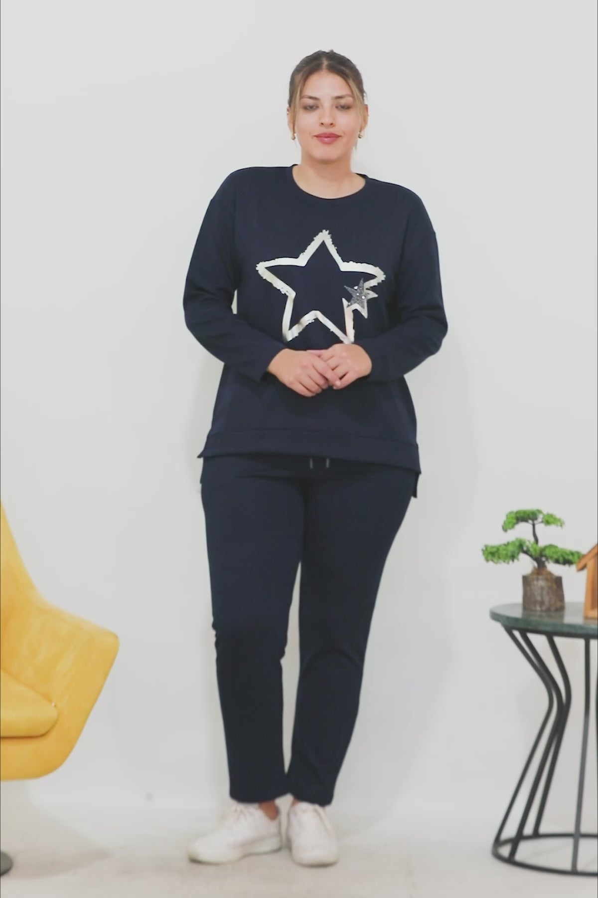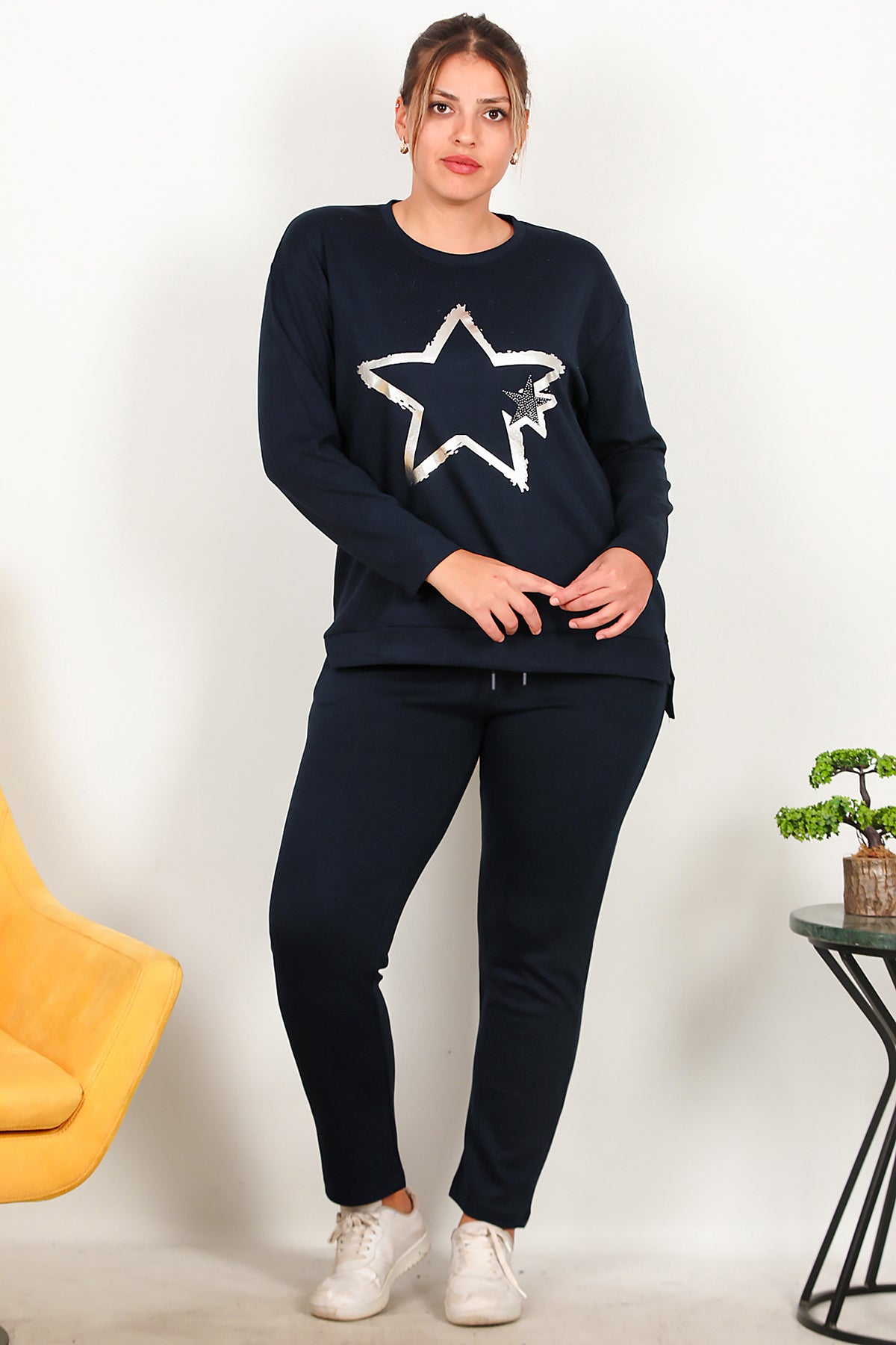 Büyük Beden Yıldız Varaklı Takım Lacivert