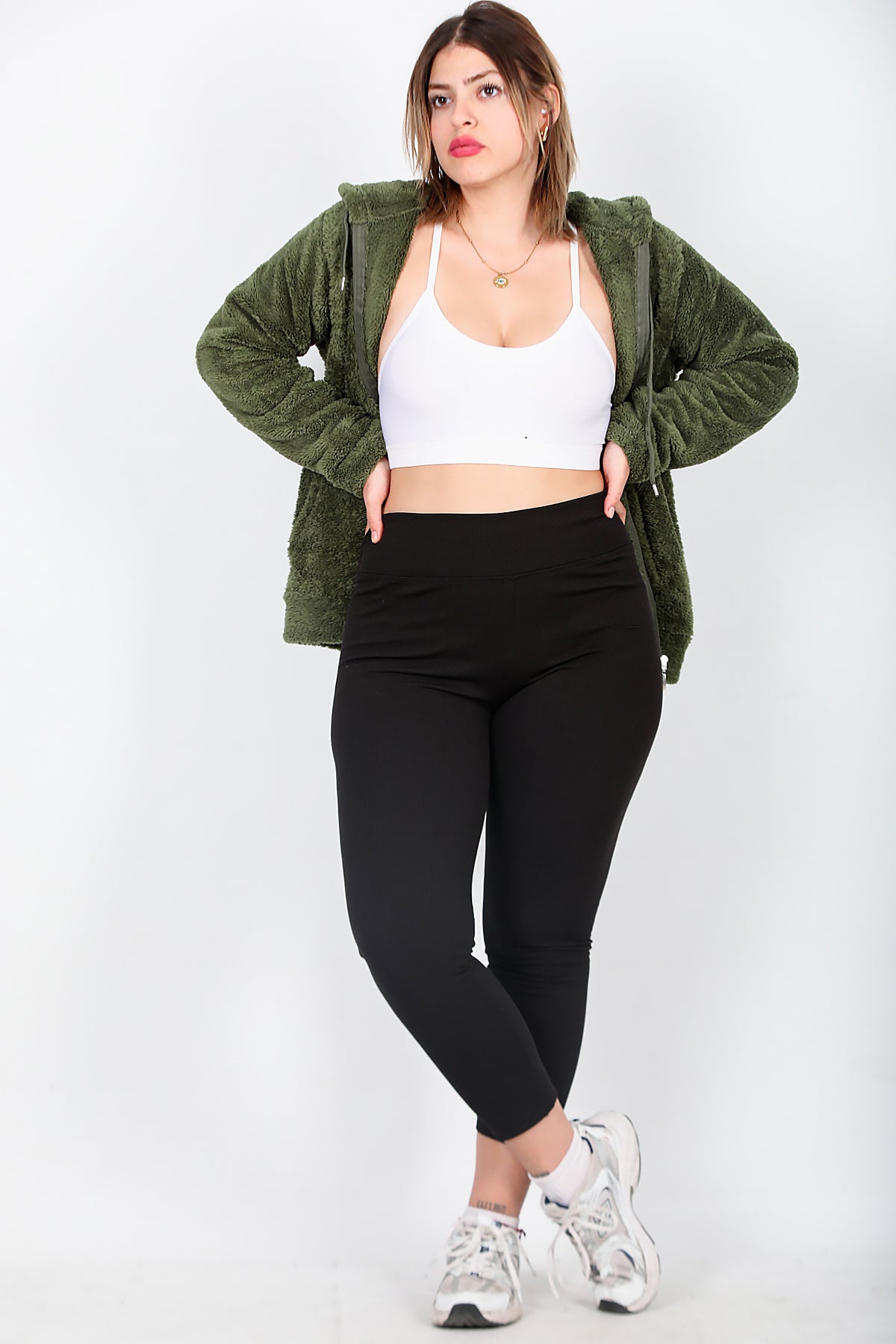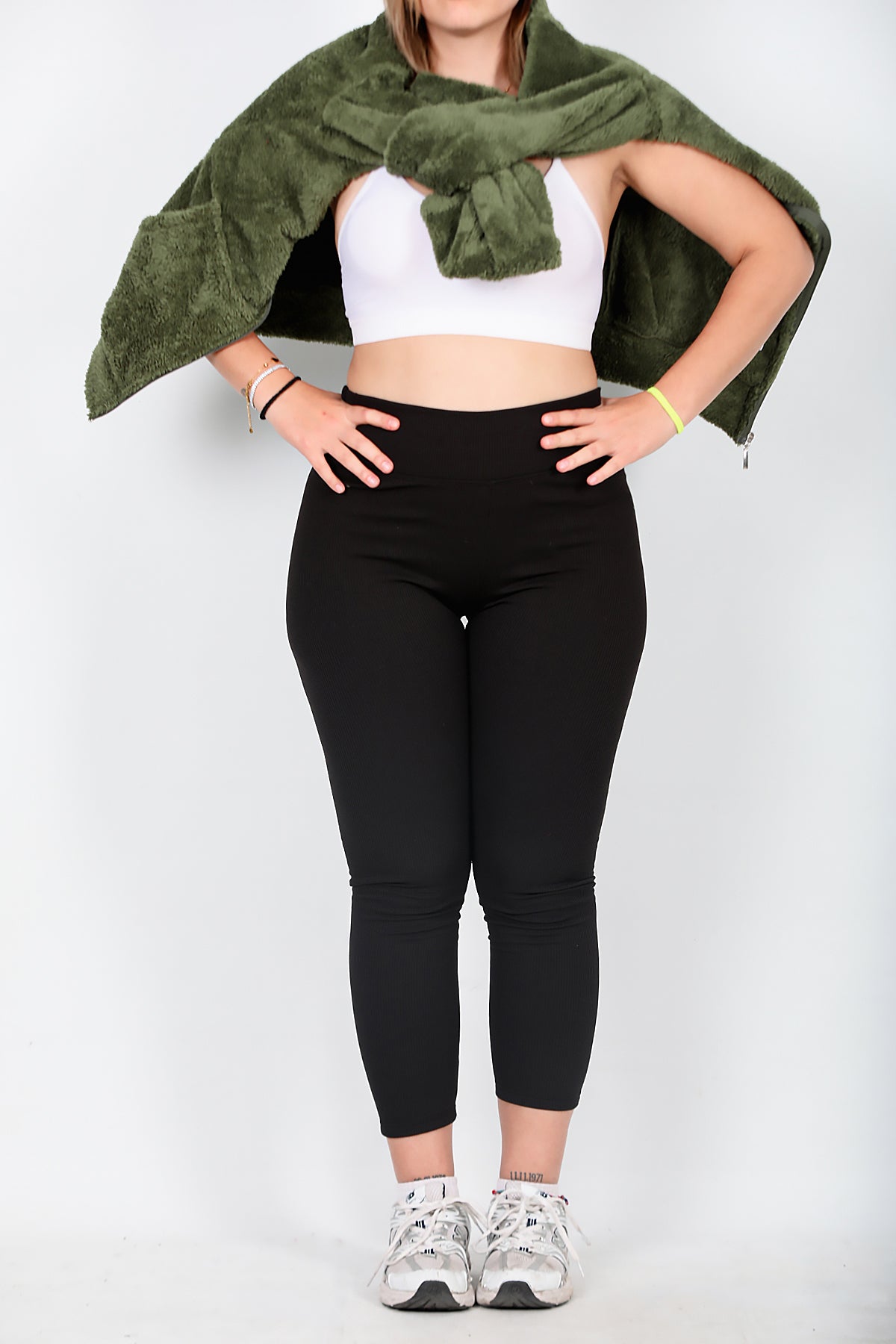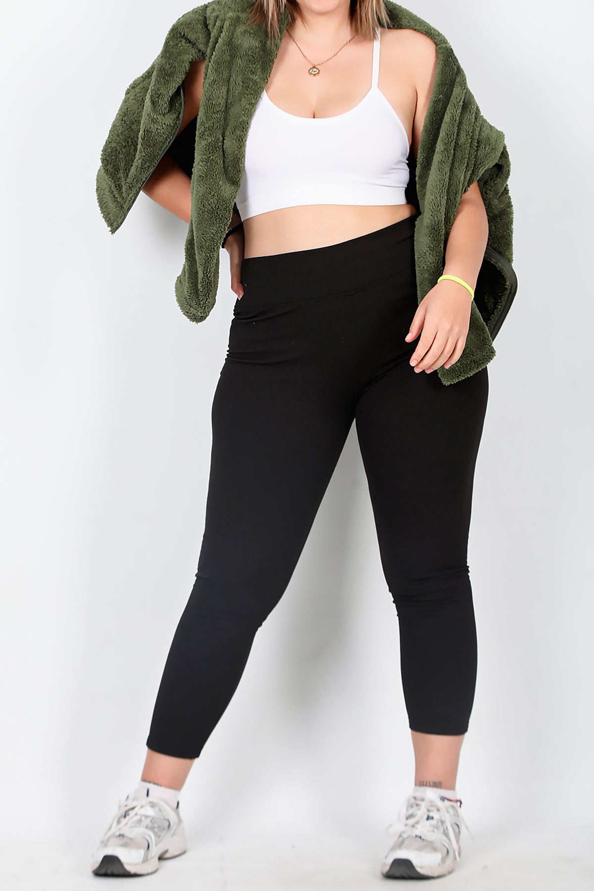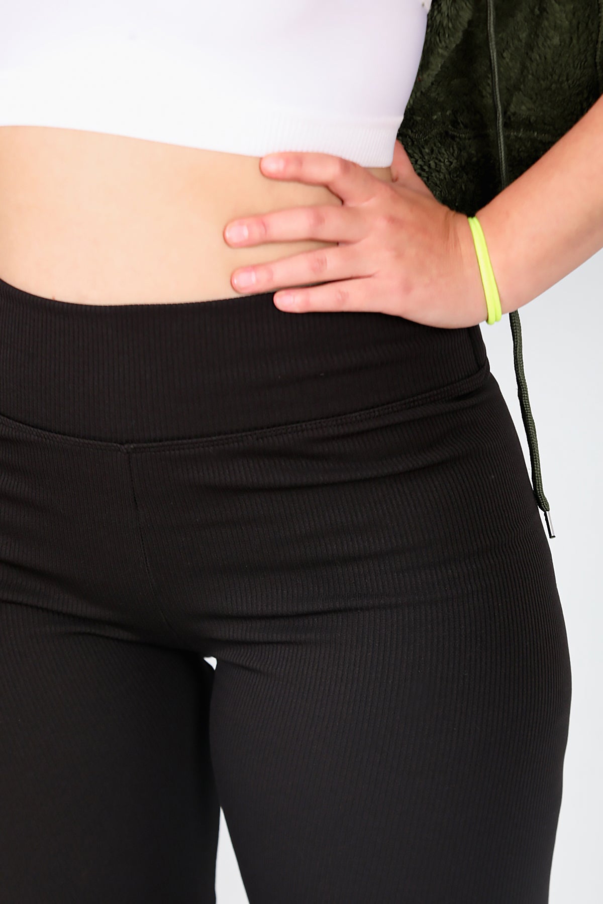 Büyük Beden Yüksek Bel Fitilli Tayt Siyah