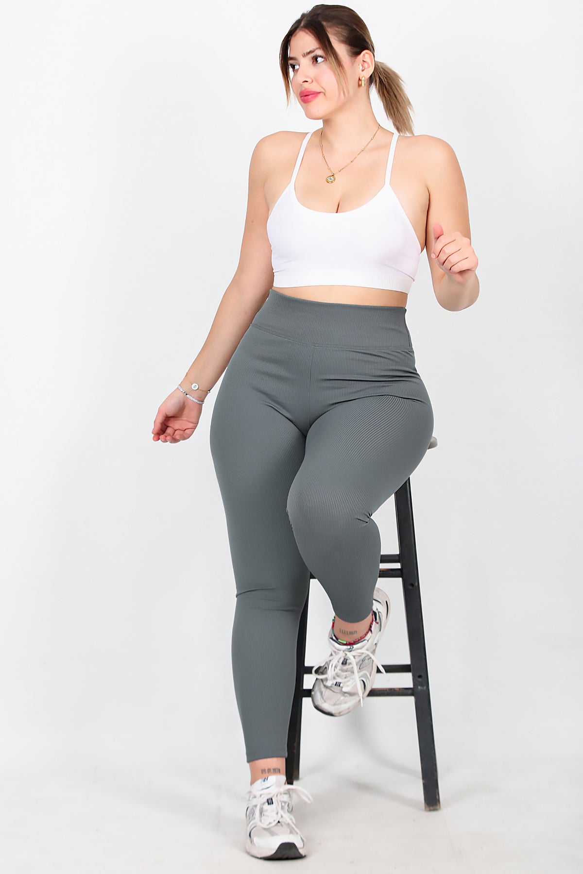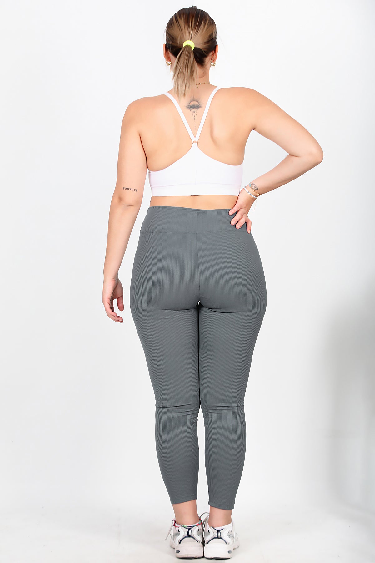 Büyük Beden Yüksek Bel Fitilli Tayt Füme