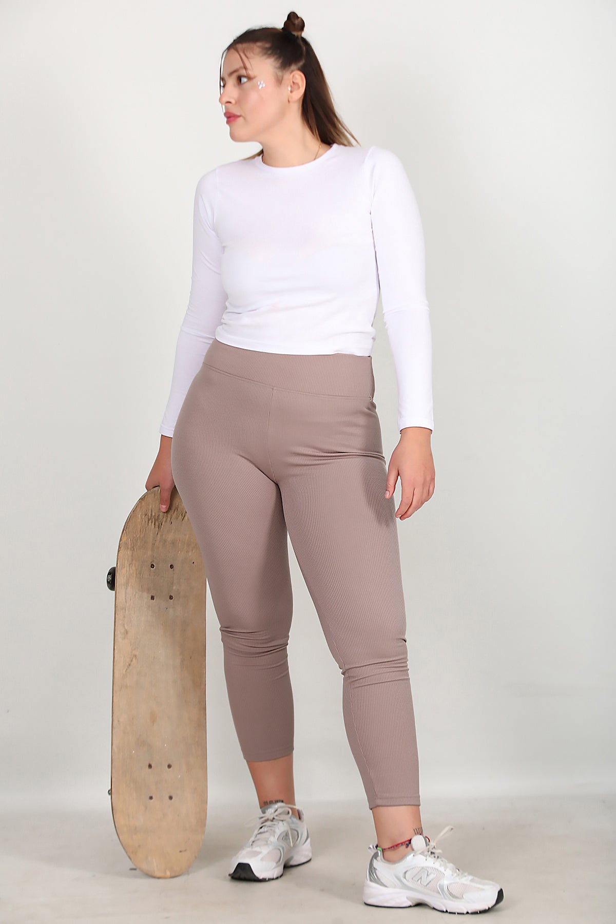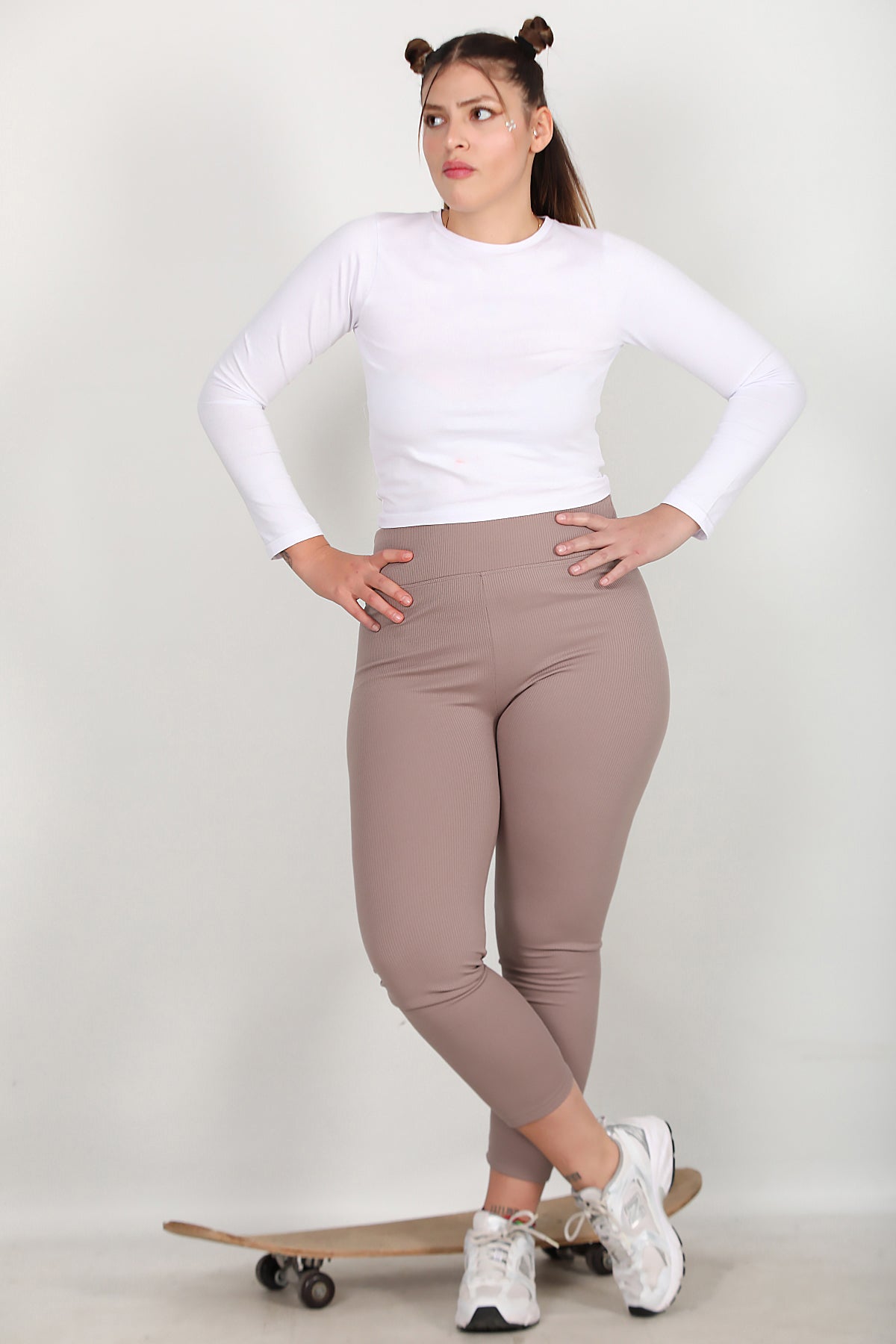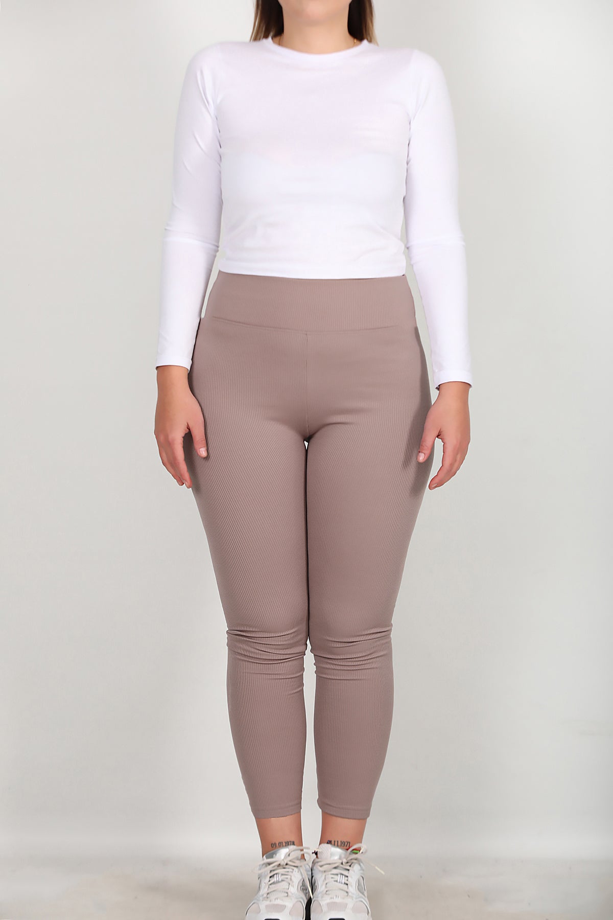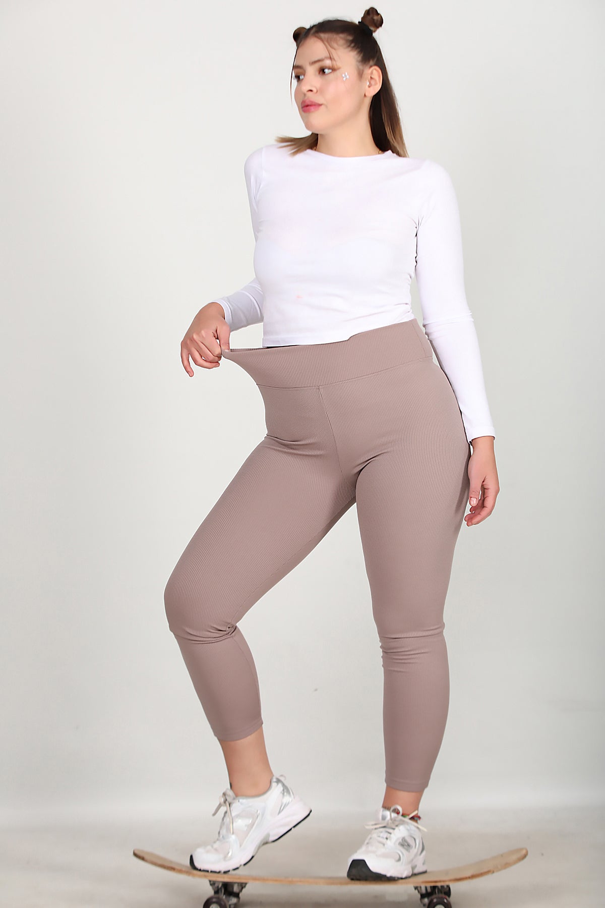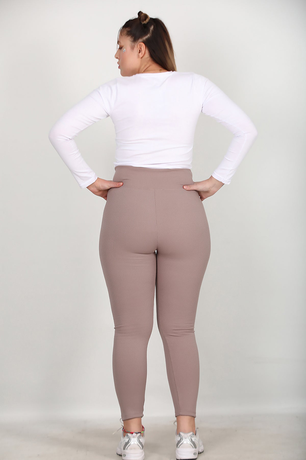 Büyük Beden Yüksek Bel Fitilli Tayt Vizon