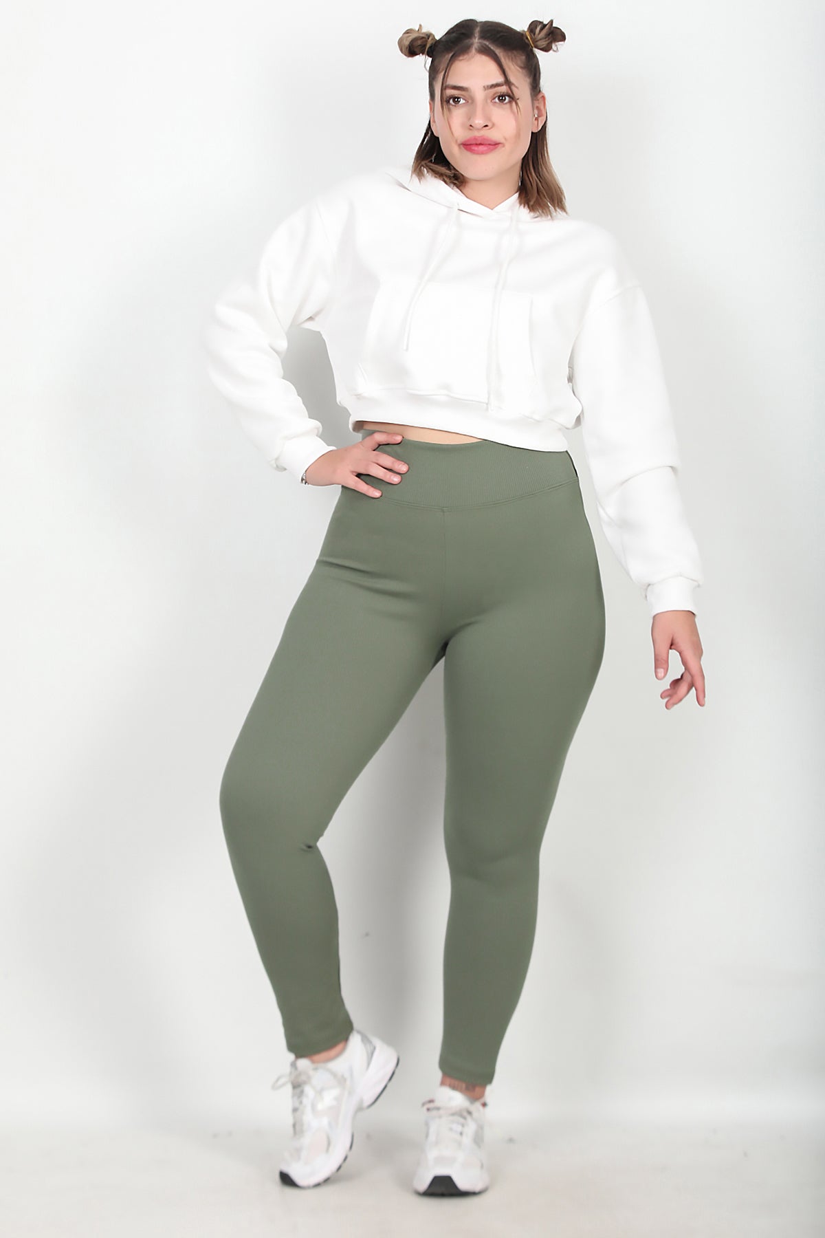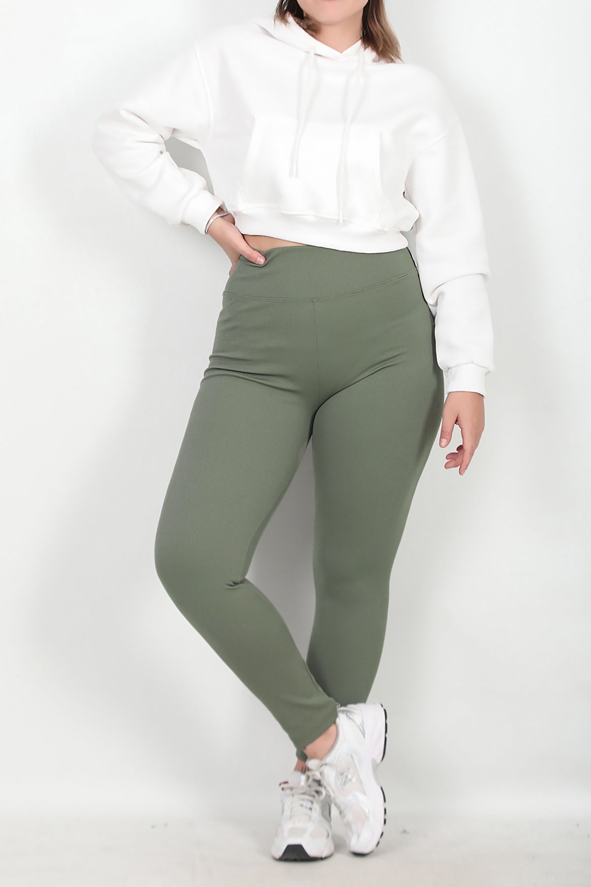 Büyük Beden Yüksek Bel Fitilli Tayt Haki