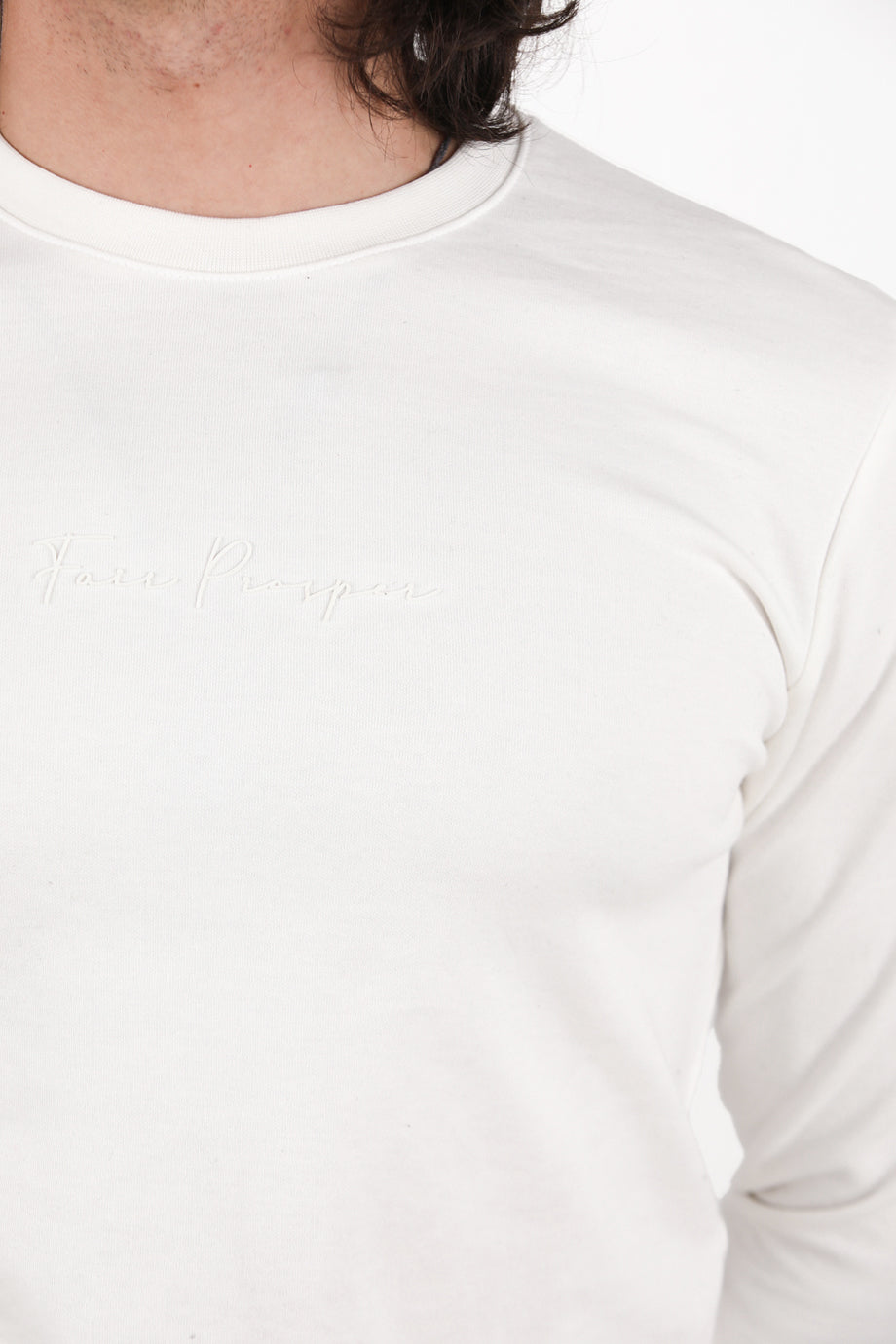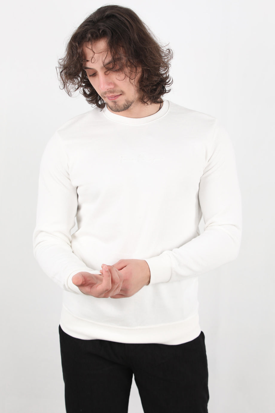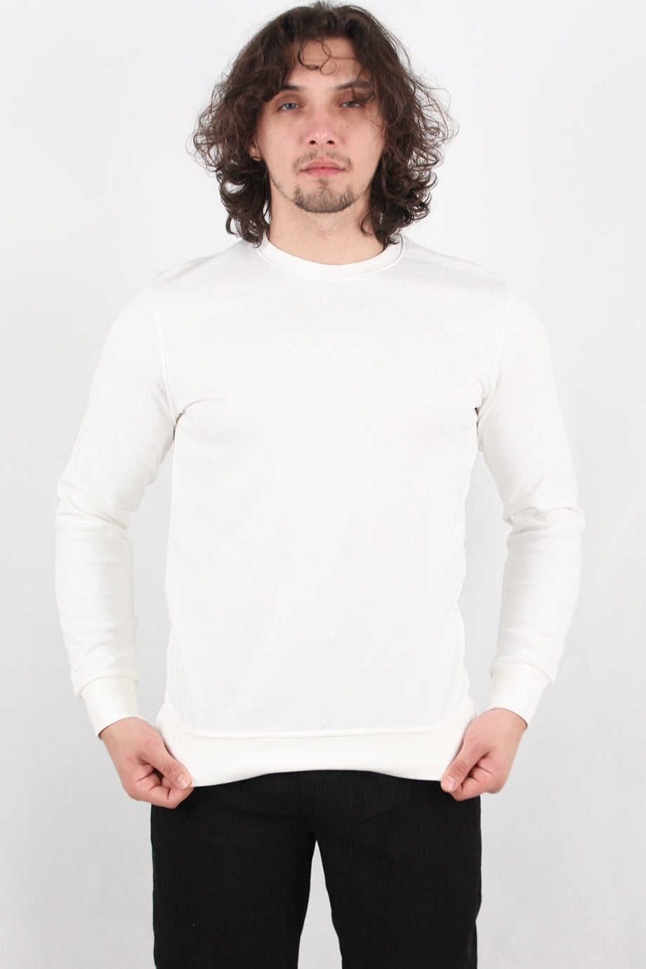 Statement Erkek Bisiklet Yaka Faır Yazı Baskılı Sweat Ekru