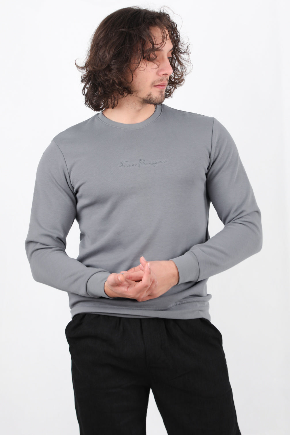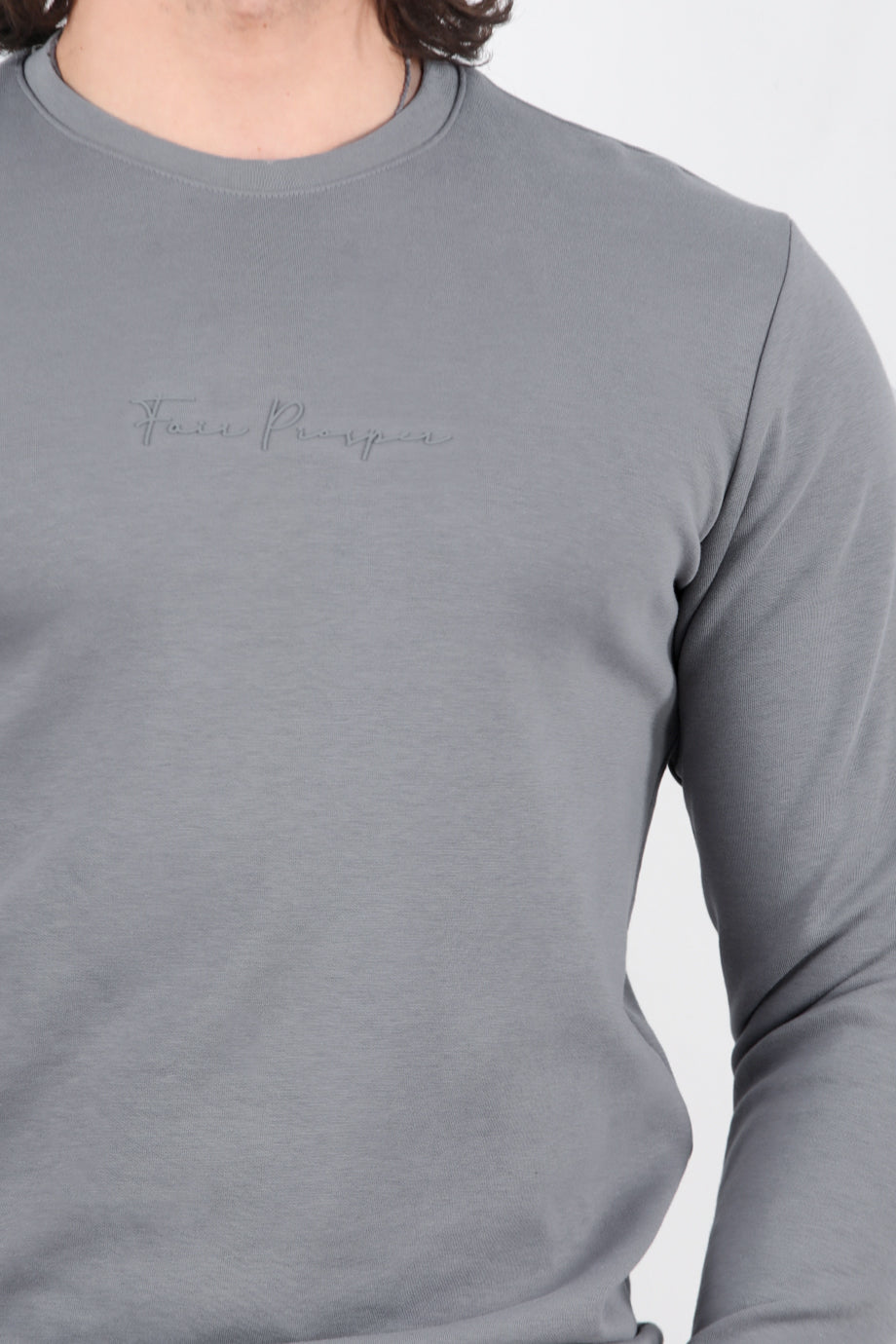Statement Erkek Bisiklet Yaka Faır Yazı Baskılı Sweat Gri