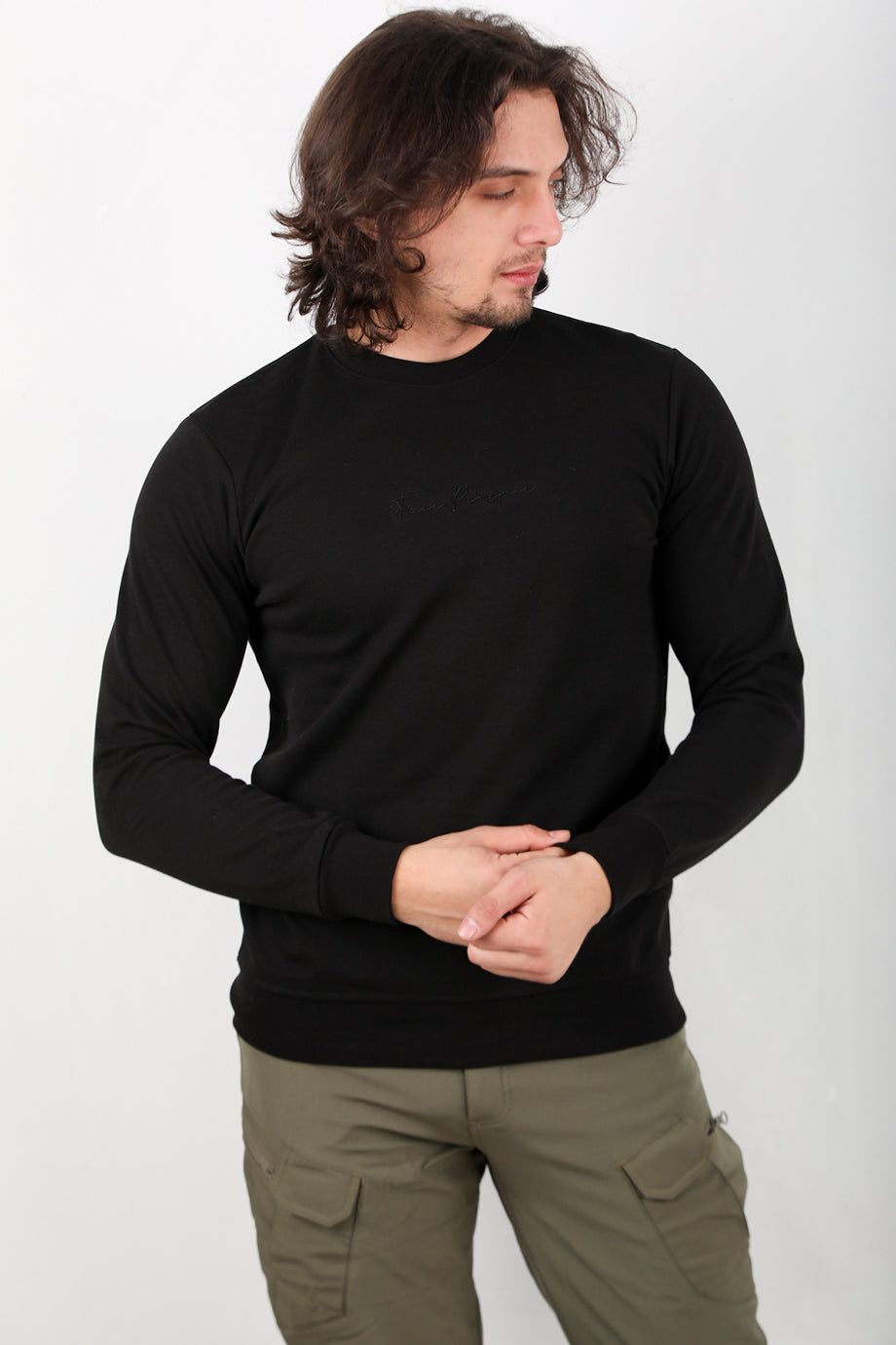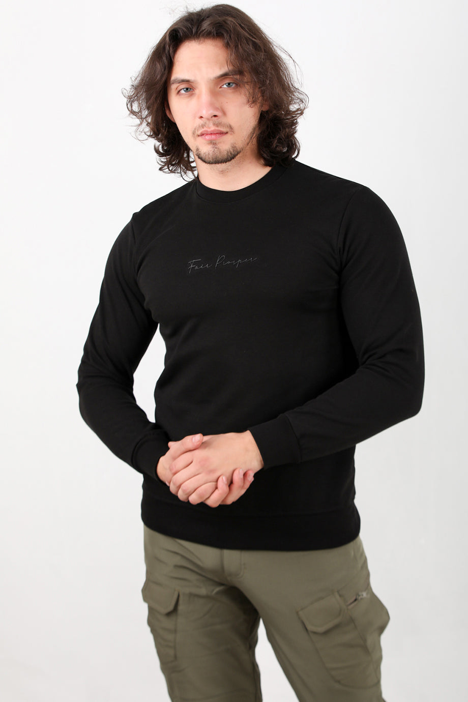 Statement Erkek Bisiklet Yaka Faır Yazı Baskılı Sweat Siyah
