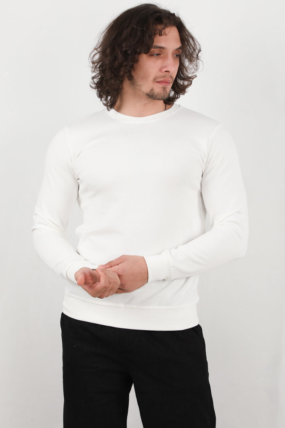 Athrex Erkek Bisiklet Yaka Sweat Beyaz