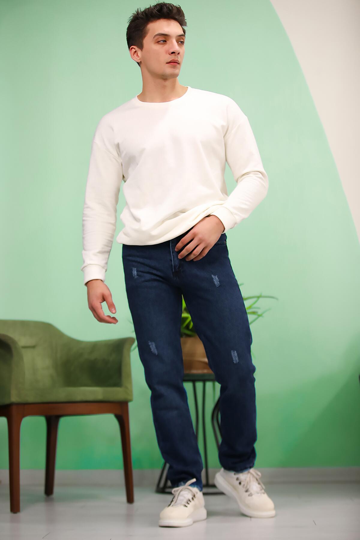 Erkek Boru Paça Eskitmeli Kot Pantolon