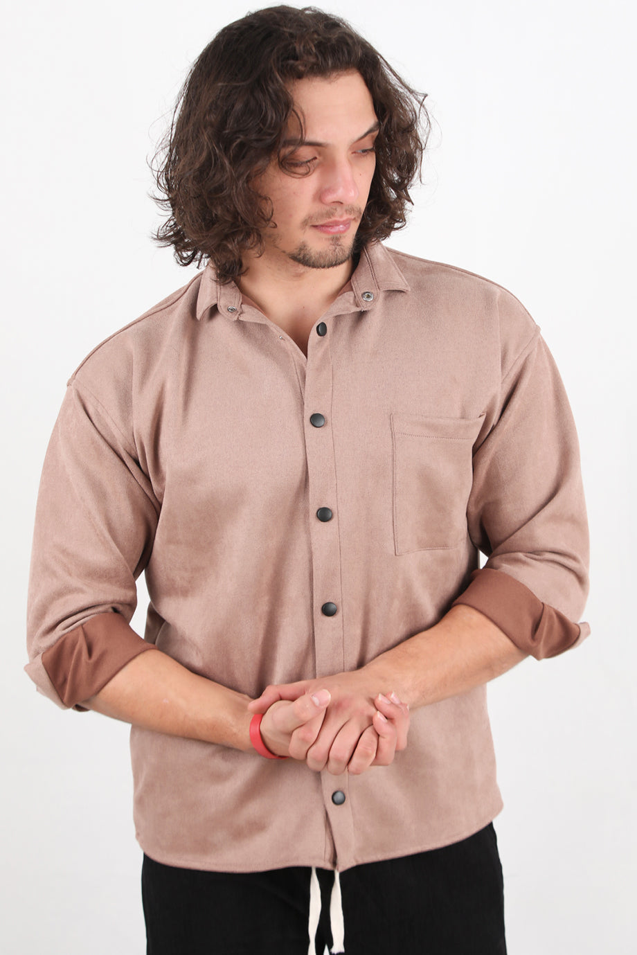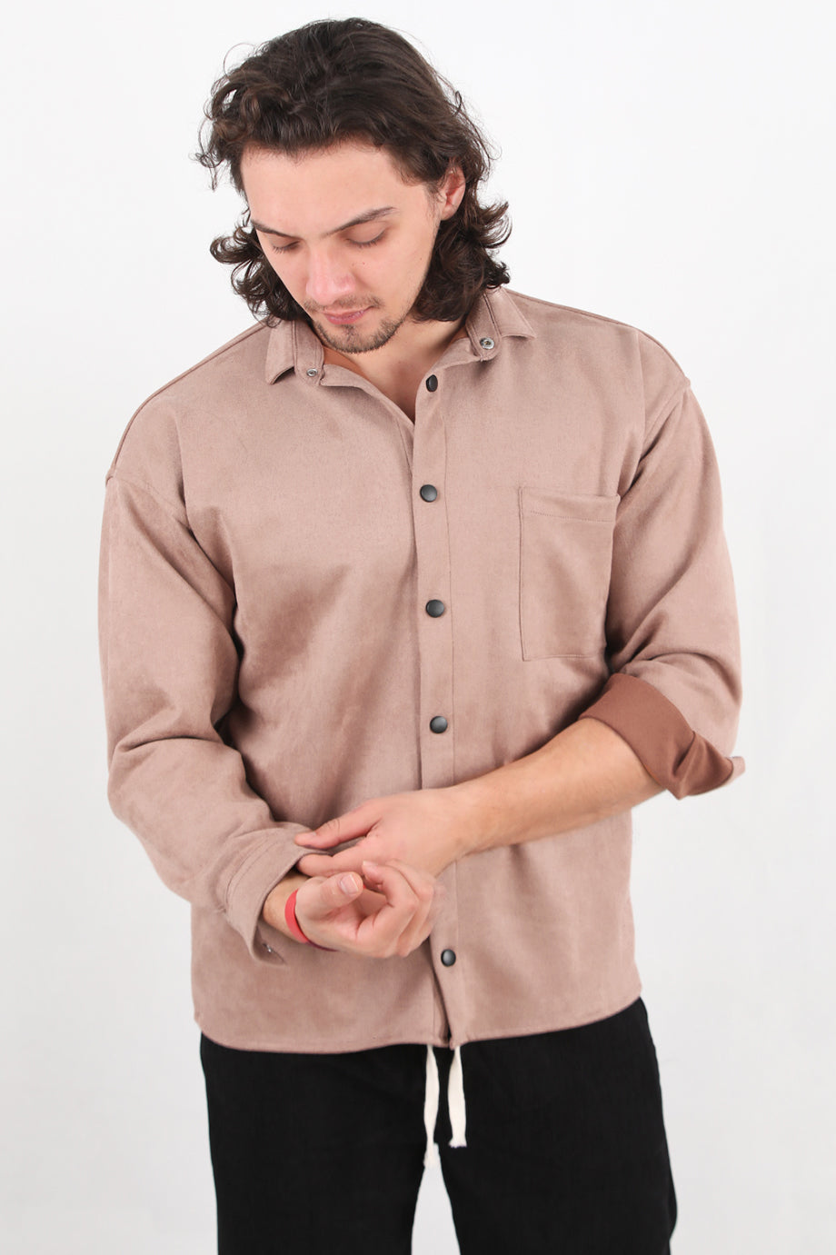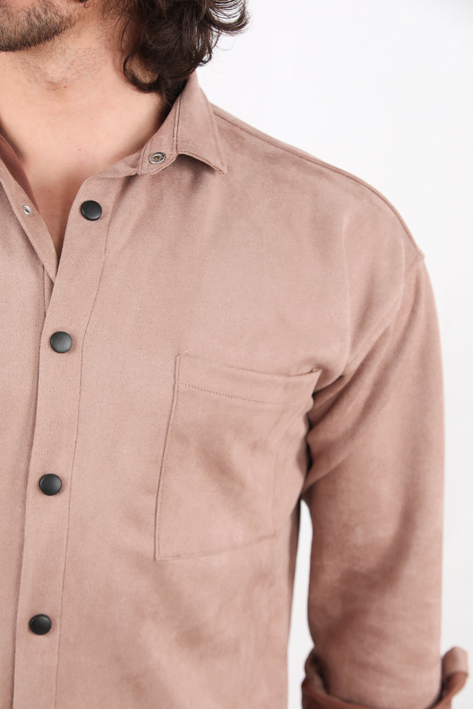 Rivet Erkek Çıtçıt Düğmeli Süet Gömlek Bej