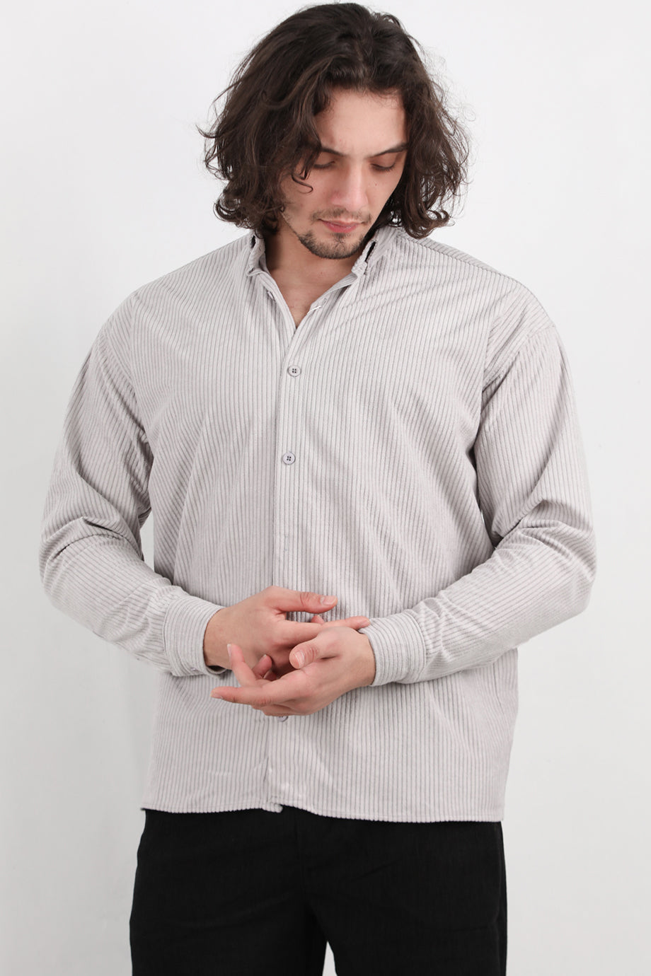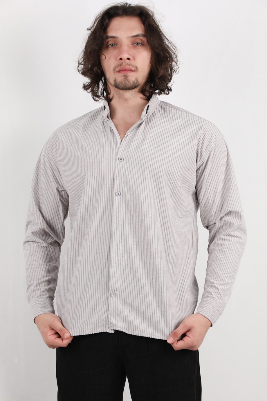 Noir Erkek Kadife Gömlek Gri