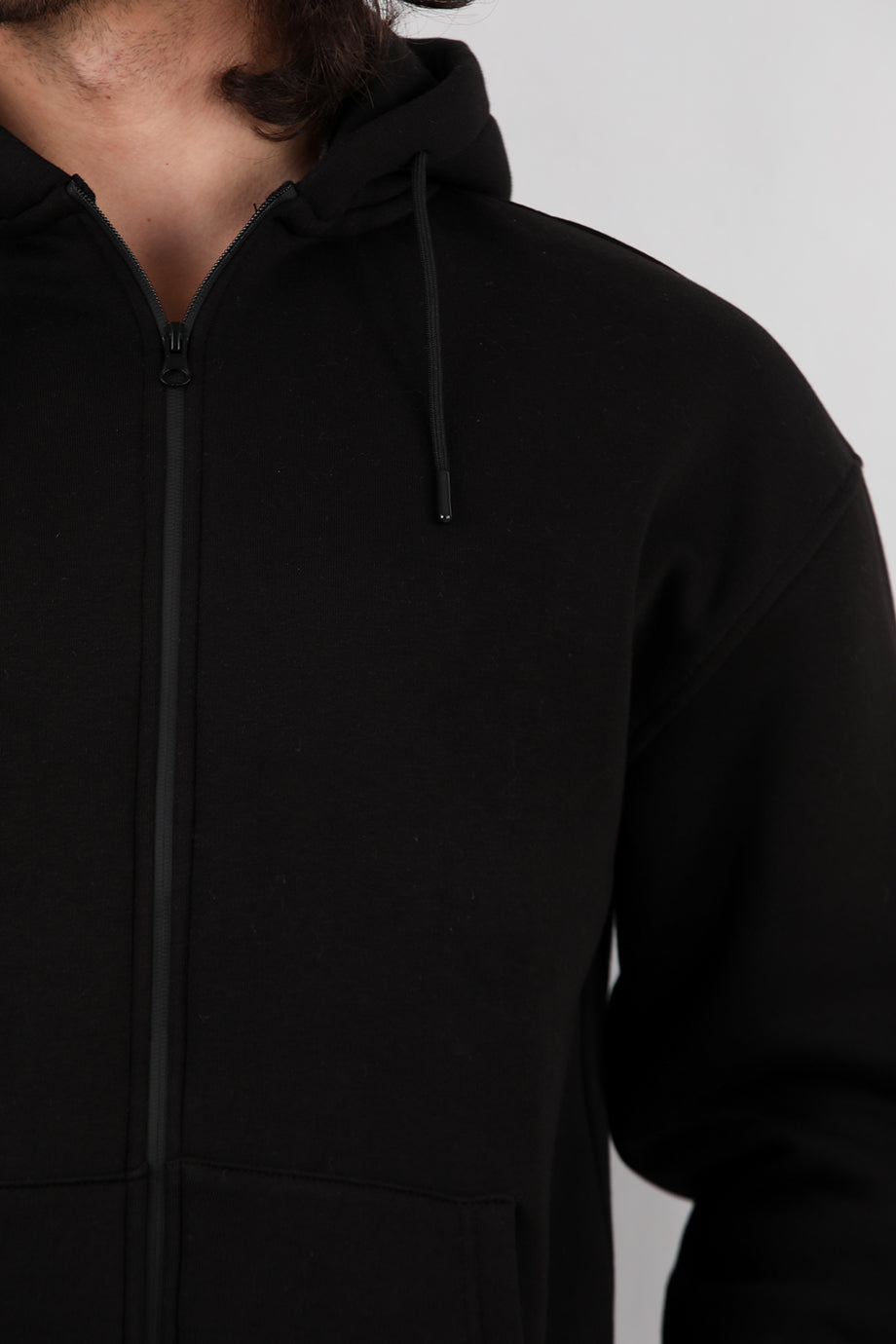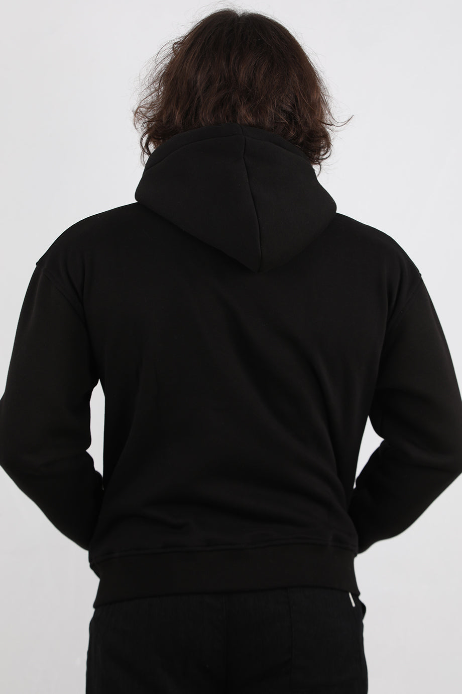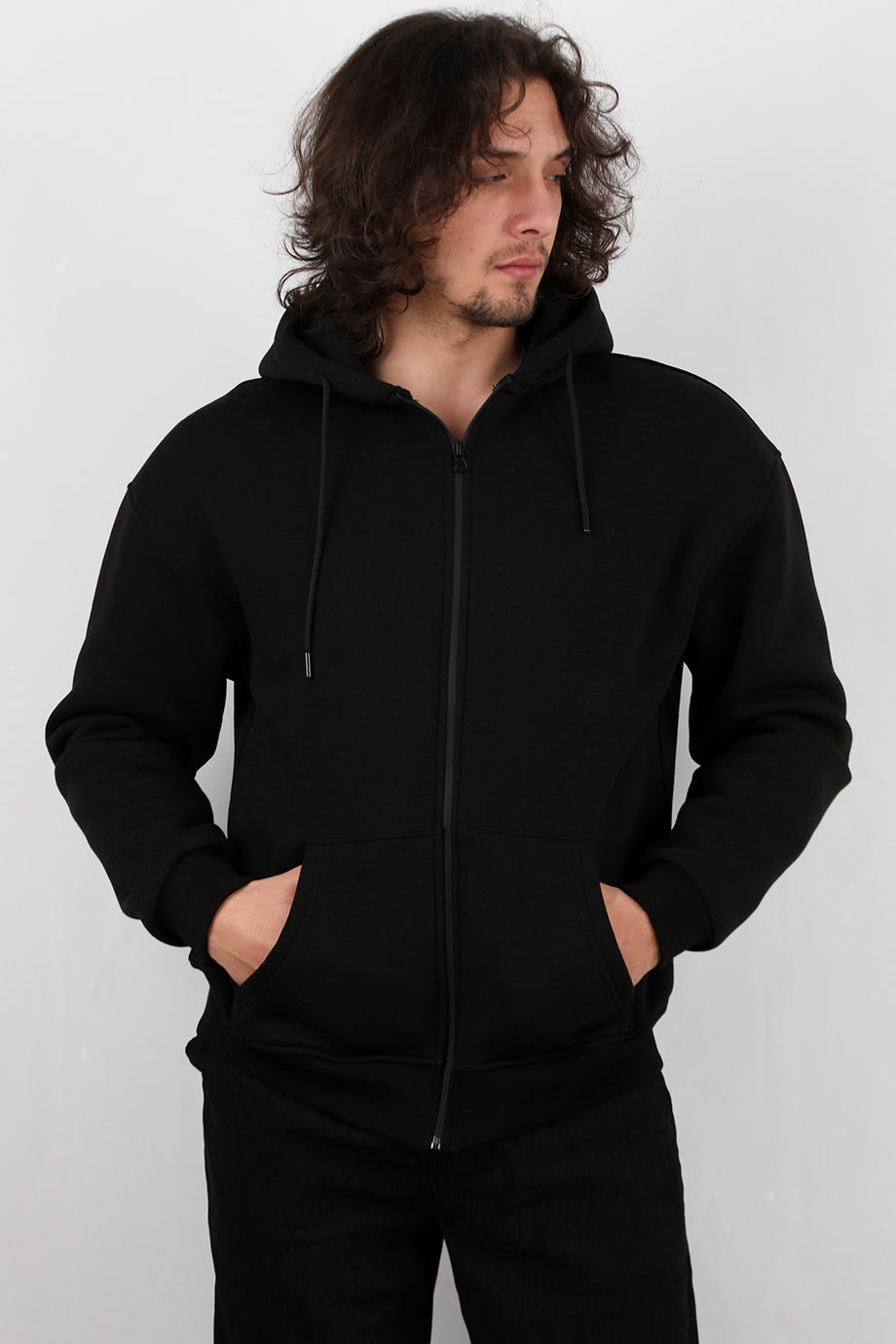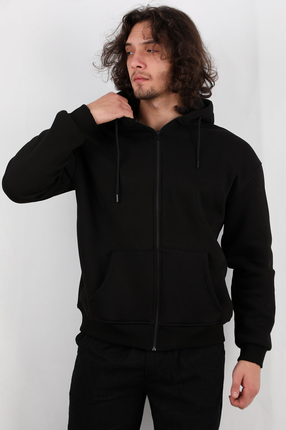Hoodfleece Erkek Kapşonlu Kanguru Cep Şardonlu Ceket Siyah