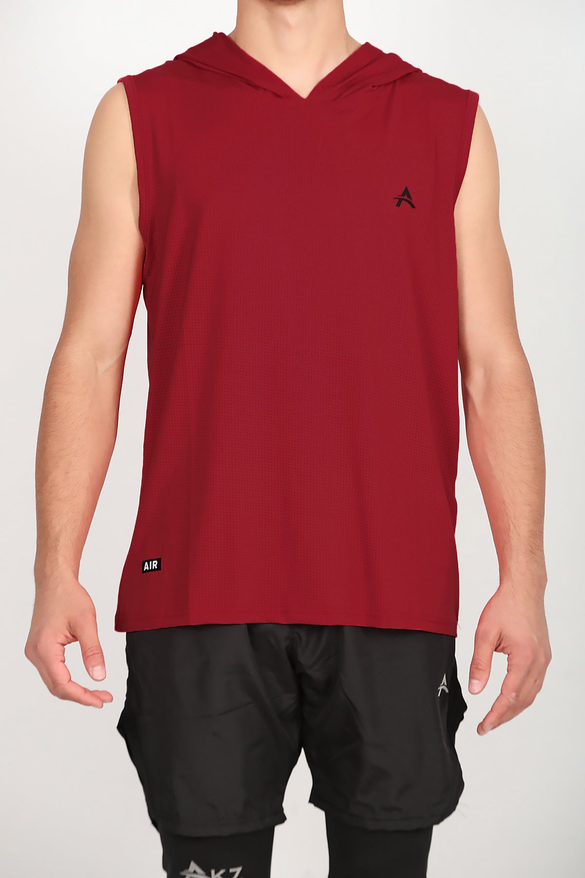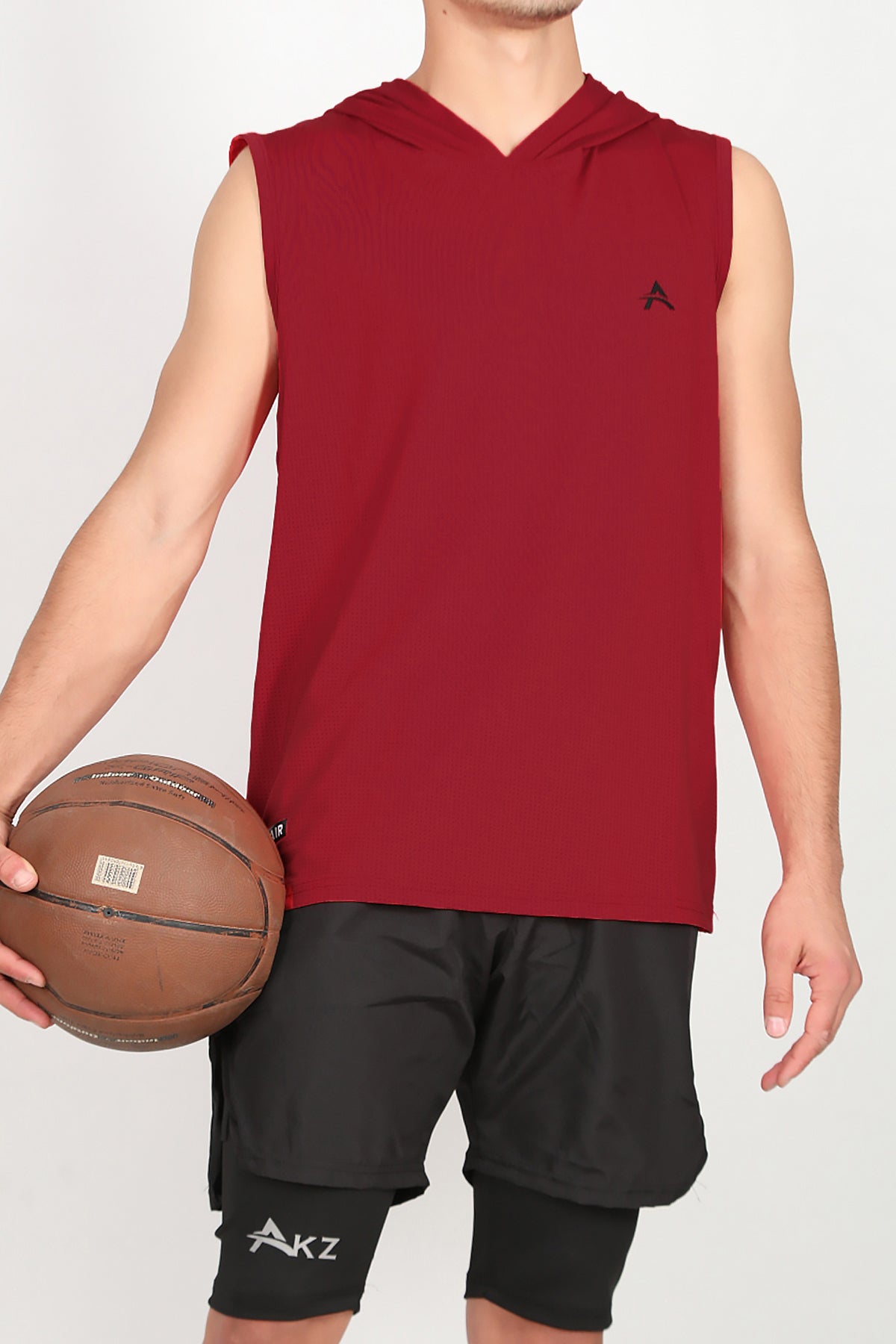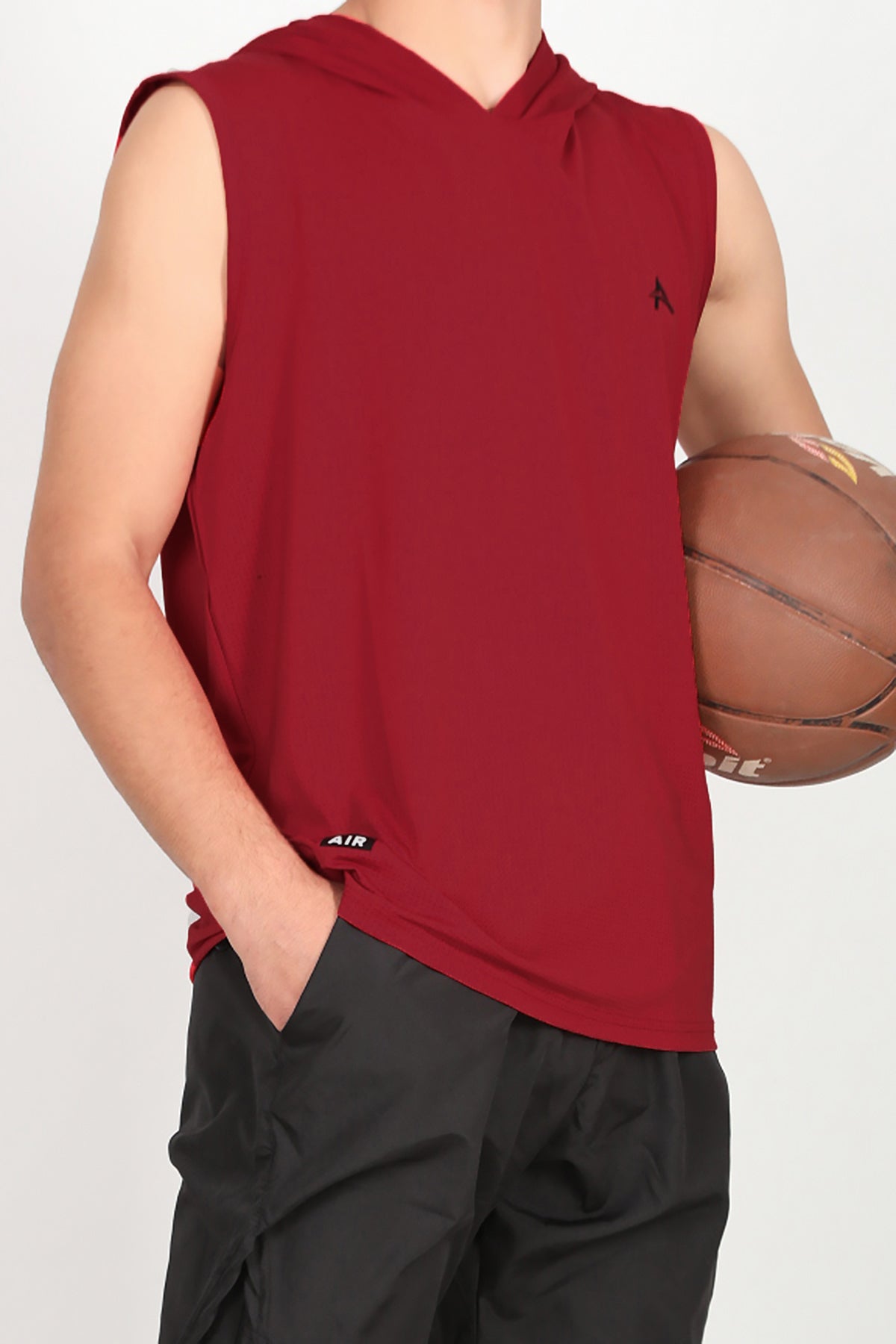 Erkek Kapşonlu Kolsuz T-shirt Kırmızı