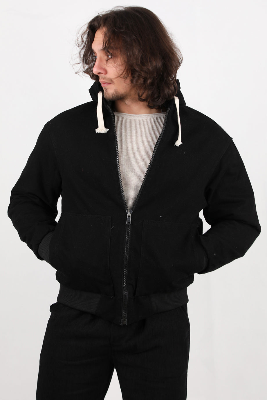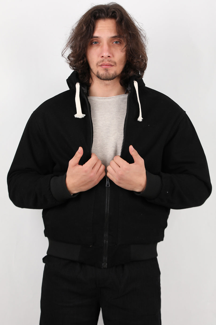 Jeanhood Erkek Kapşonlu Kot Mont Siyah