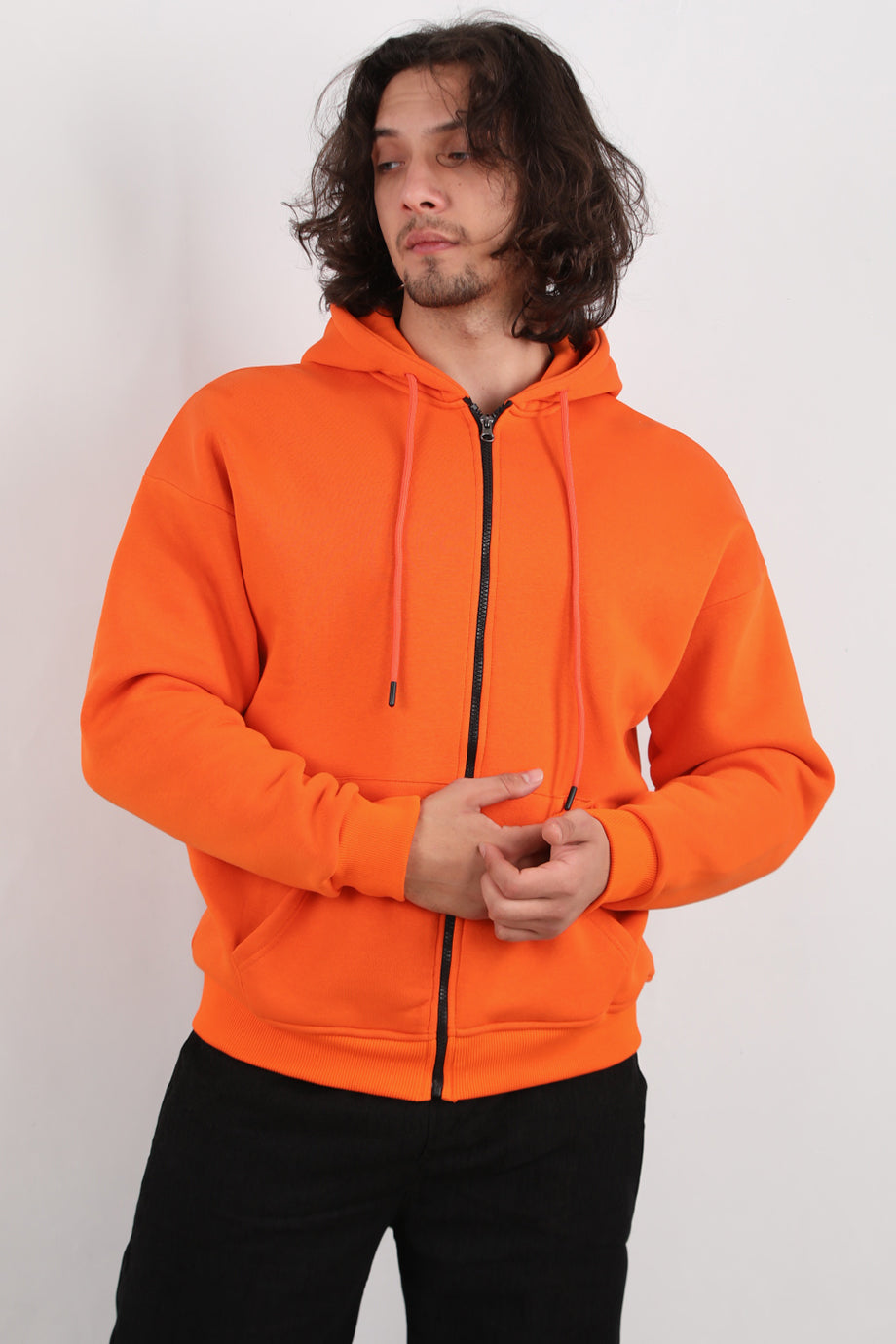 Urbanor Erkek Kapşonlu Önü Fermuarlı Ceket Turuncu