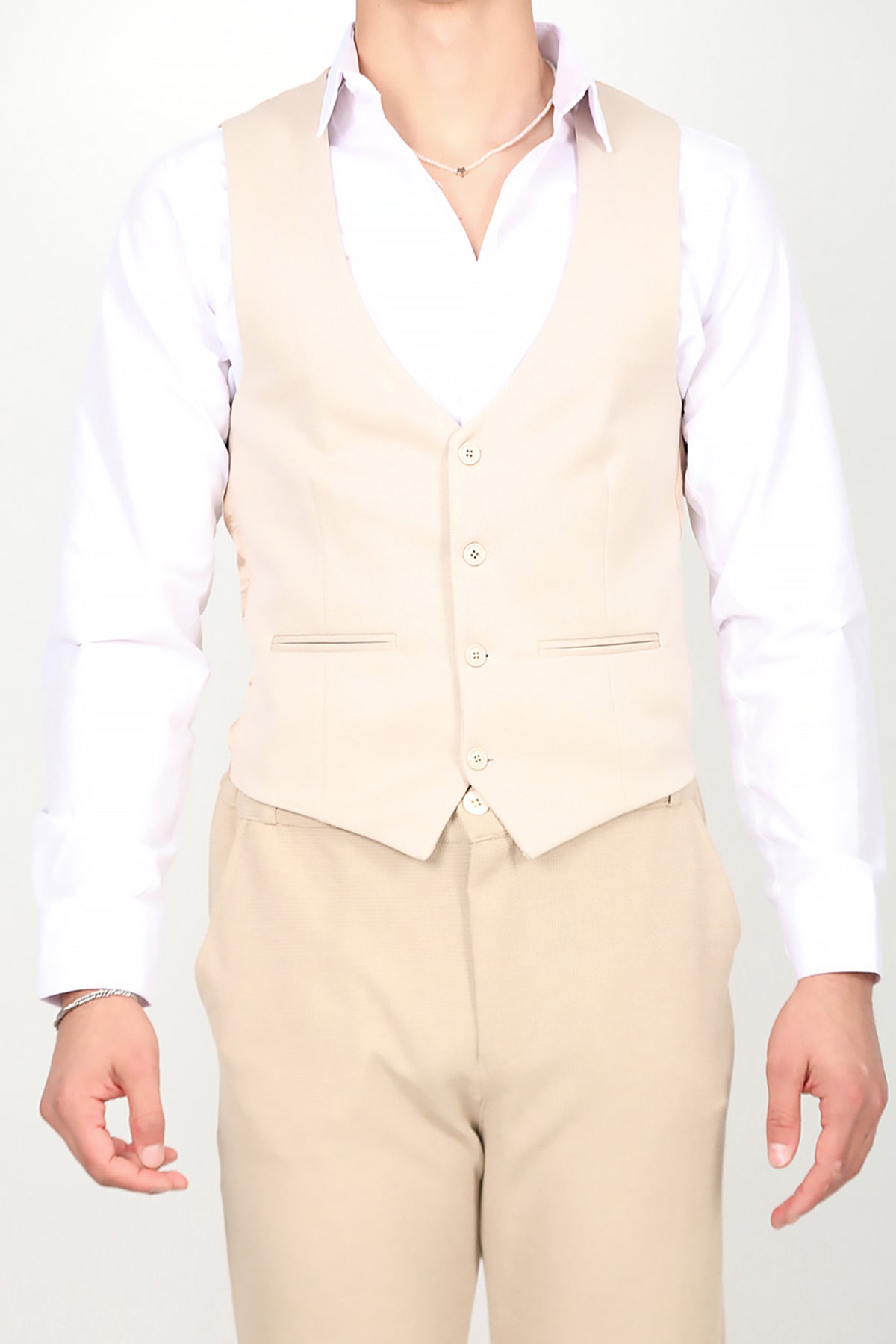 Erkek Klasik Yelek Bej