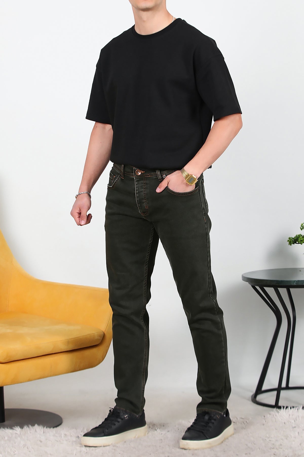 Erkek Slim Likralı Kot Pantolon Kahverengi